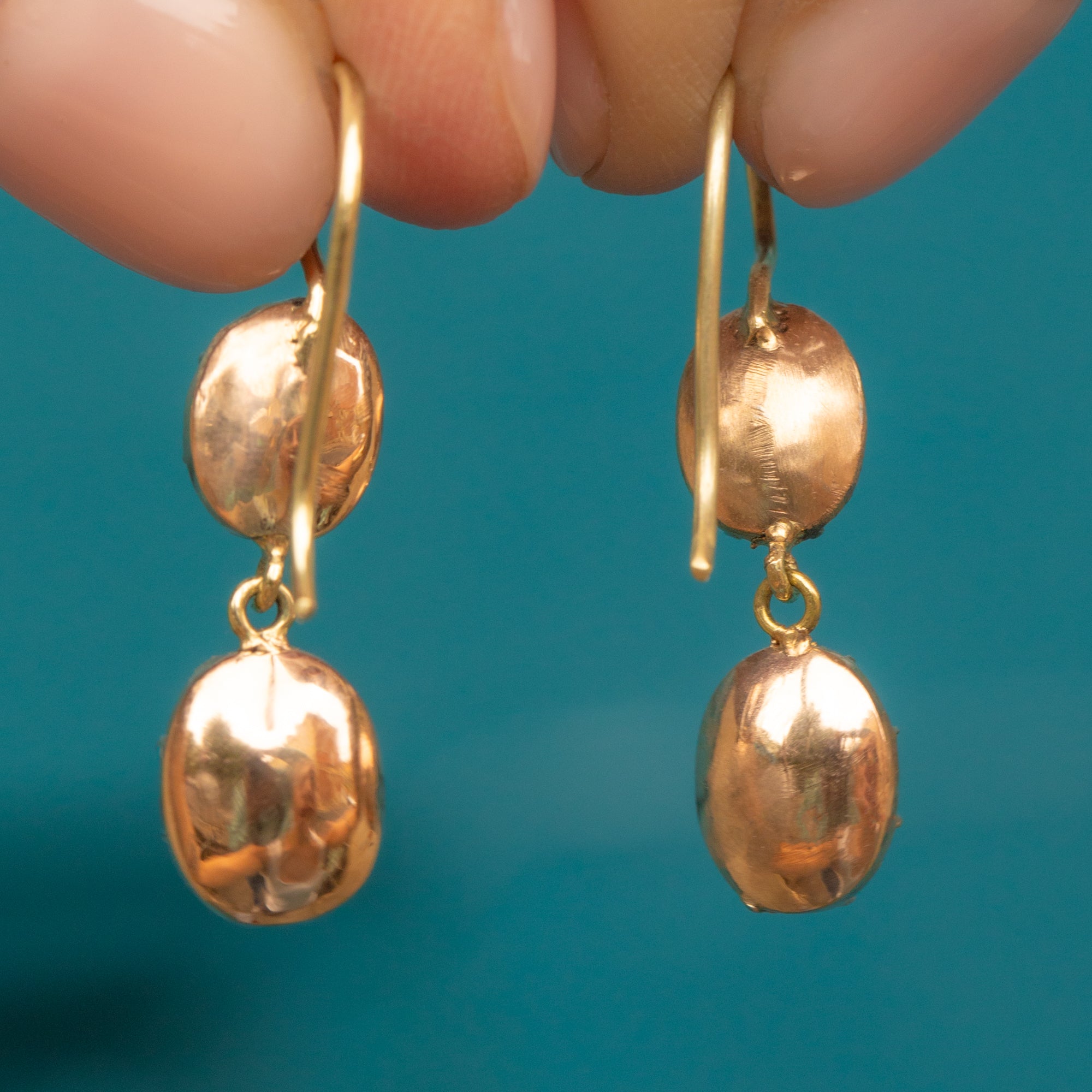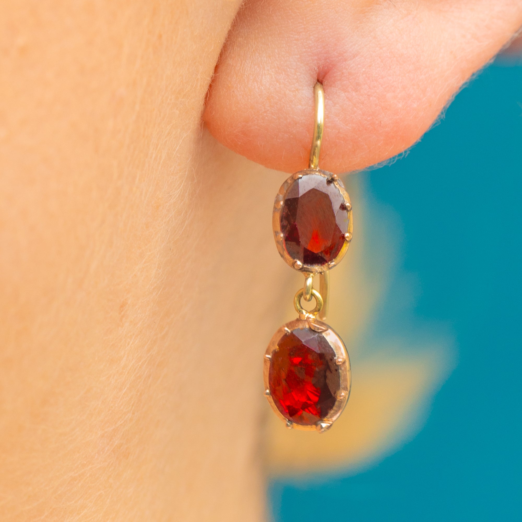 EXCELLENT. These 9ct Gold Georgian Flat-Cut Garnet drop earrings with 15ct Gold hooks are in excellent. She possesses well preserved Garnets that are set securely and safely. Her 15ct Gold hooks are are durable and resilient enabling you to wear these Flat Cut Garnet earrings with confidence!
