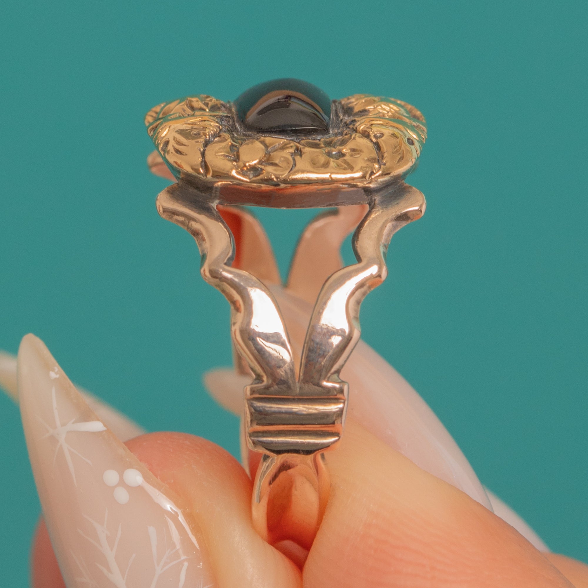 9ct Gold Georgian Garnet Cabochon Ring -Inscribed Ob. 1829