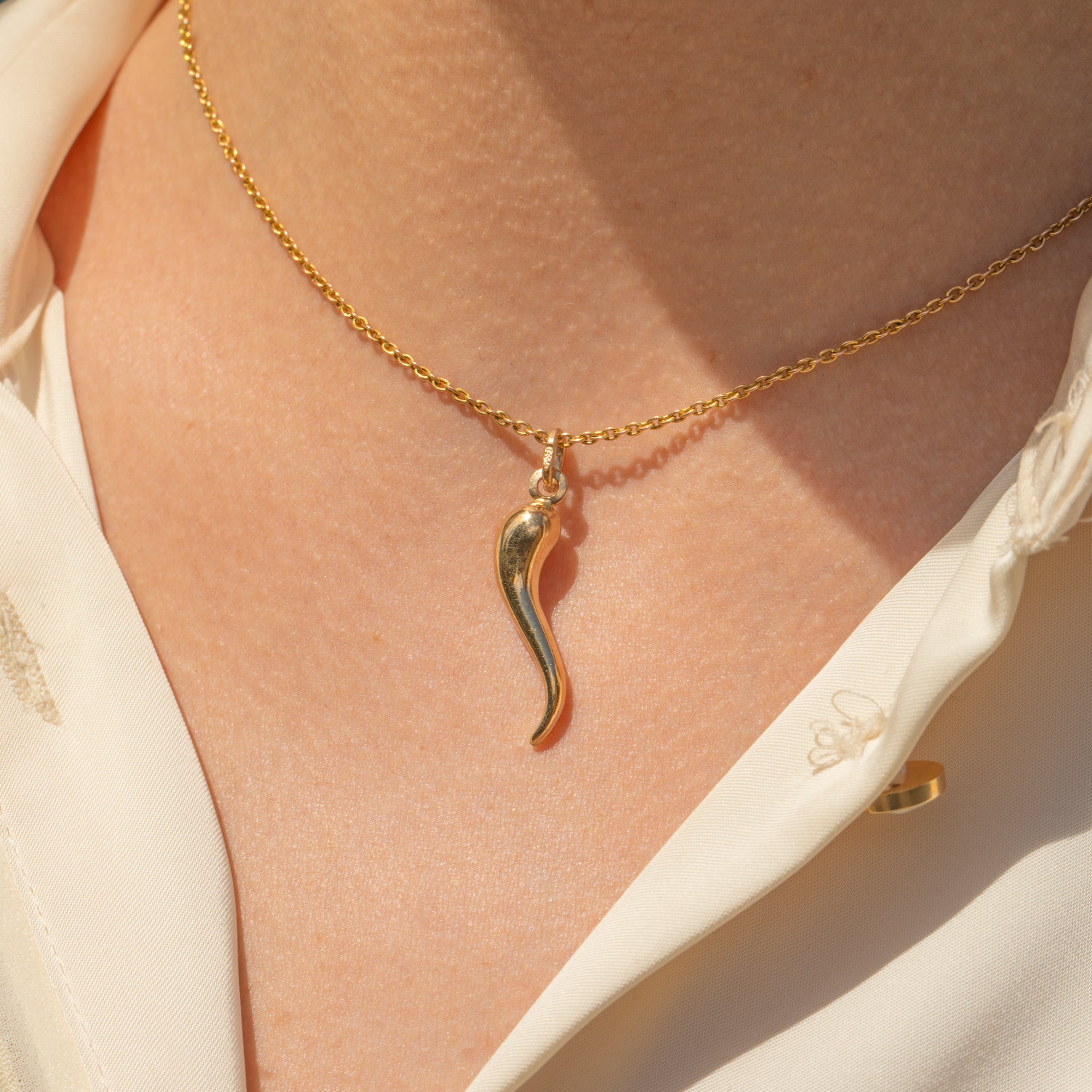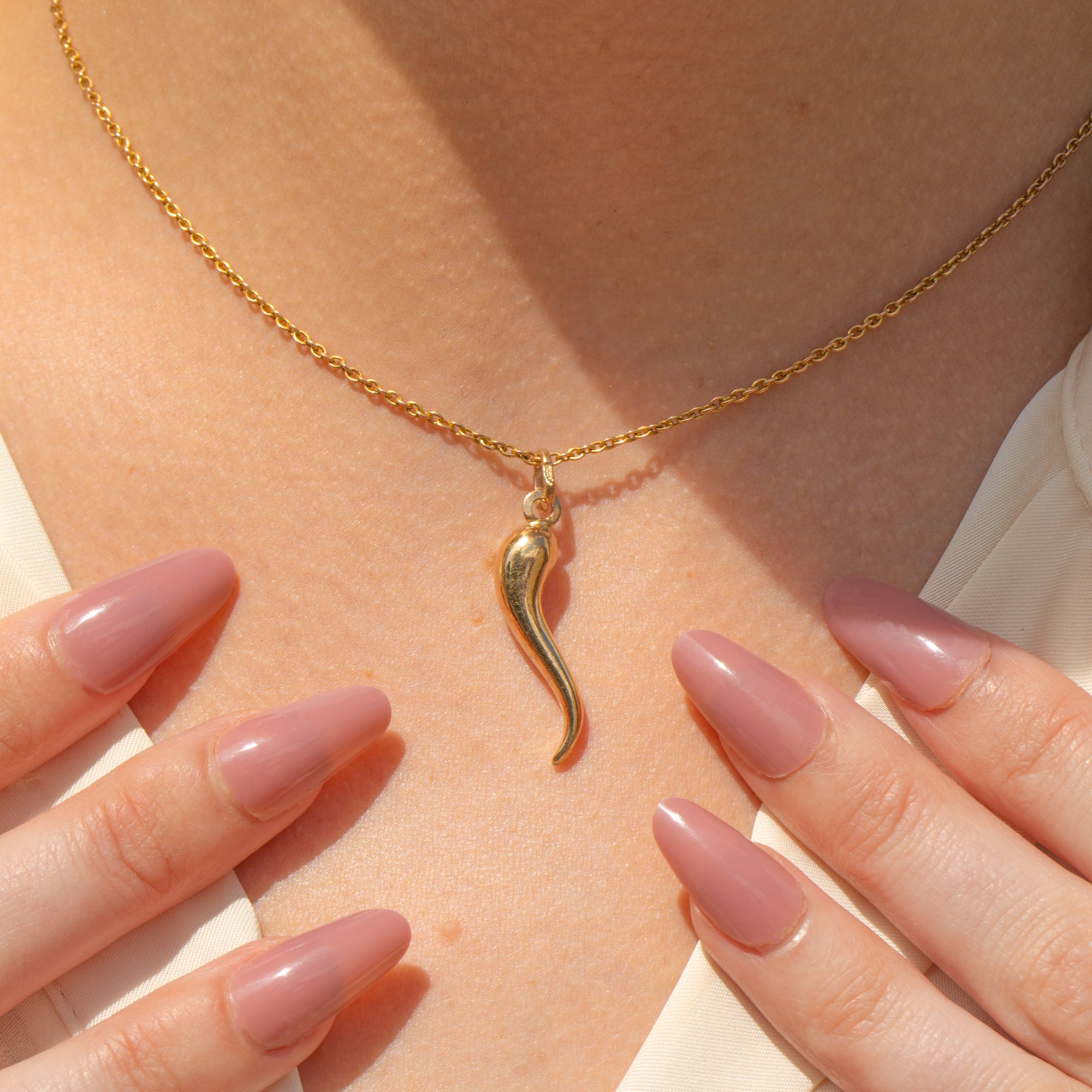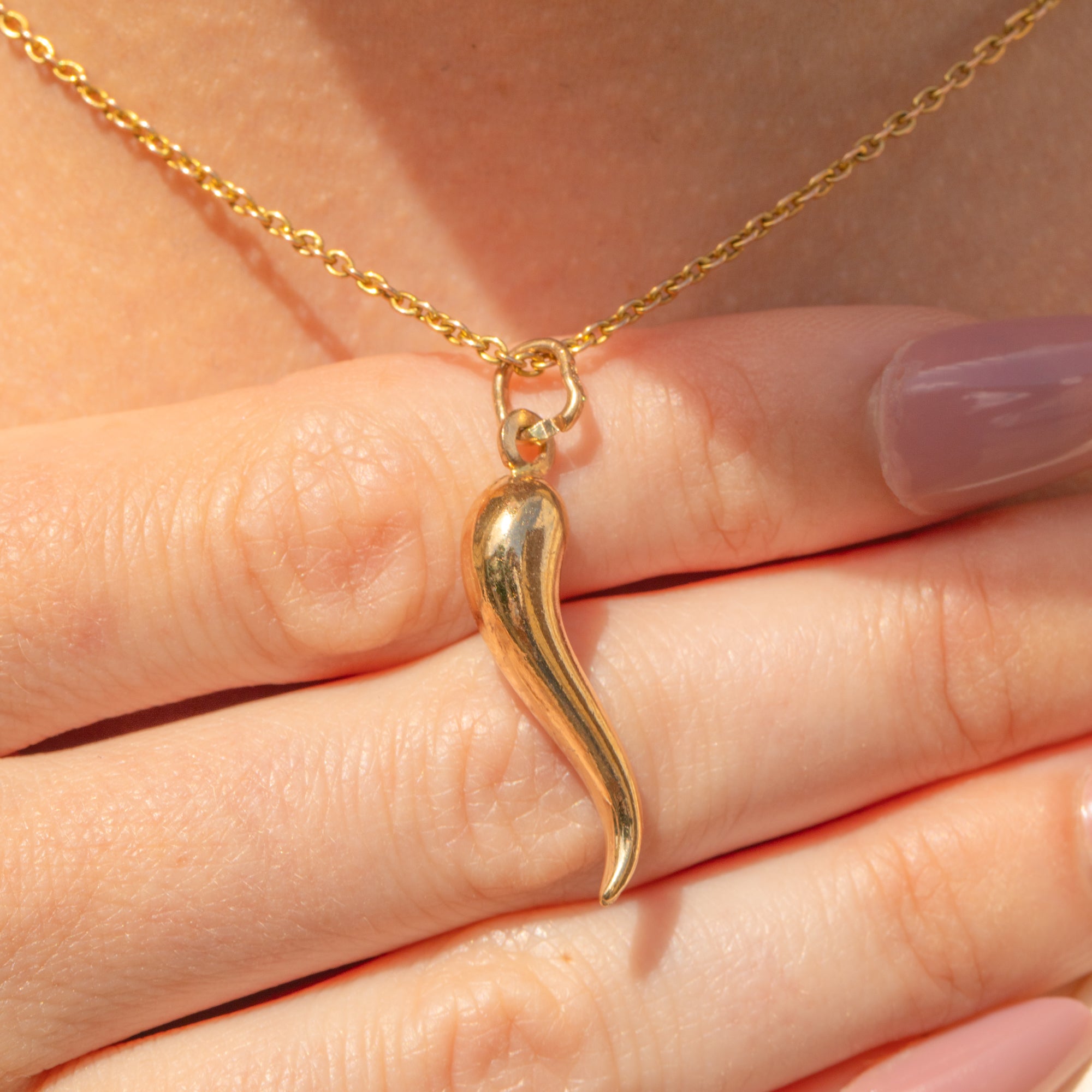 Her striking form will suspend elegantly from your favourtite chain, instantly adding a luxurious flash of Gold to your outfit!