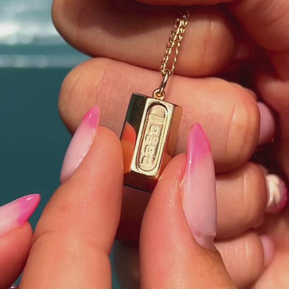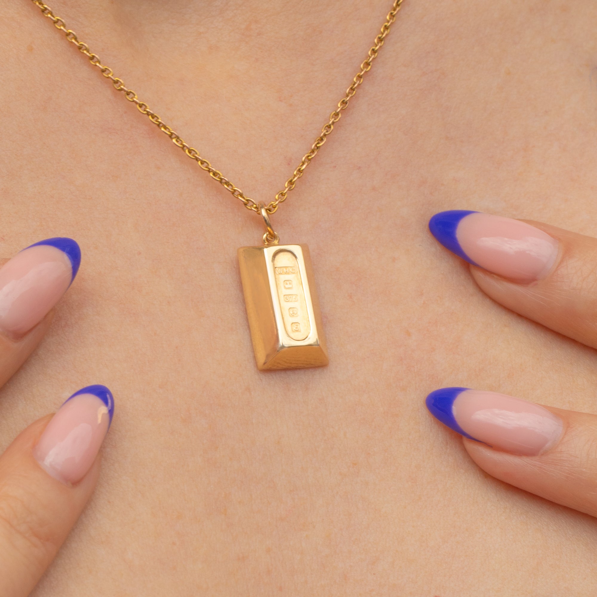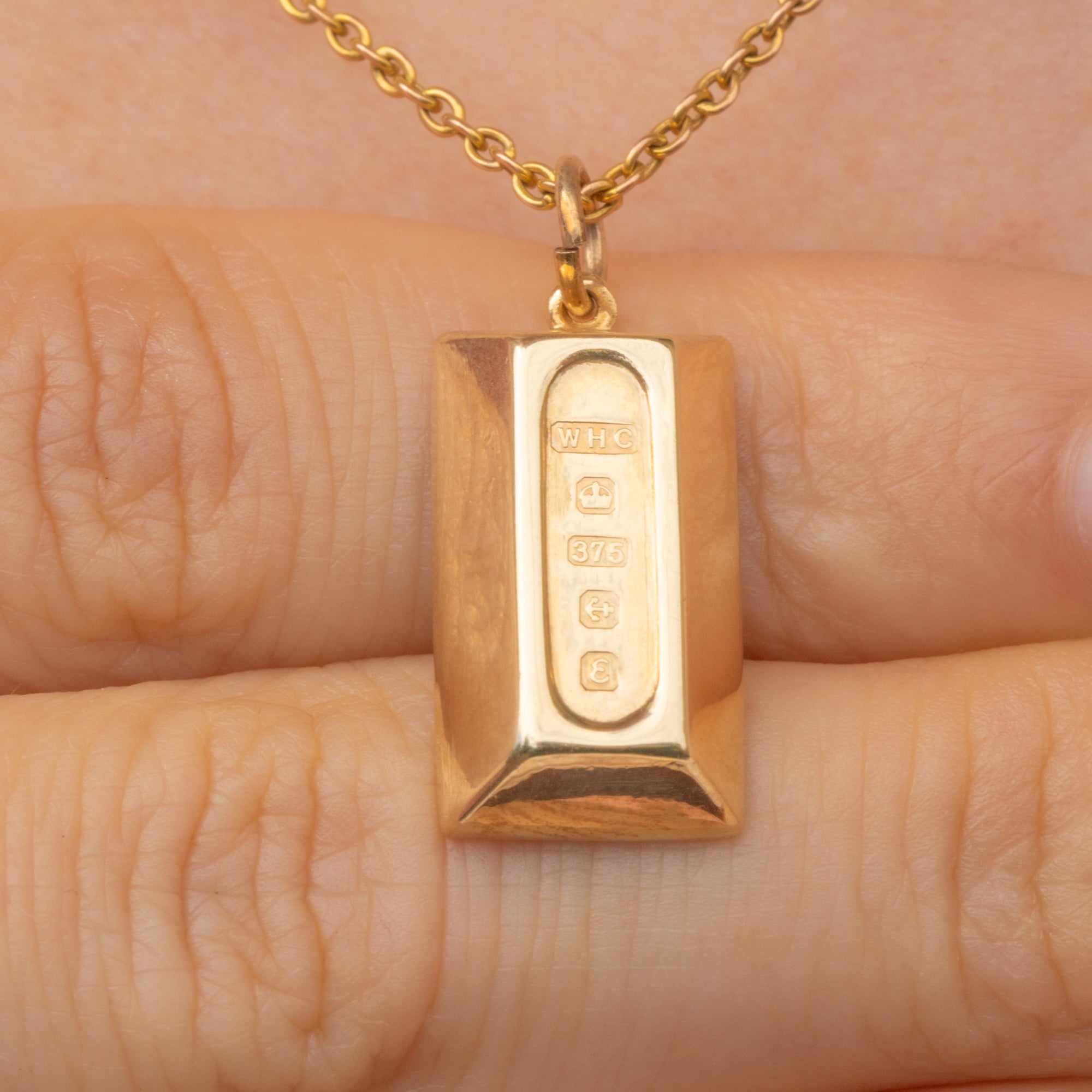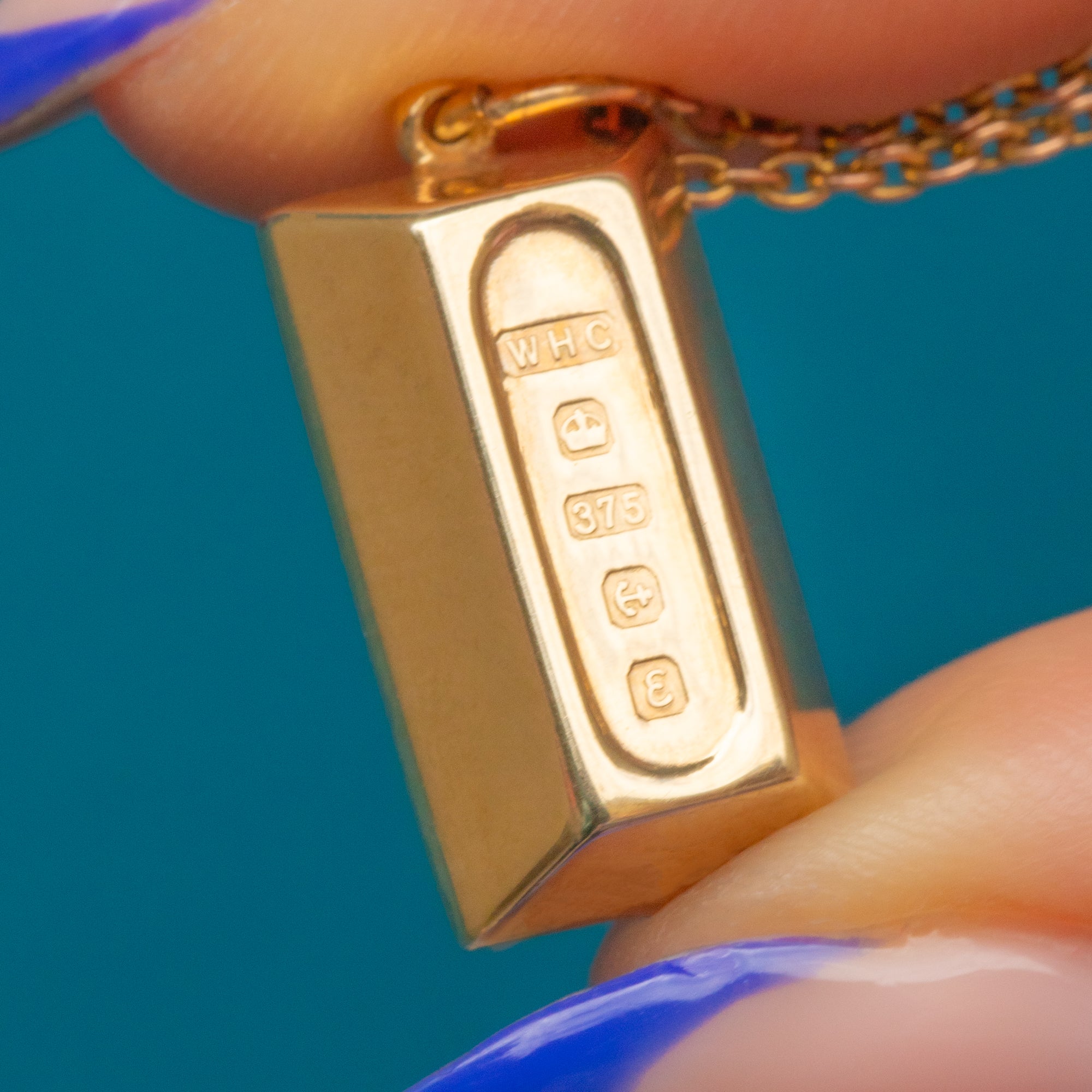 EXCELLENT. This 9ct Gold ingot charm is in excellent condition. The hallmarks are crisp and the jump ring is secure allowing you to suspend it securely from a chain. The back is smooth and wears comfortably!