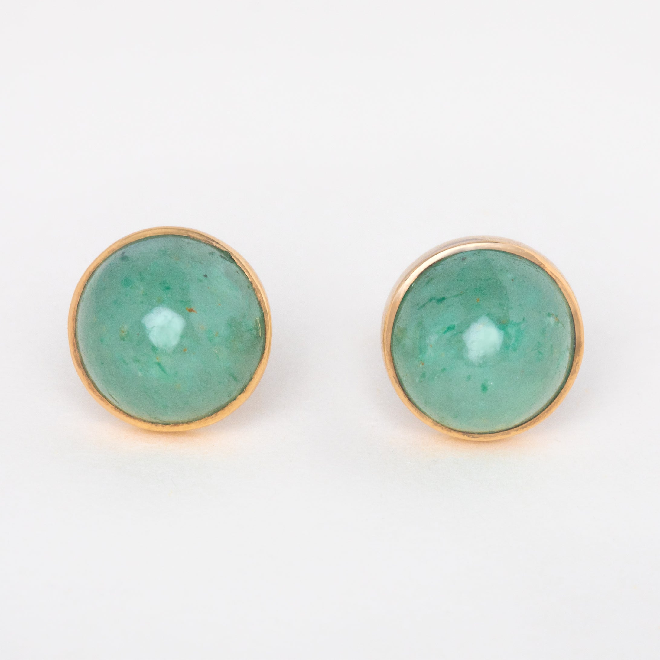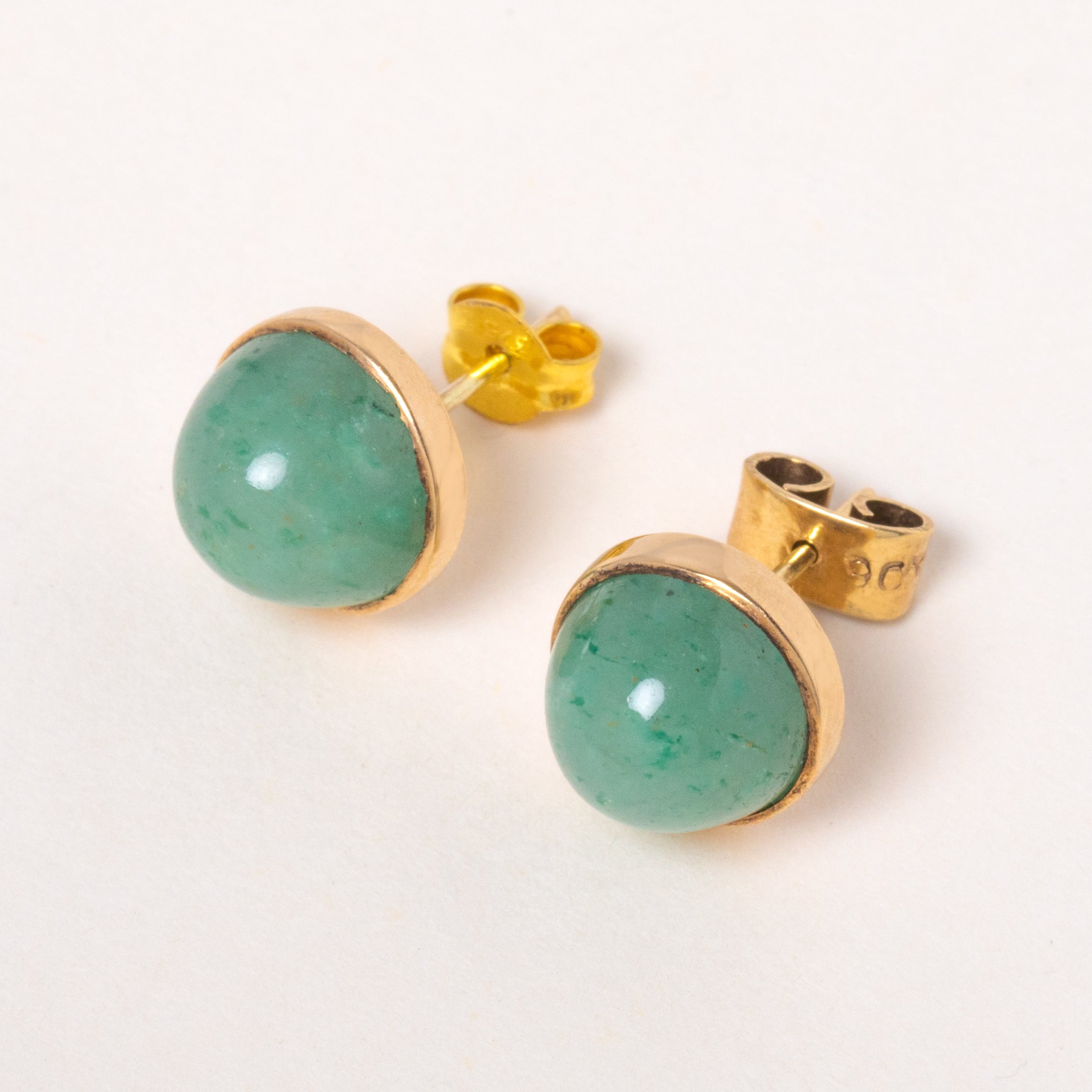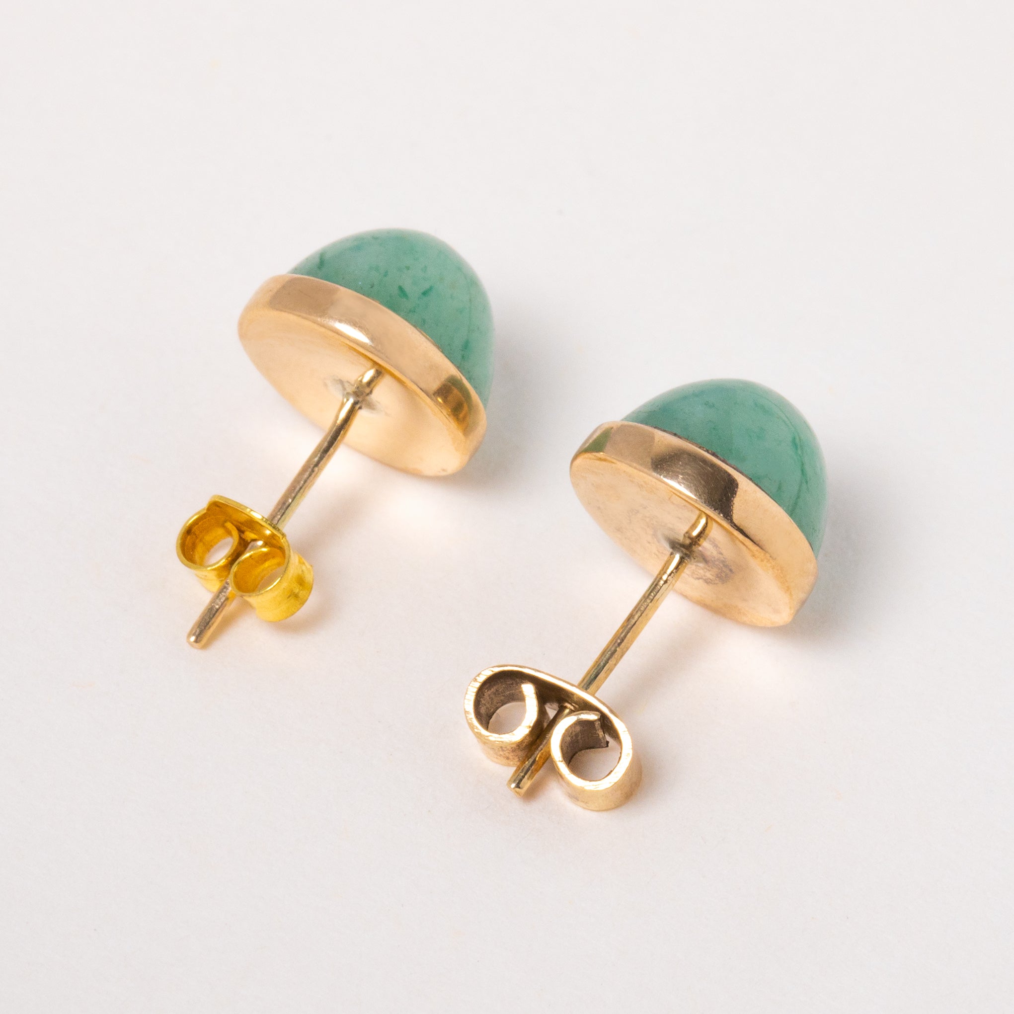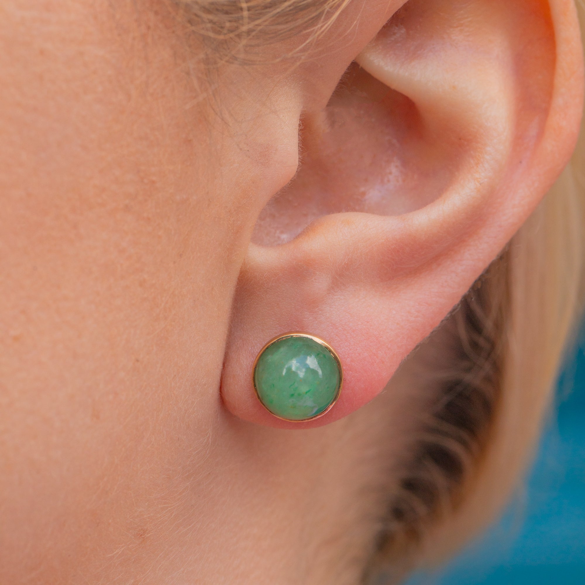 9ct Gold Bezel Set Jade Cabochon Stud Earrings