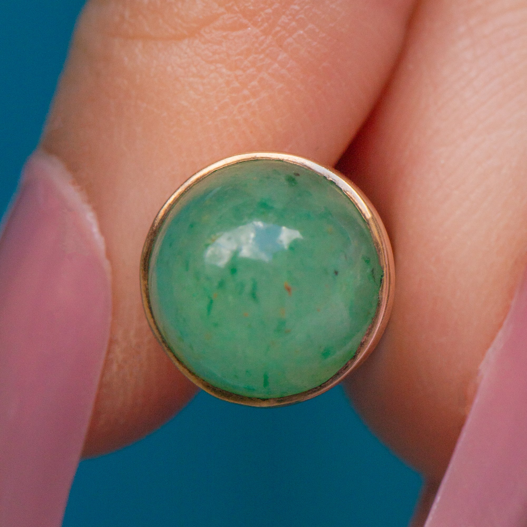 EXCELLENT. These 9ct Gold Jade cabochon stud earrings are in excellent condition! The Jade cabochons are smooth to the touch and have a lovely misty green core with speckles of fern. The bezel settings are in perfect condition and with secure-fitting butterfly backs, you can wear them with the utmost confidence!
