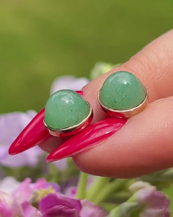 Add an instant pop of colour to your ear stack with these 9ct Gold Jade cabochon stud earrings! The combination of Jade cabochons, flaunting dappled moss hues, with the buttery hue of the chunky 9ct Gold bezel settings create a sophisticated duo.
