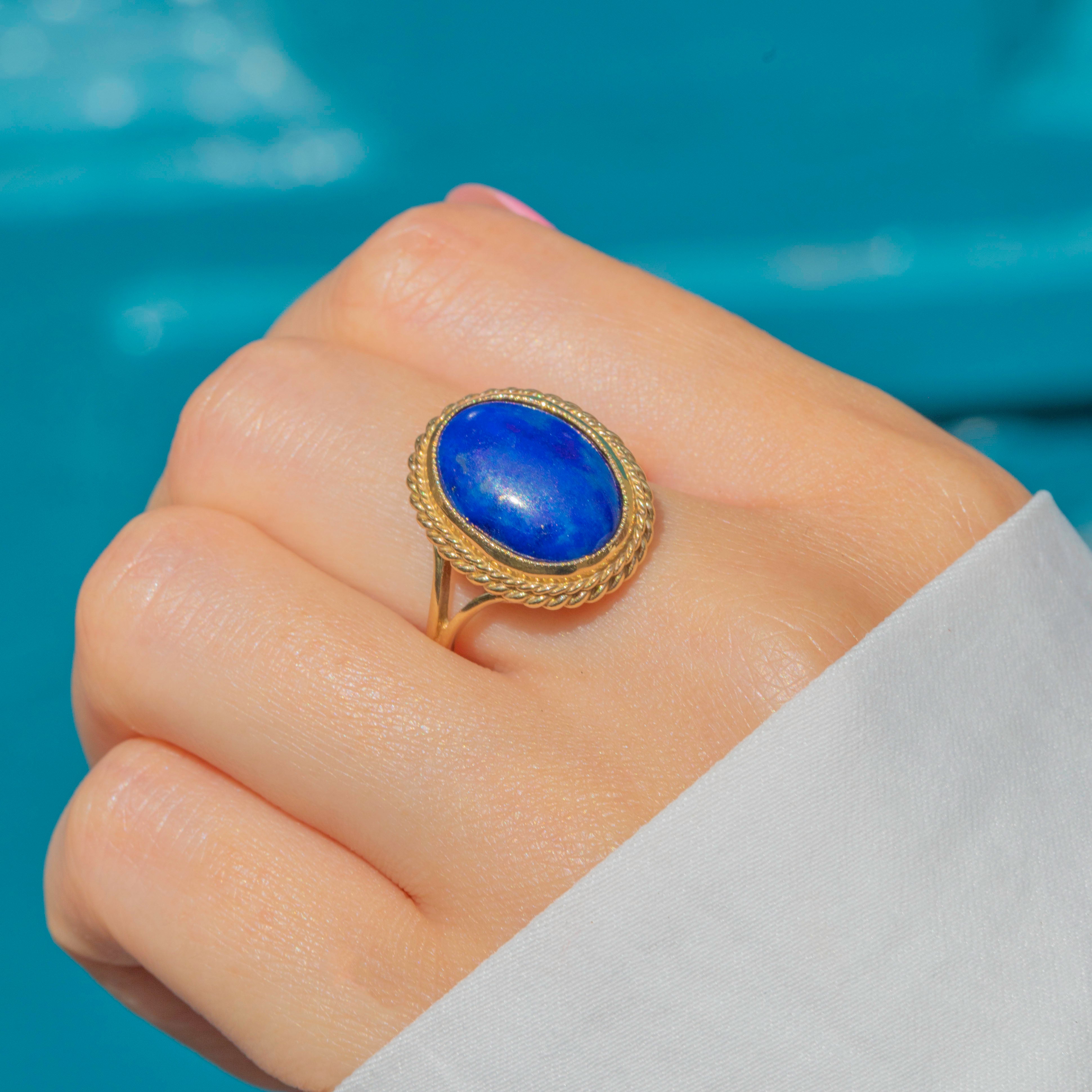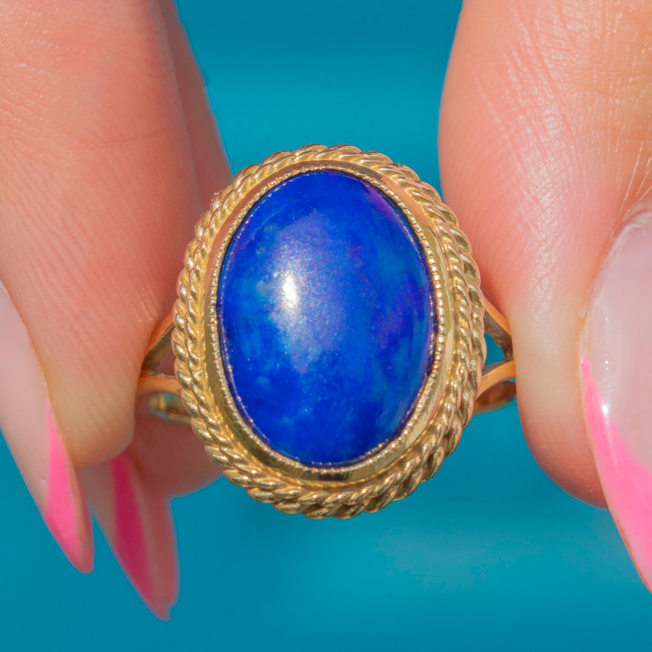 Behold the beauty of this impressive 9ct Gold Lapis Lazuli dress ring! The Lapis Lazuli is a feast for the eyes, with a deep sea blue hue that will leave you mesmerised.