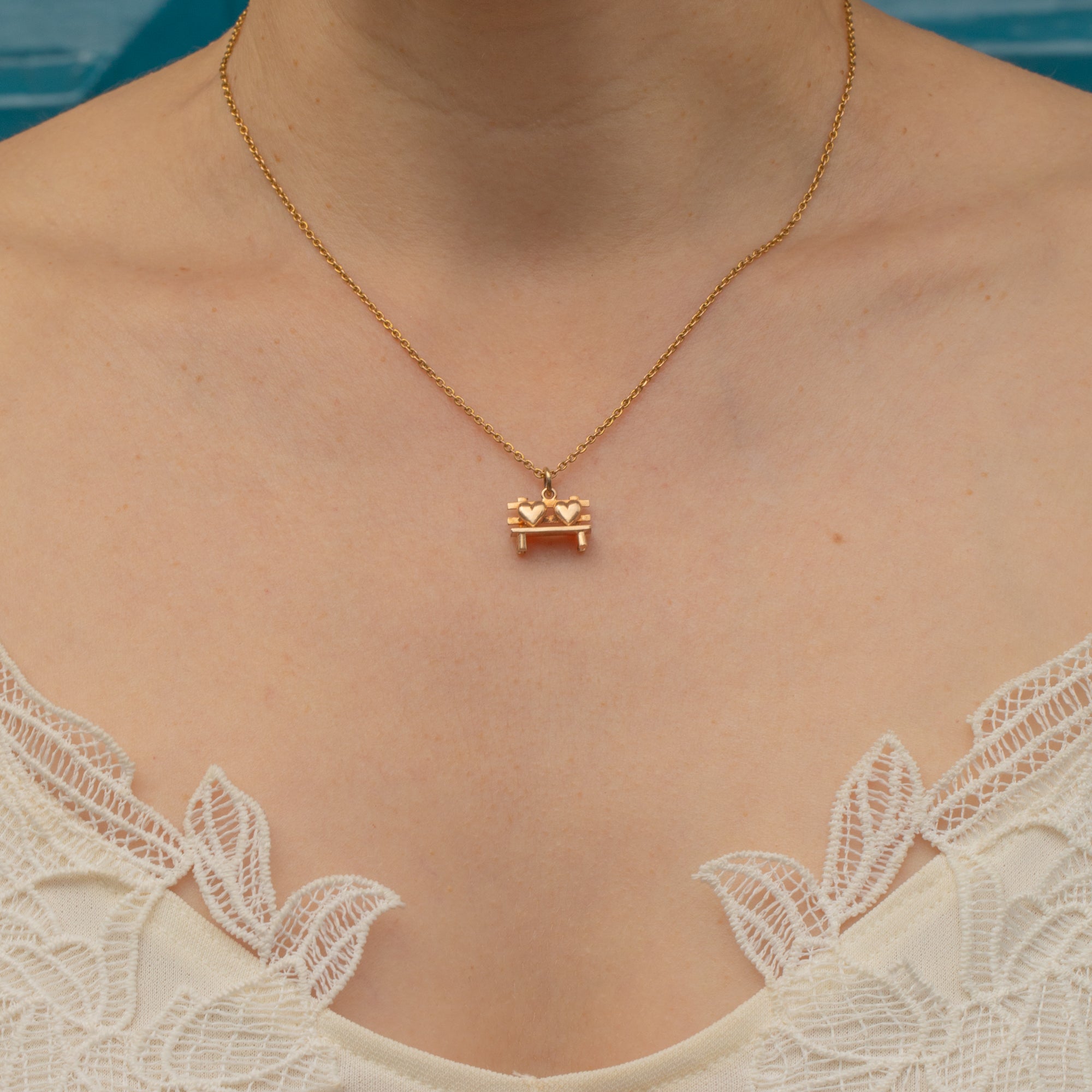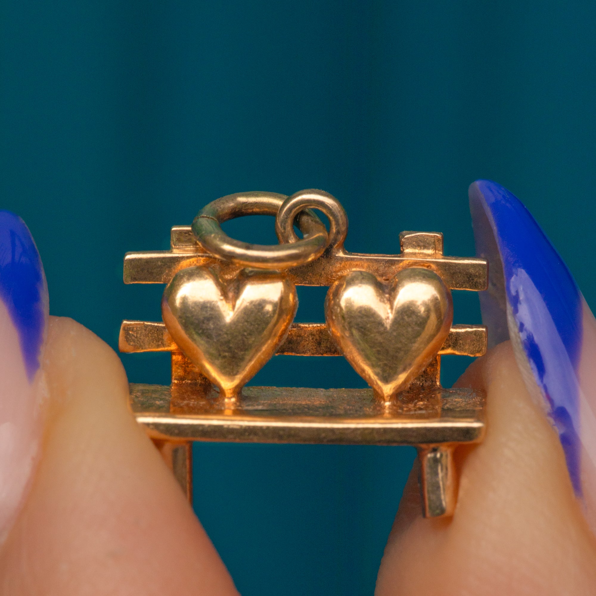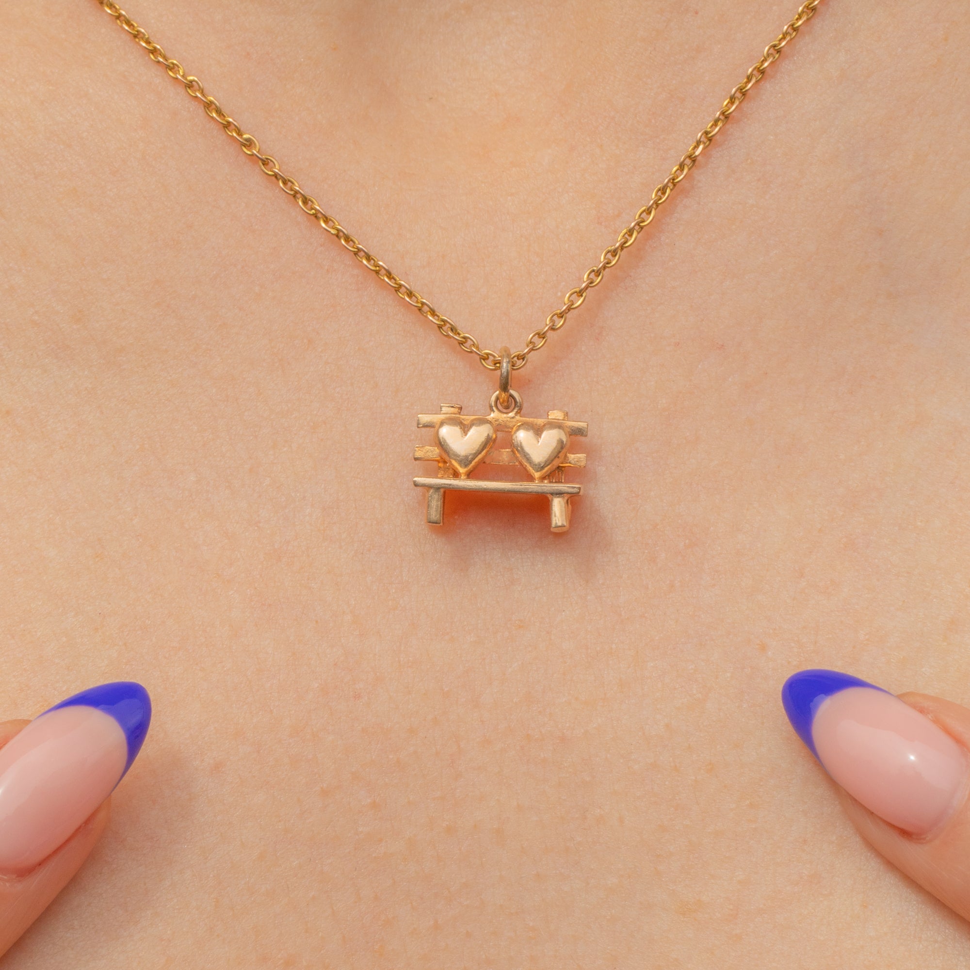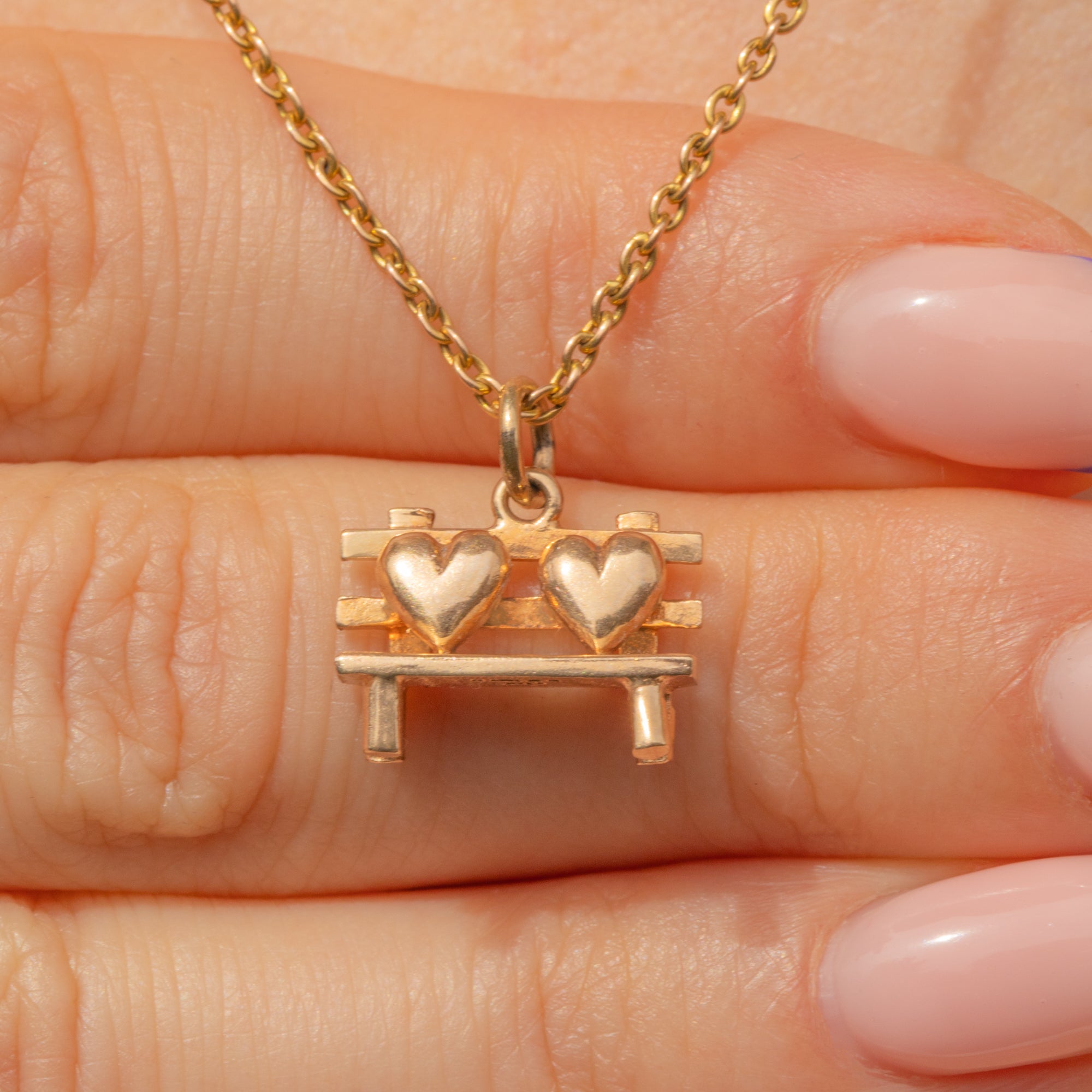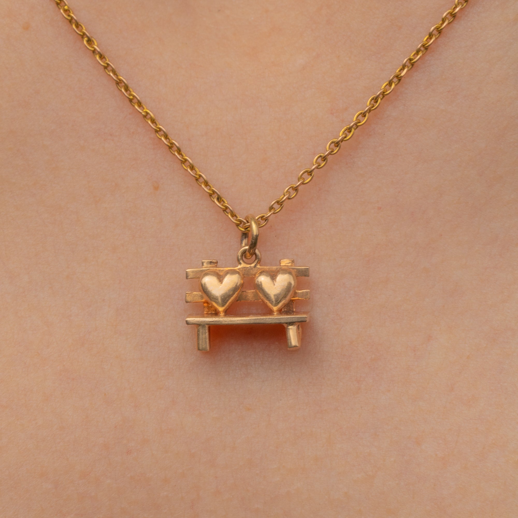 Fall in love with this 9ct Gold love heart bench charm! A charming bench, also known as a love seat, boasts two hearts in situ and is crafted from buttery 9ct Gold throughout.