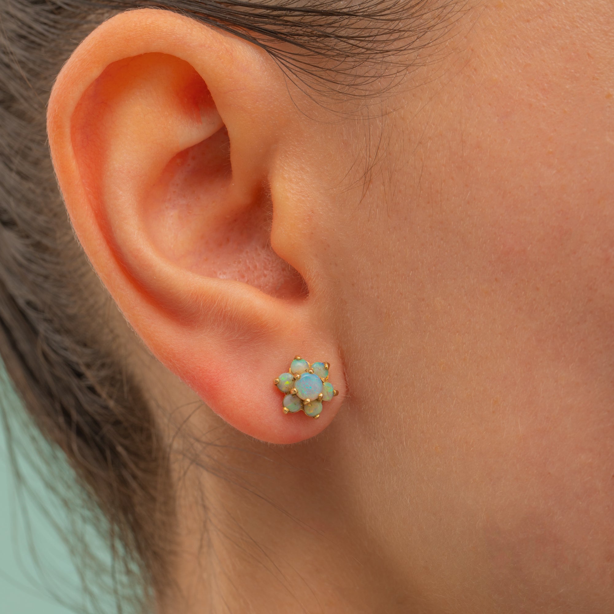 These 9ct Gold Opal flower cluster stud earrings embody springtime delight!