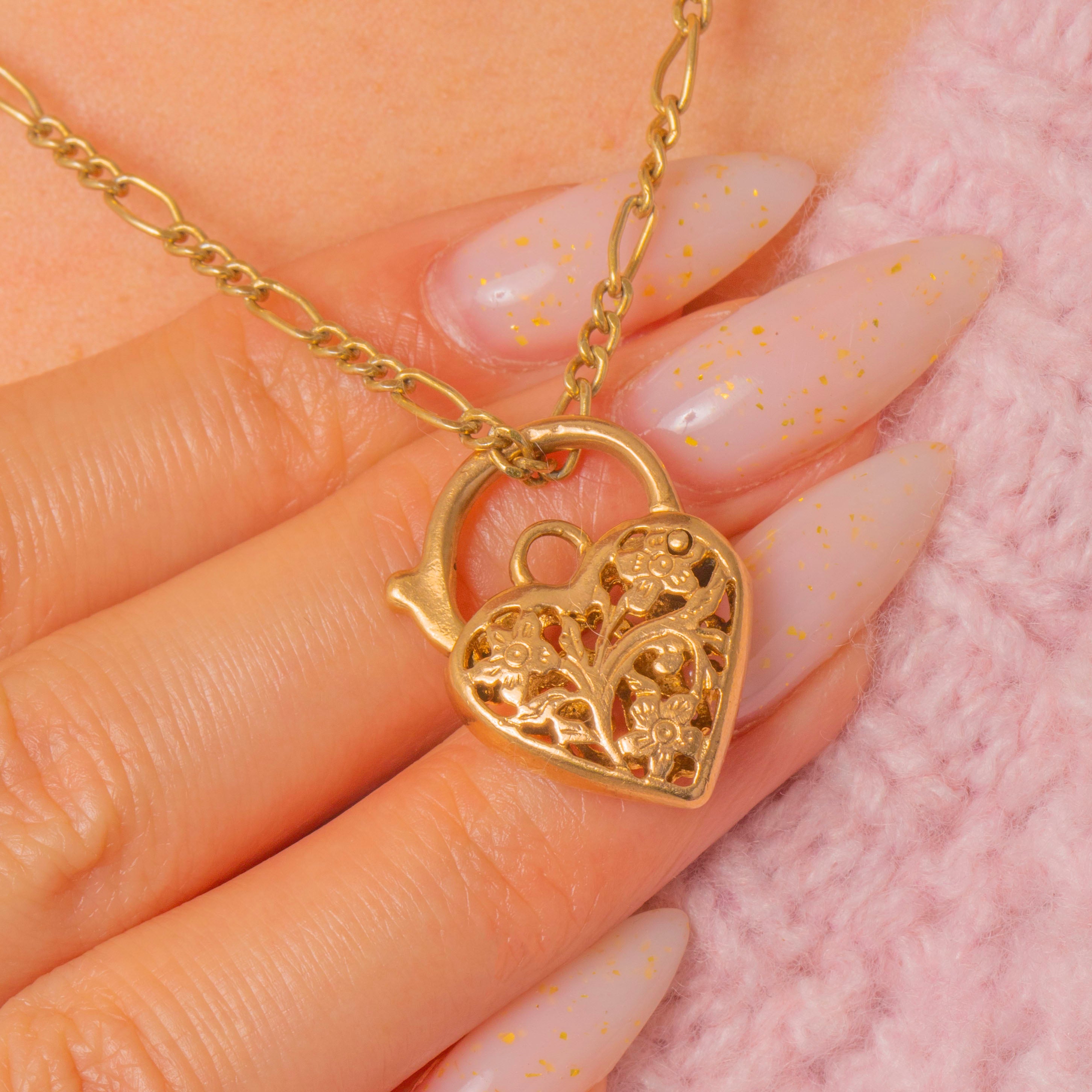 9ct Gold Openwork Heart Padlock Pendant