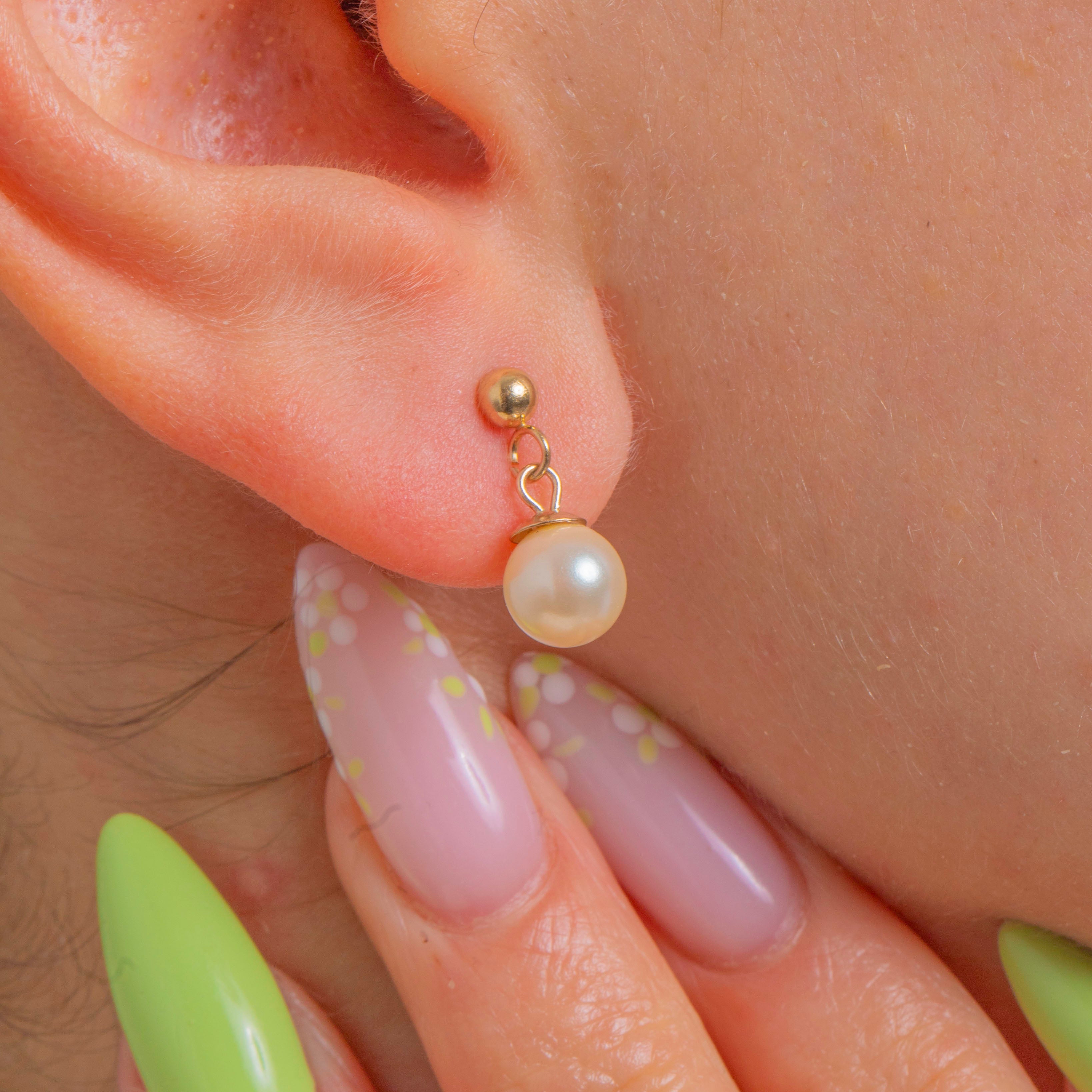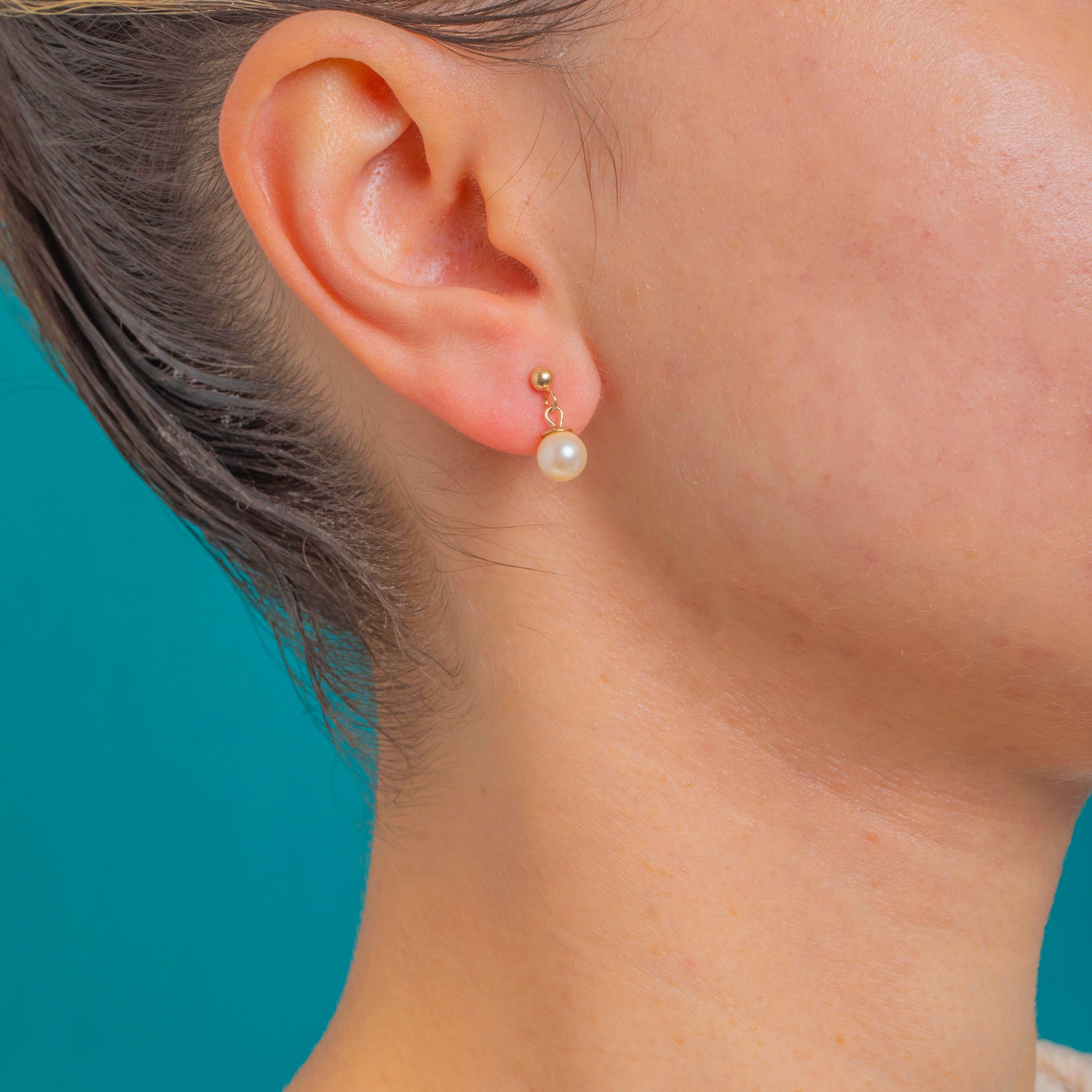 9ct Gold Pearl Dangle Stud Earrings