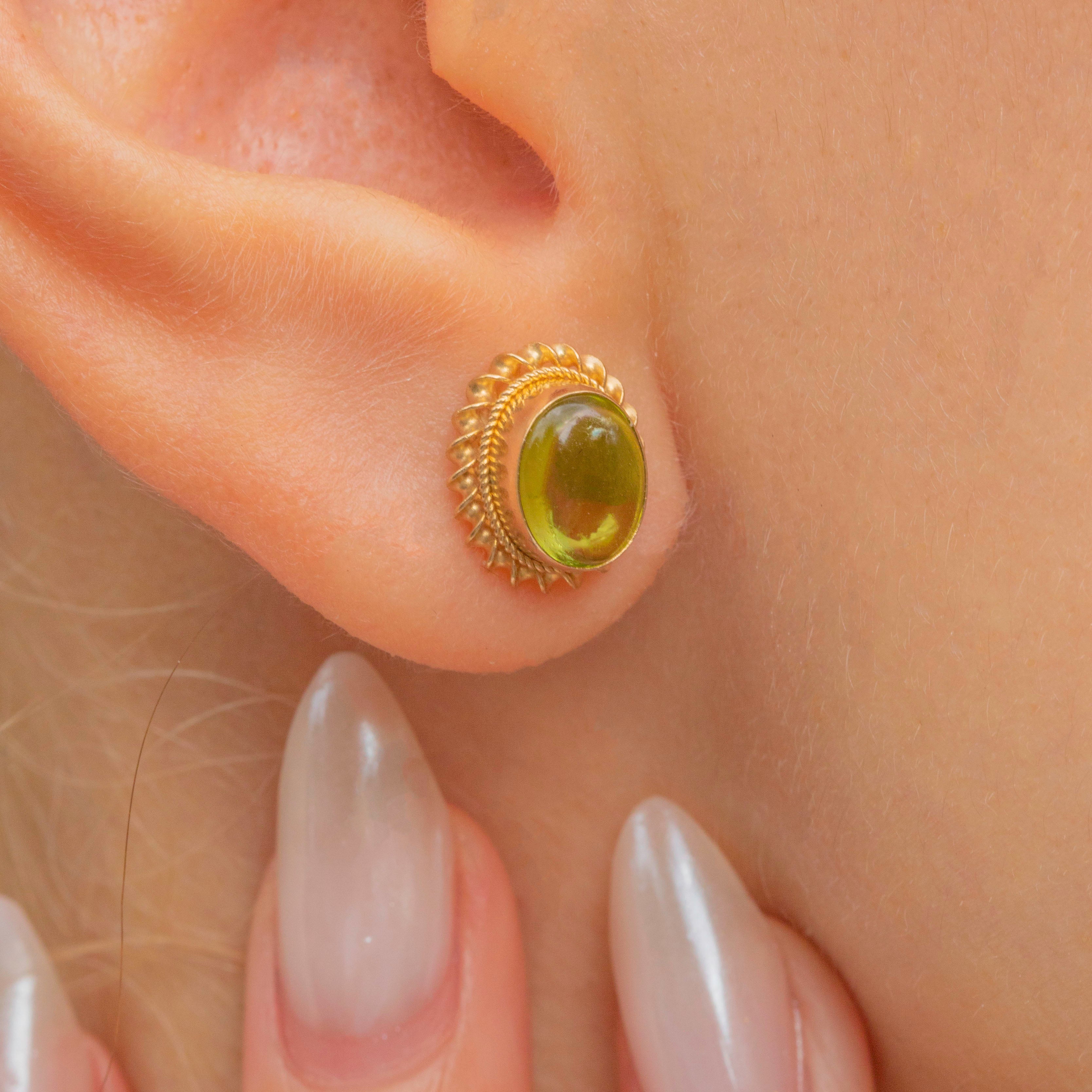 The fresh, lime green Peridot gems are set in a 9ct Gold bezel, bordered by twisted rope details, adding a striking finish. Perfect for all-day, everyday wear, these Gold stud earrings will provide your collection with a welcome pop of colour!