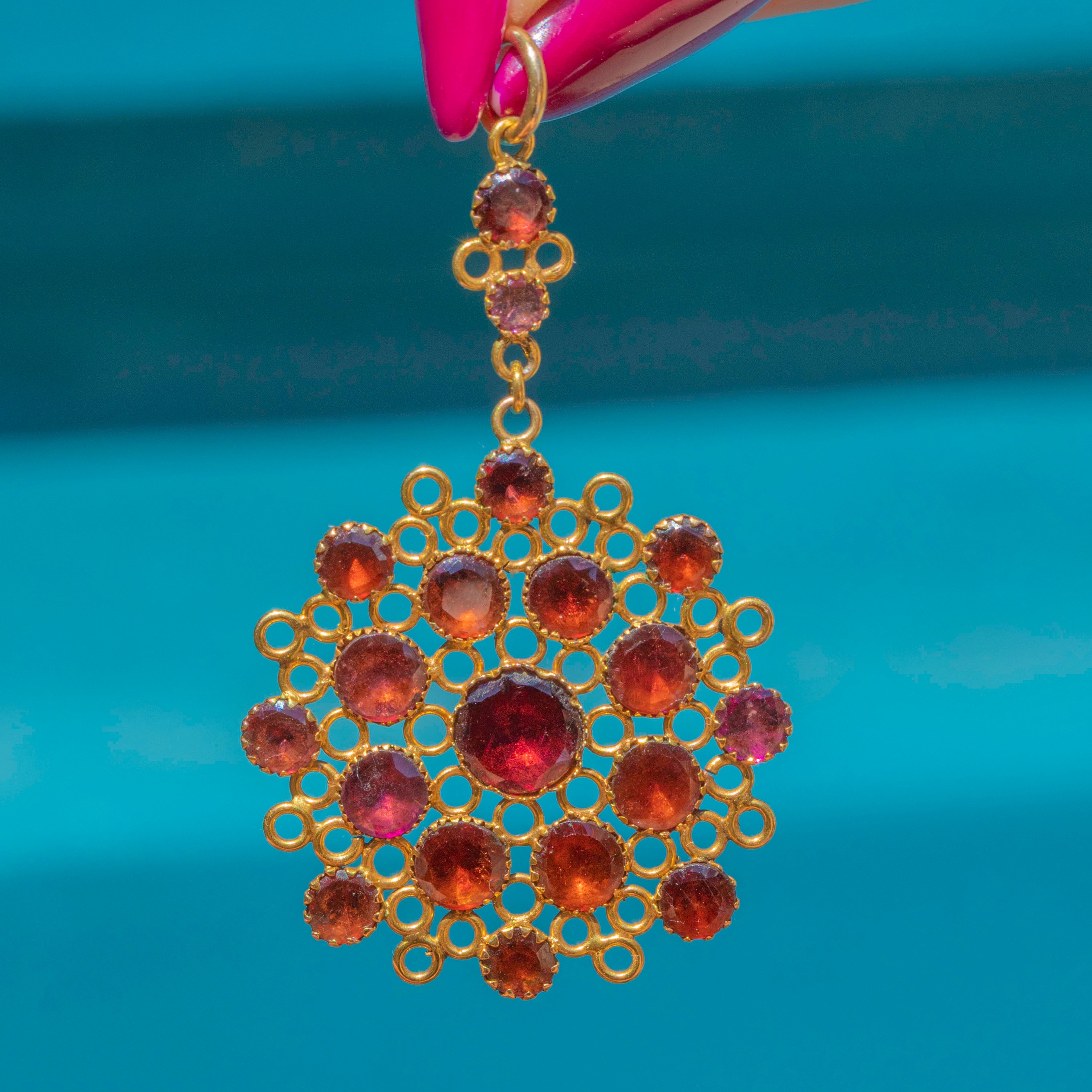 EXCELLENT: The Gold has a gorgeous saturation and each component is securely affixed. The Garnets are secure in their settings and free from any notable signs of wear. A beautiful antique piece, this Georgian Garnet pendant is a must-have!