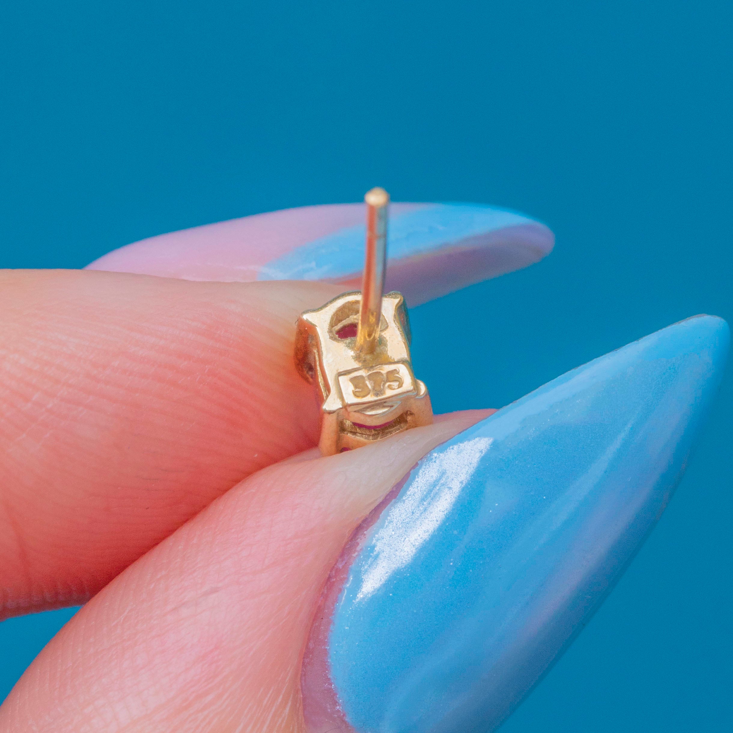 The Gold settings are bright and glossy, and weighing less than a gram combined, these vintage studs are a wonderful, versatile option for everyday wear.