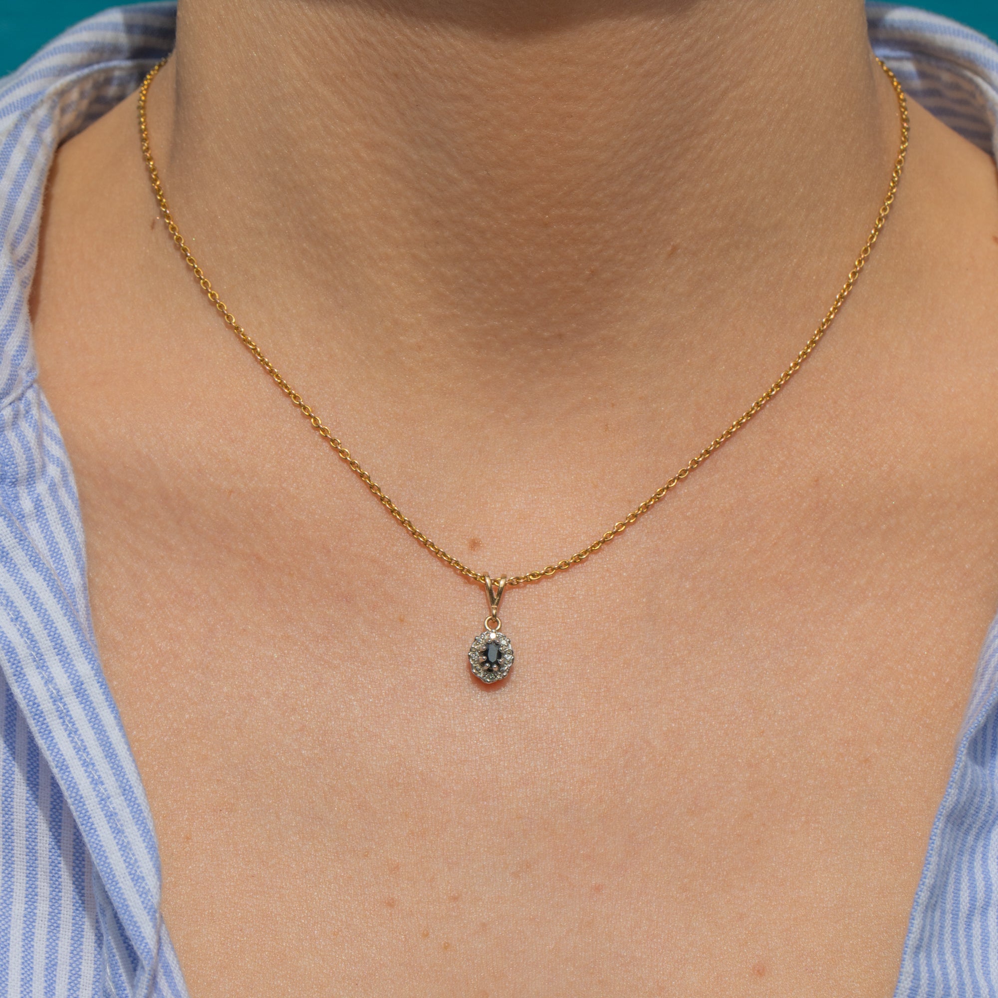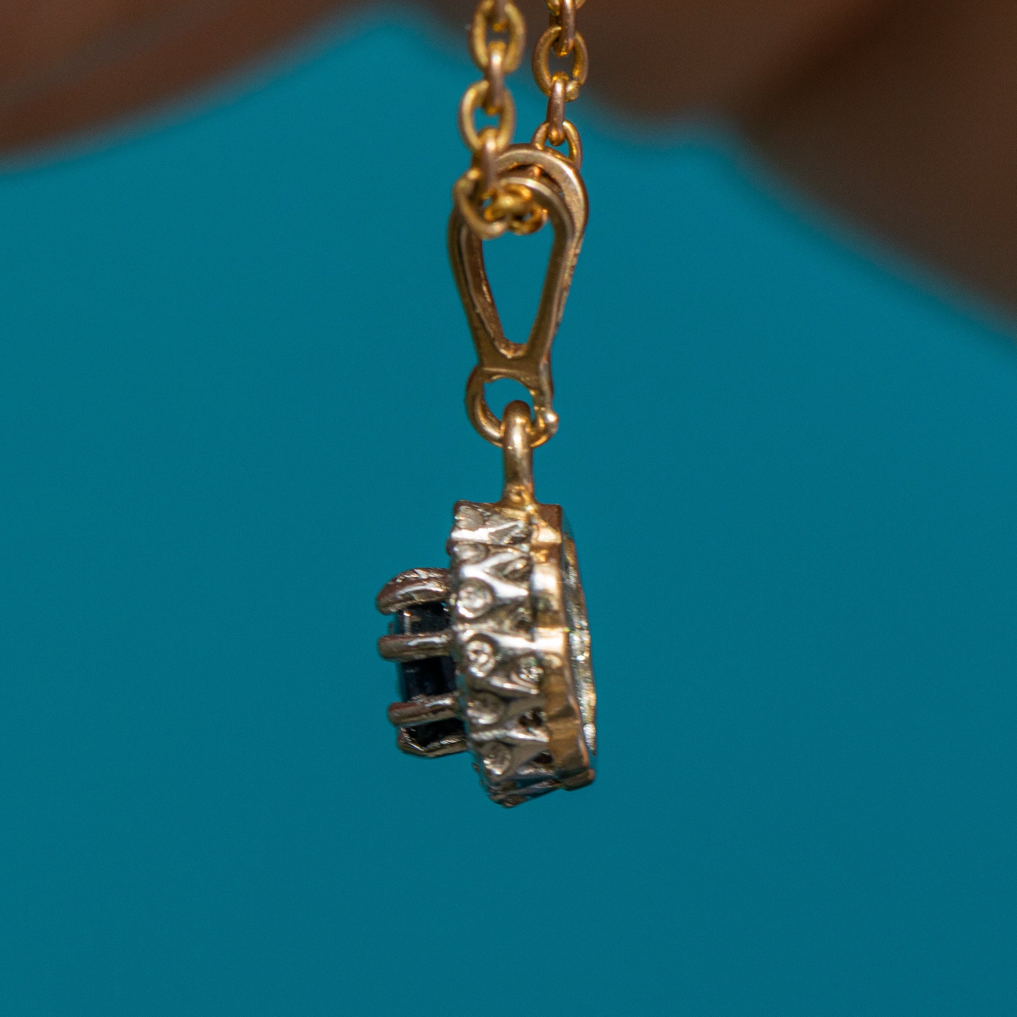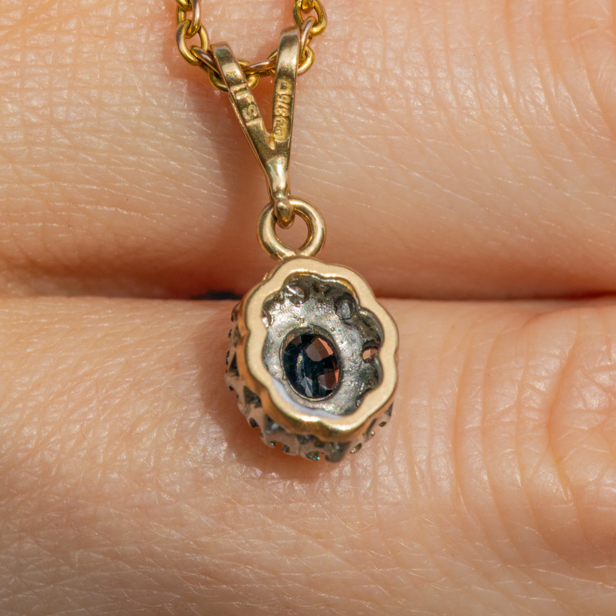 EXCELLENT. This 9ct Gold Sapphire & Diamond cluster charm is in excellent condition! The Sapphire and Diamonds are all securely set and free from chips or abrasions. The body of the pendant is robust promising many more years of wear and the large bale is securely affixed allowing you to wear this luxurious piece confidently!