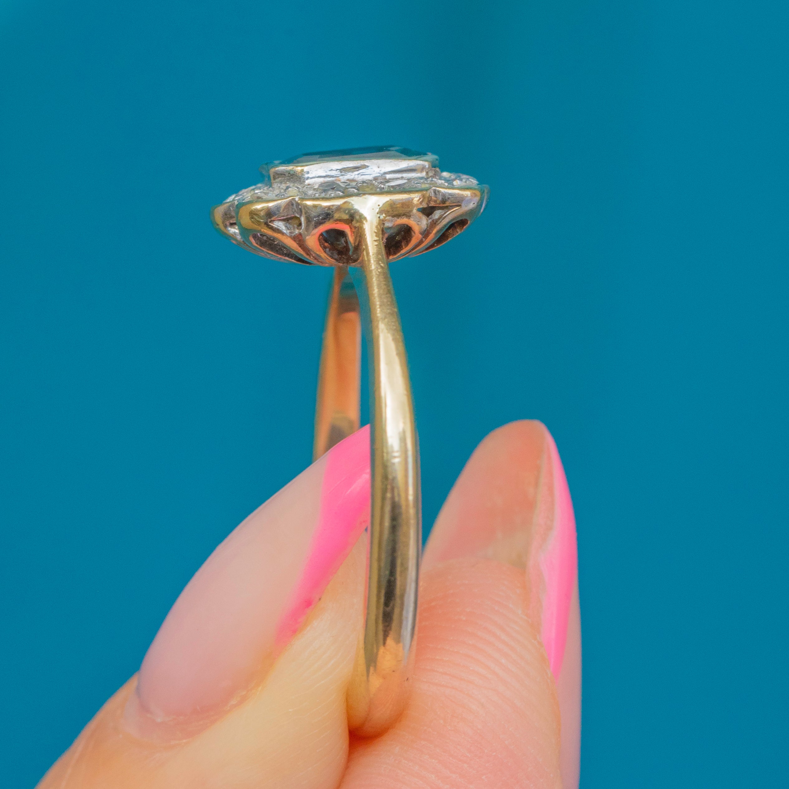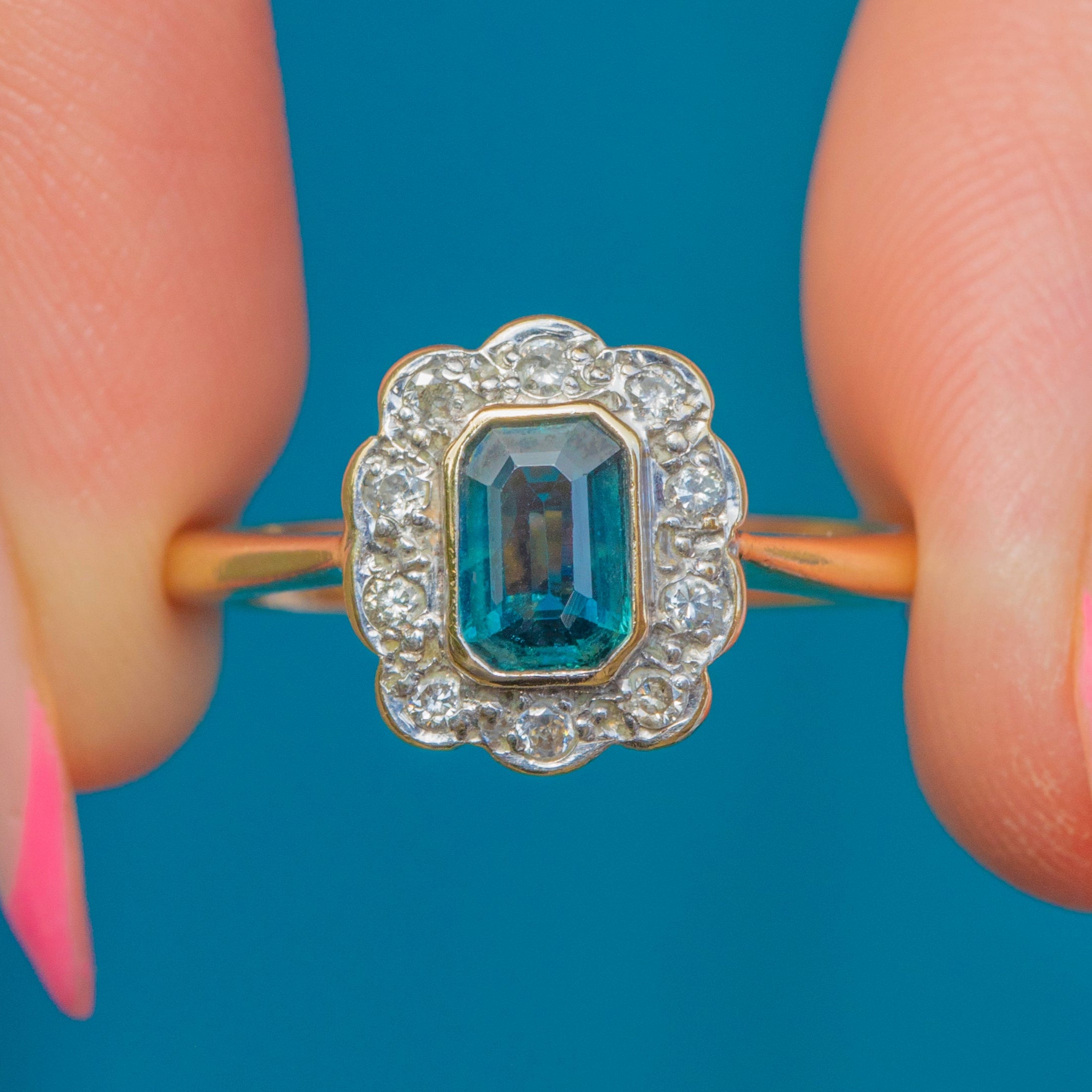 9ct Gold Teal Sapphire Diamond Cluster Ring- 0.70ct Natural Sapphire