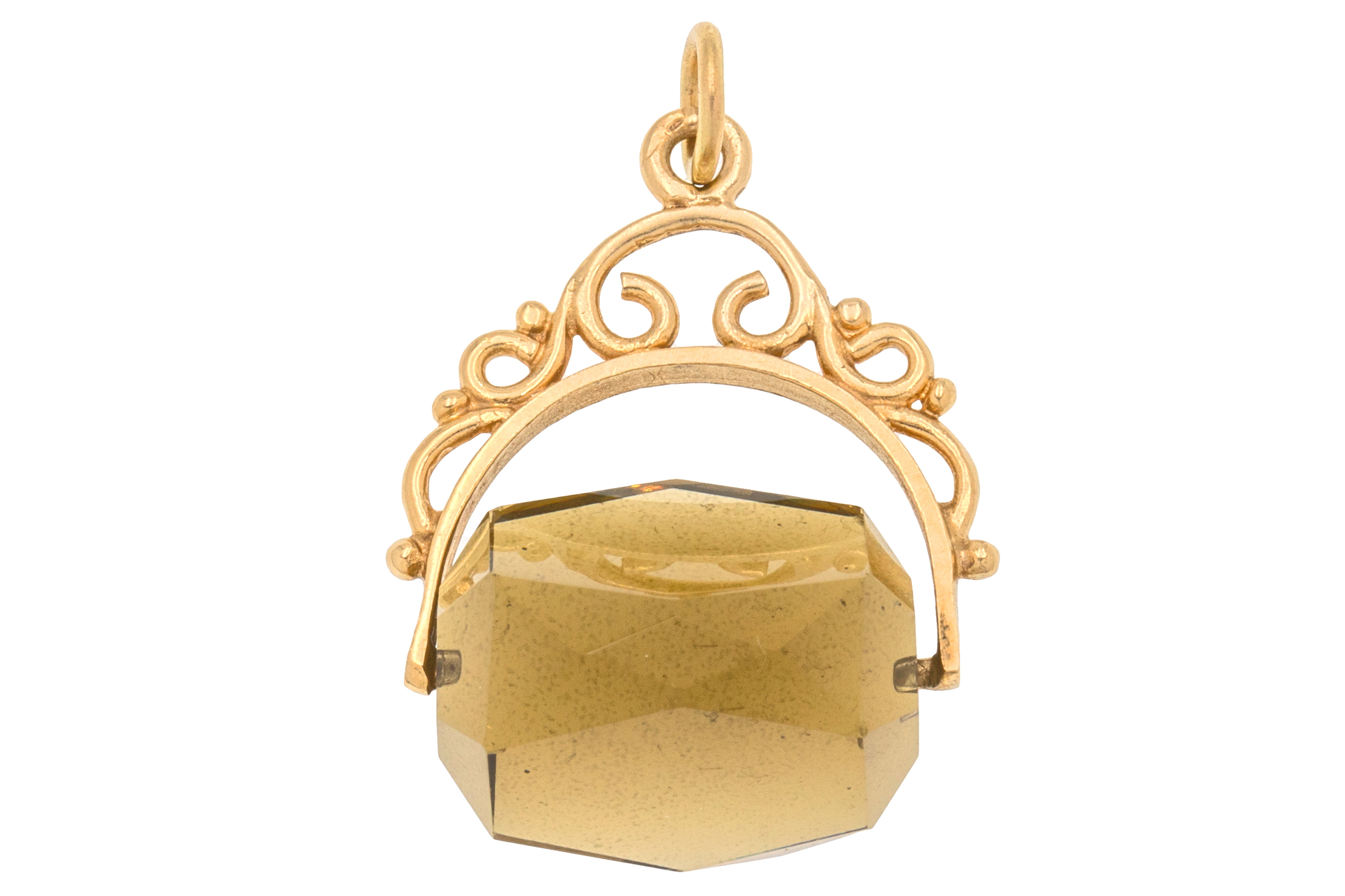 EXCELLENT. This 9ct Gold smokey Quartz spinner fob is in excellent condition. The Gold is bright and the bale sturdy, holding the stone securely in place. Her Smokey Quartz has one small nibble mark on the edge of a facet, but aside from that is in perfect condition. She spins with ease, and her structural integrity has kept well over the years. She presents a full set of hallmarks allowing us to date her back to 1972! A true vintage delight just waiting for its new home!