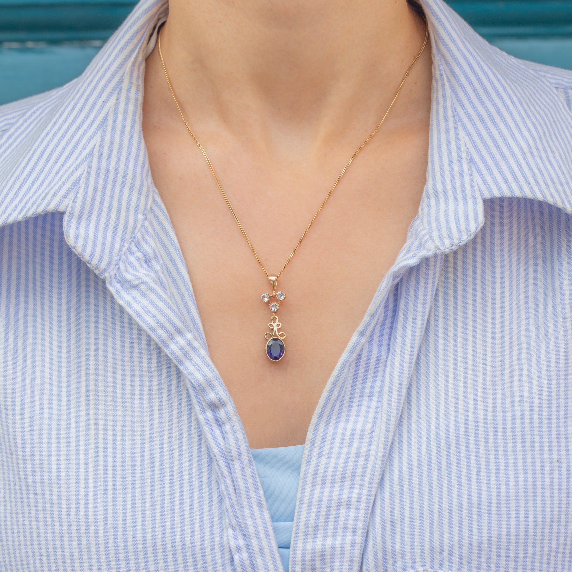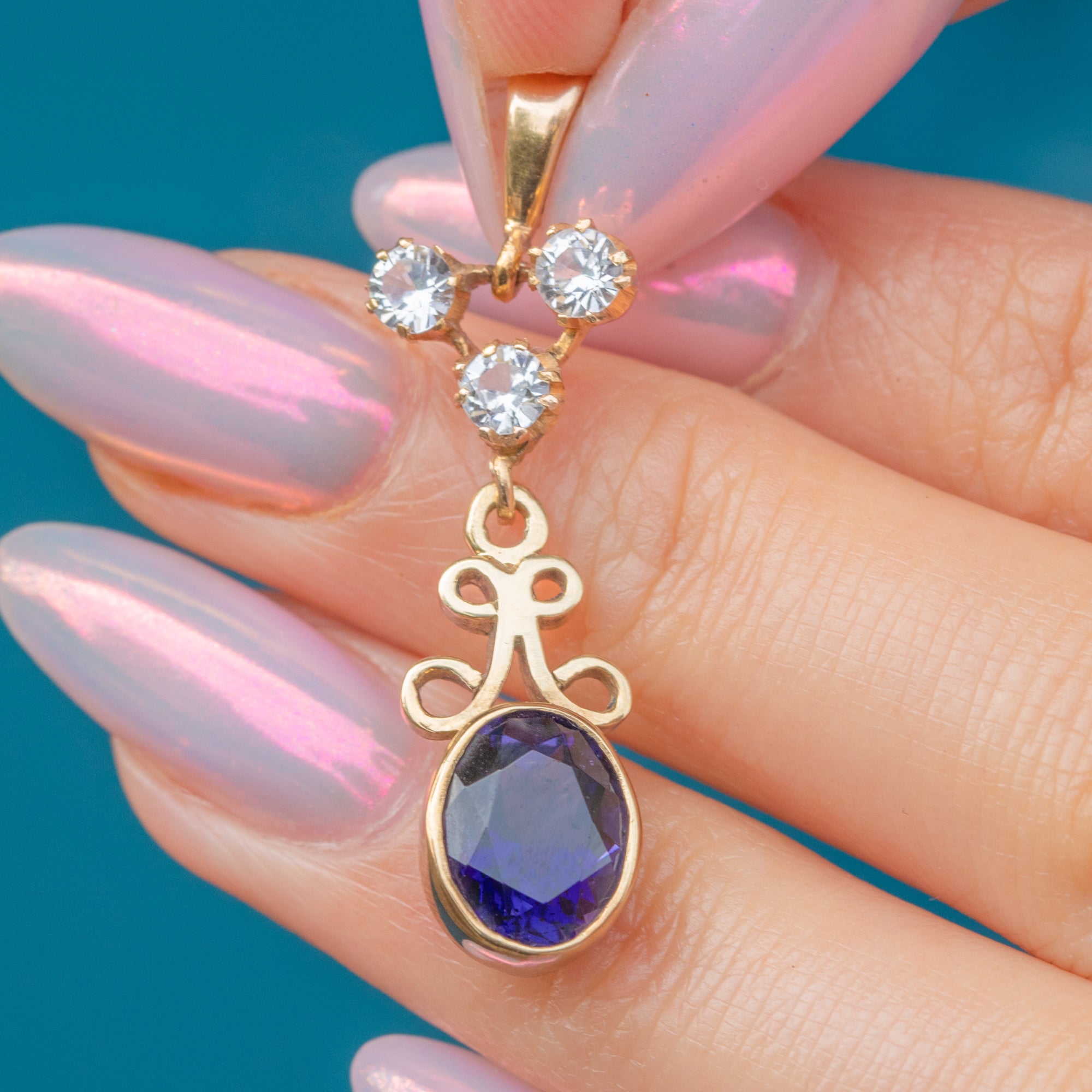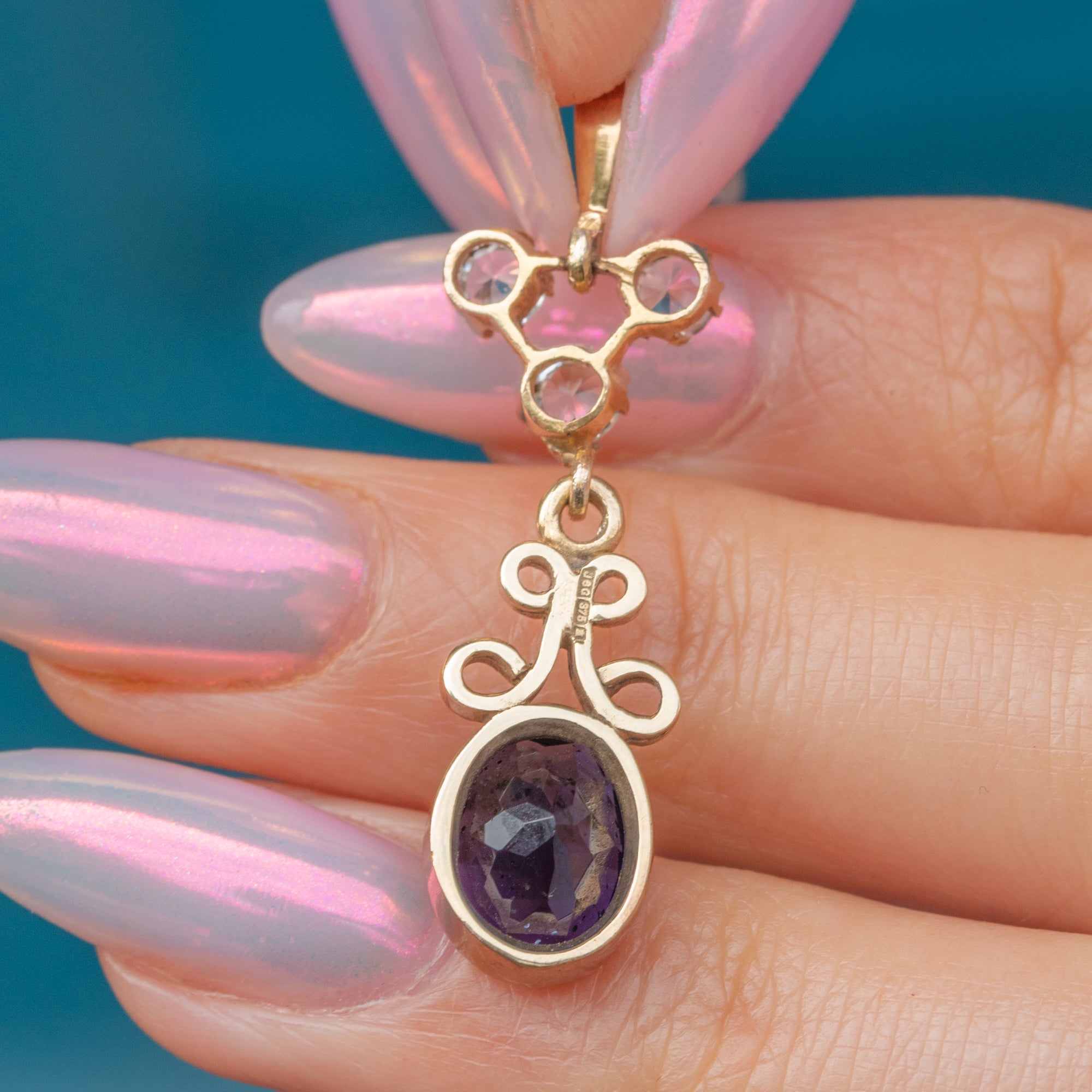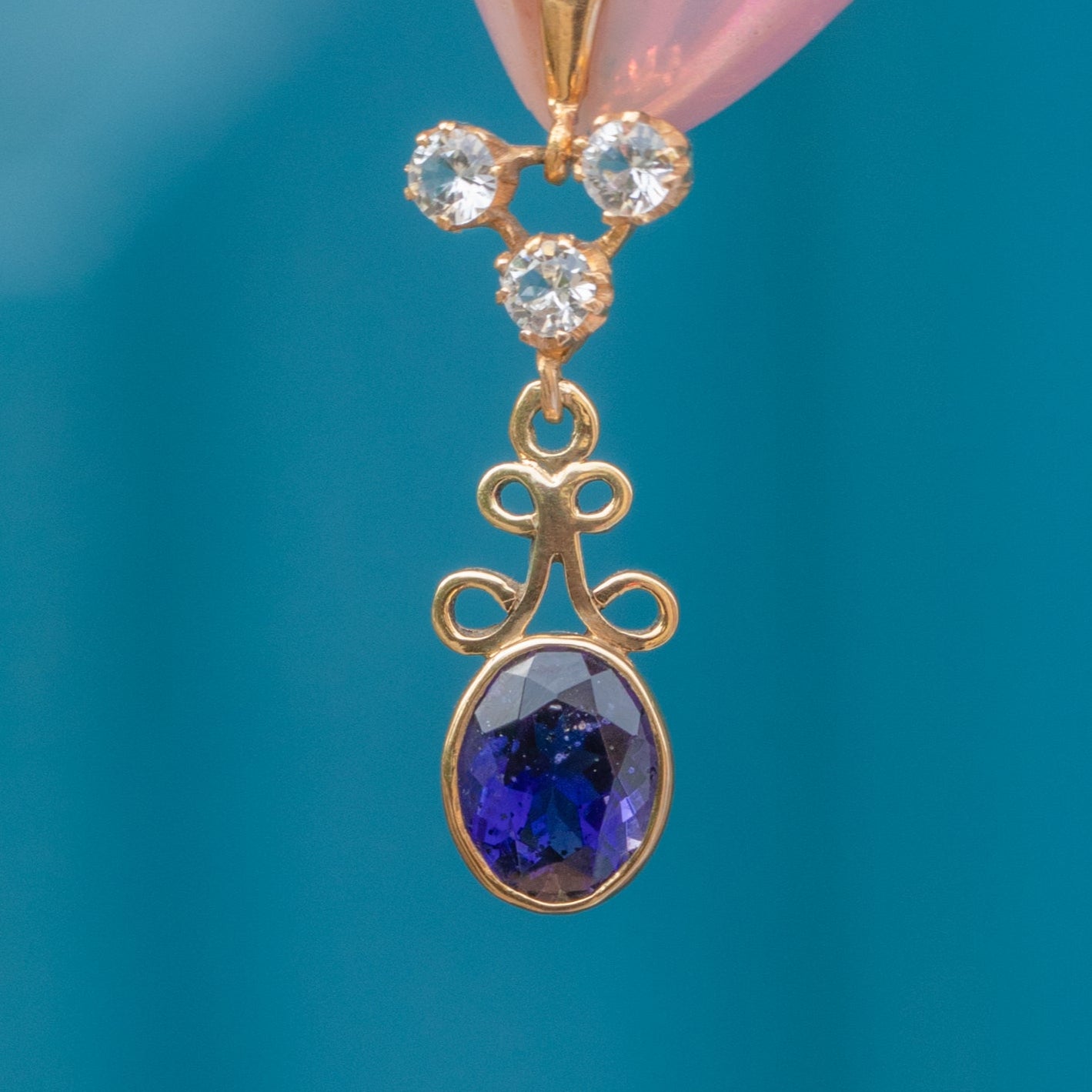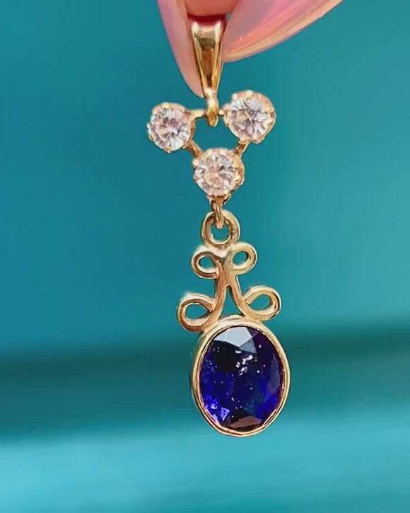 VERY GOOD-EXCELLENT: This 9ct Gold Tanzanite charm is in wonderful condition. Each gemstone sits securely within its settings, with the bright white Sapphires free from any surface wear. There are some small fleabites on the back of the Tanzanite which cannot be seen during wear. You can admire the inclusions under close inspection, which serve as a nice nod to Mother Nature. With a securely soldered bale, you can wear this vintage charm with confidence!