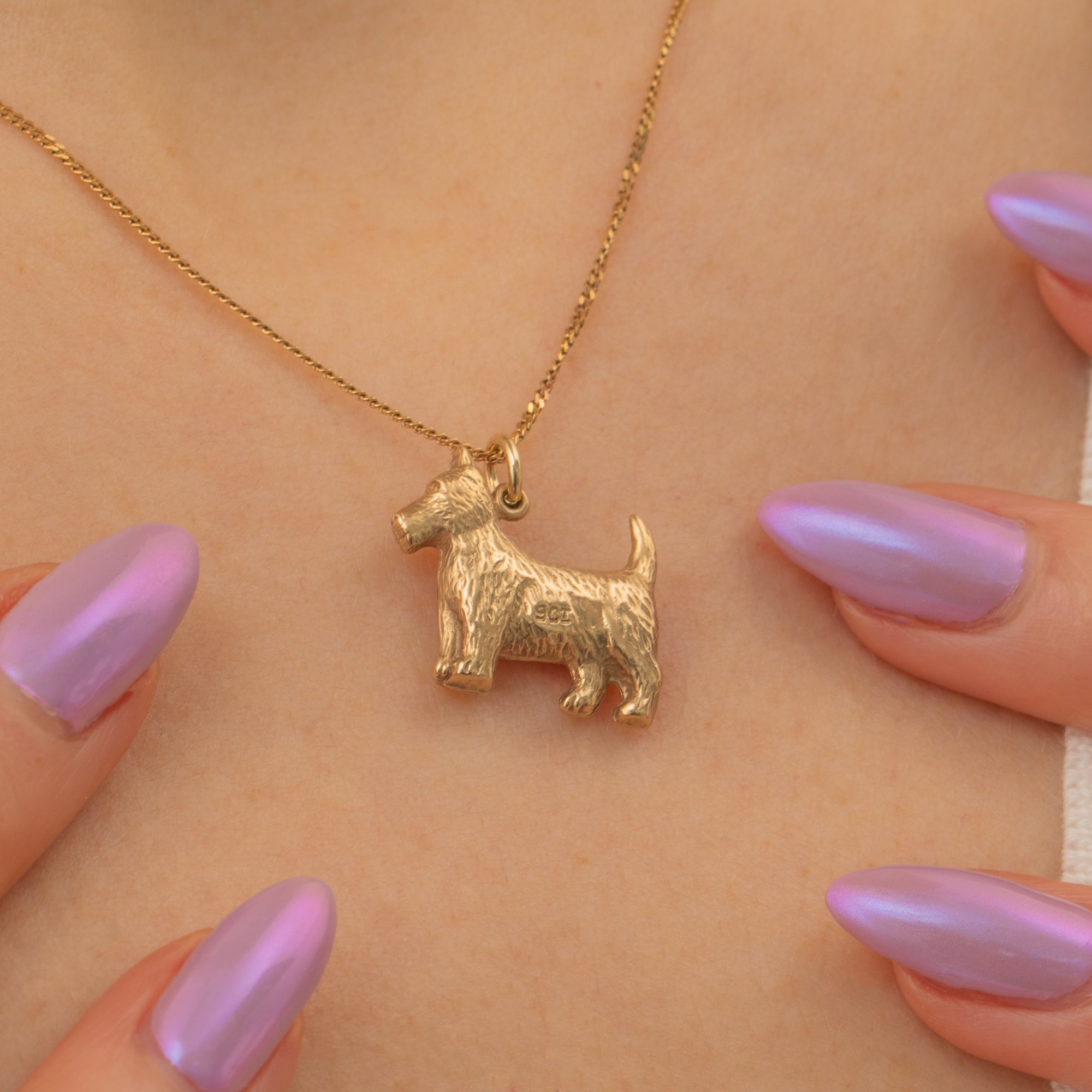 A vintage mid-century charm like this is sure to make tails wag and hearts flutter; whether you're a lover of dogs or a fan of novelty animal Gold charms, she will take pride of place as the newest addition to your jewellery box!