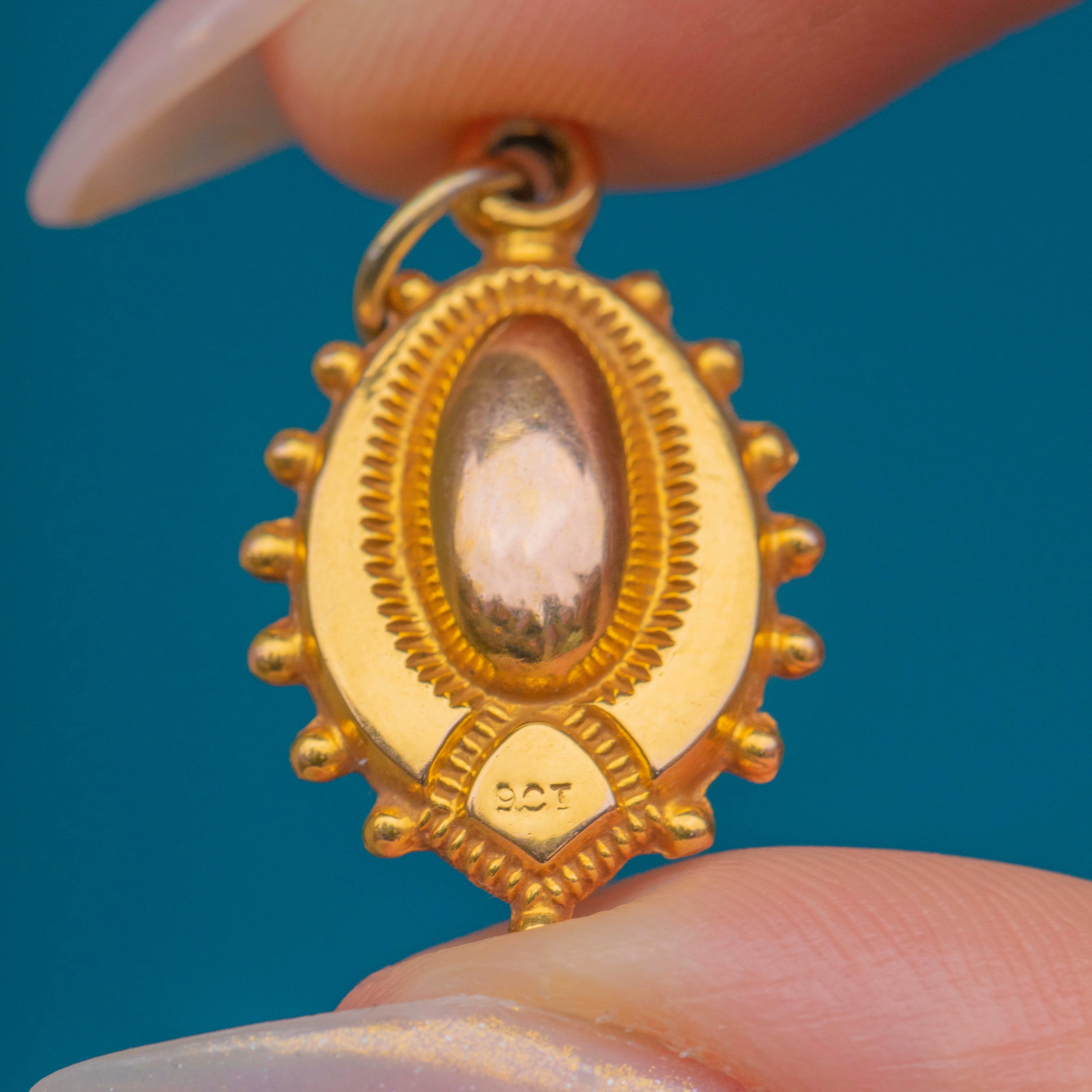 This delicate Victorian Aesthetic charm pendant is crafted in 9ct Gold and enhanced with 15ct gilding for a warm, radiant golden finish!