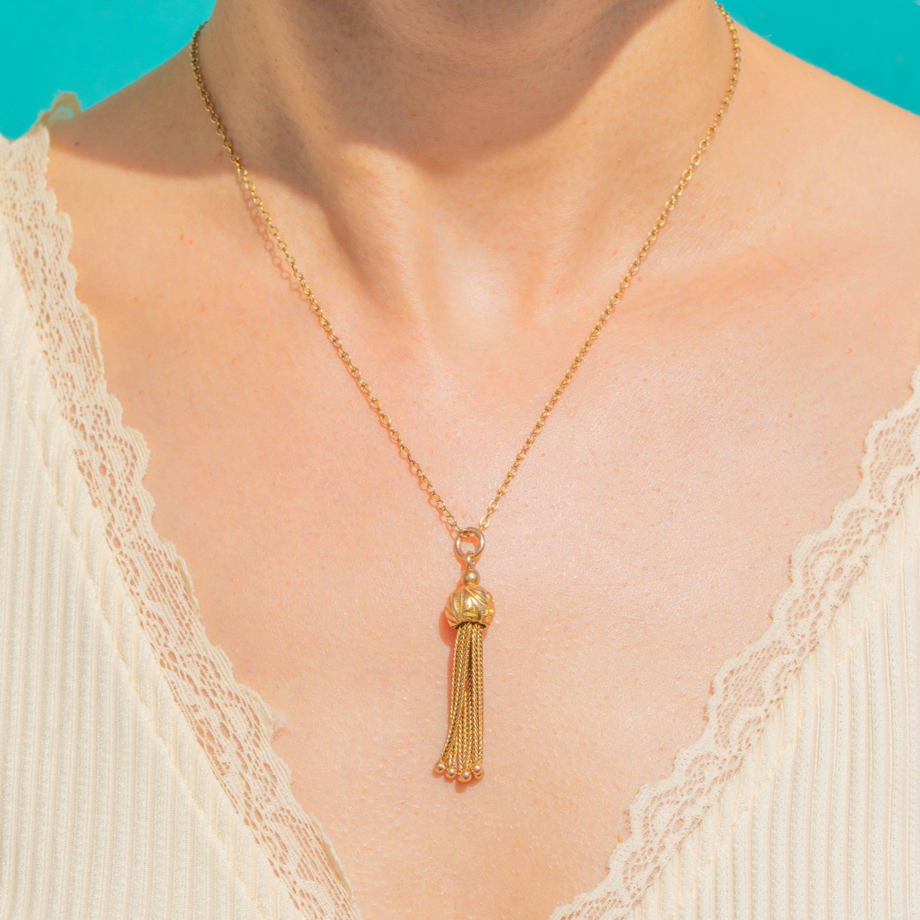 Delicate yet refined, the articulated tassel sways beautifully and glows with a warm antique patina. A neat jump ring completes the design, ready to slip onto your favourite chain.