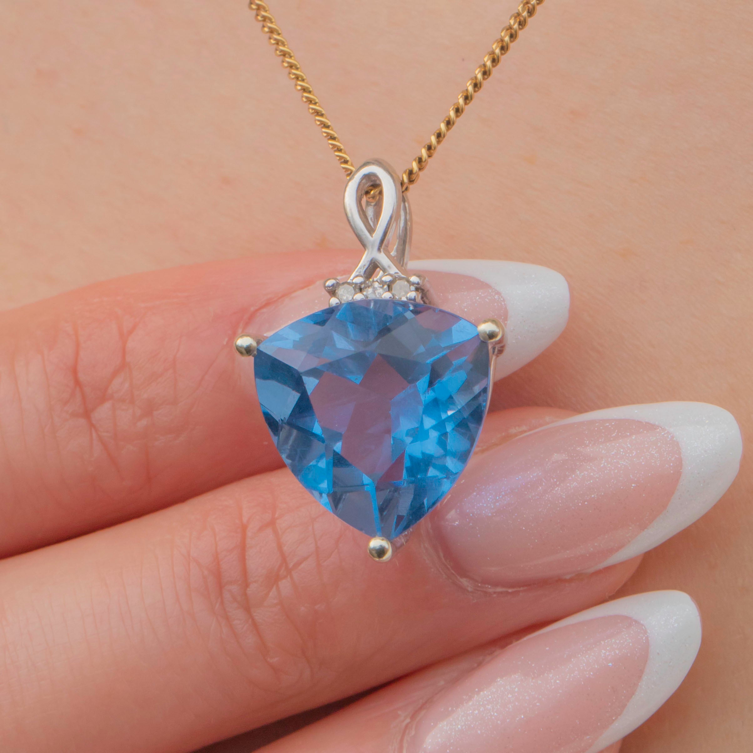 VERY GOOD-EXCELLENT: This 9ct Gold blue Spinel pendant is in wonderful condition. The Diamonds and Spinel are radiant, with only a couple of small fleabites that are difficult to spot without a jeweller's loupe. Secure in her glossy 9ct white Gold settings and with a secure bale, you can wear this pendant with confidence!