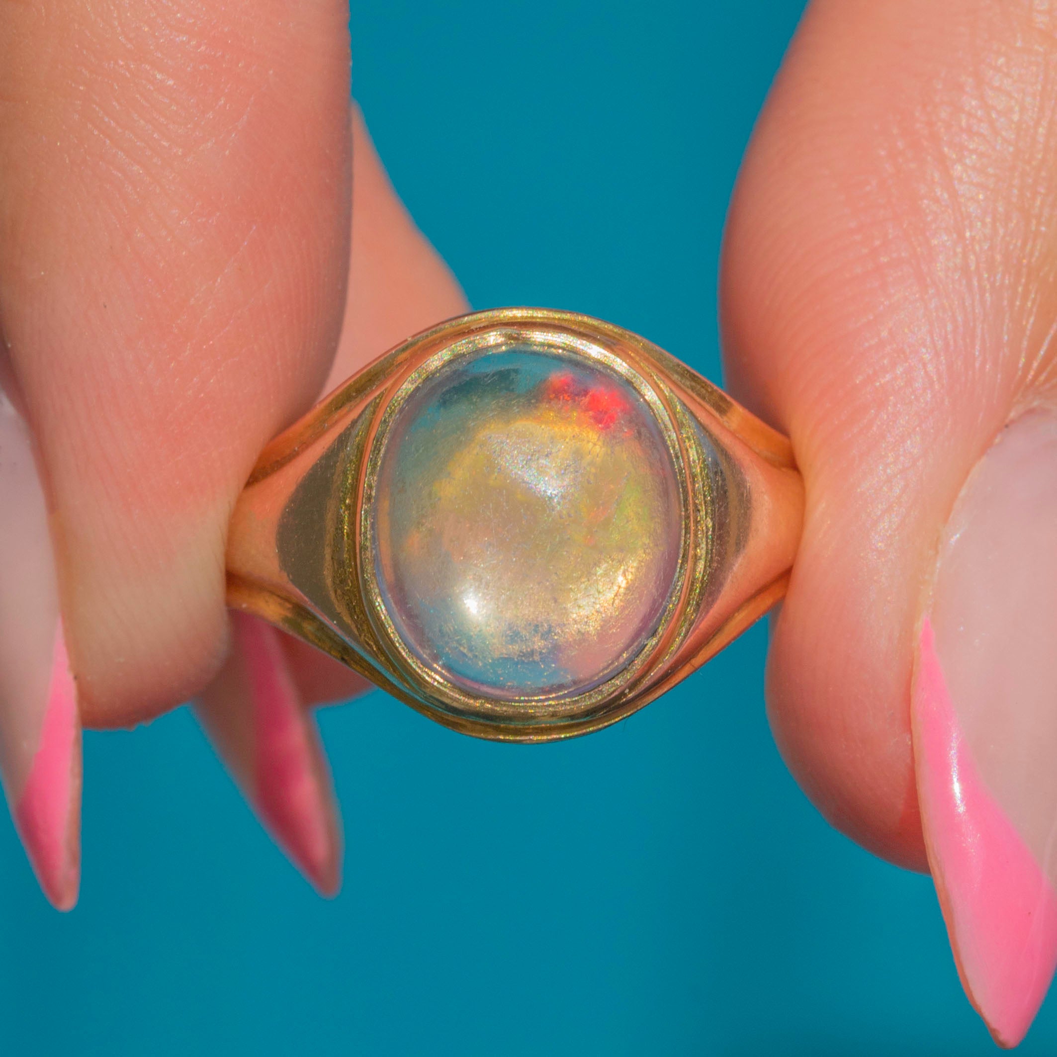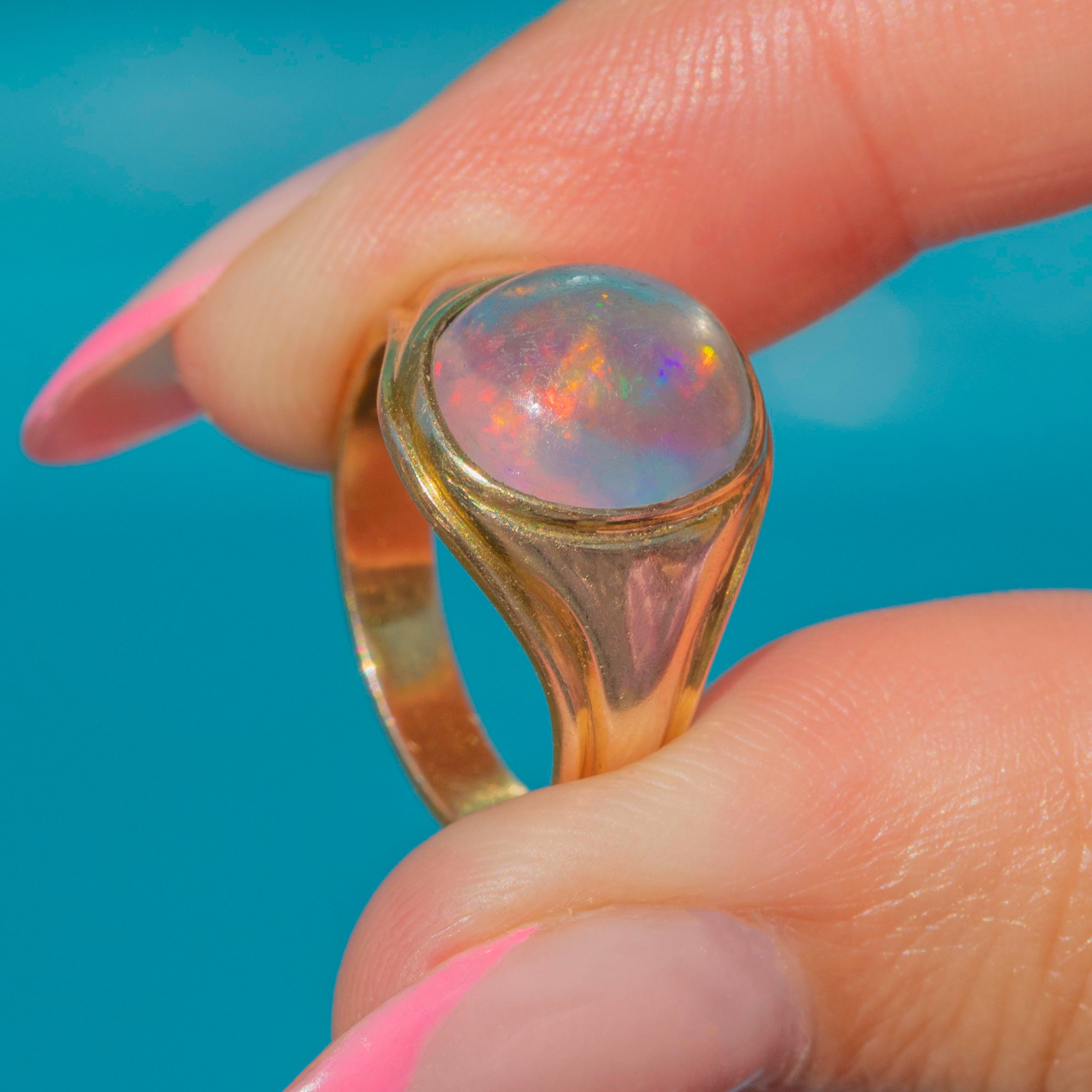 A mesmerising antique 14ct Gold Crystal Opal signet ring to be displayed proudly on your finger!