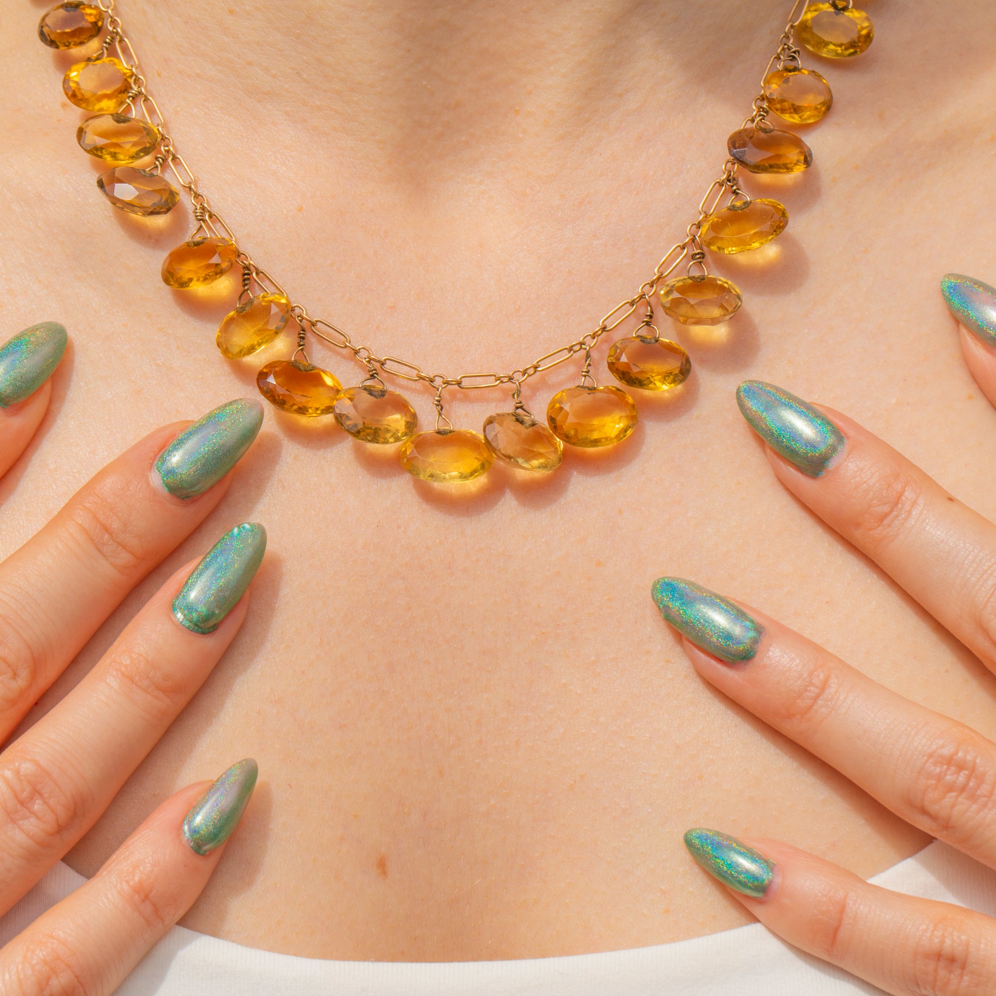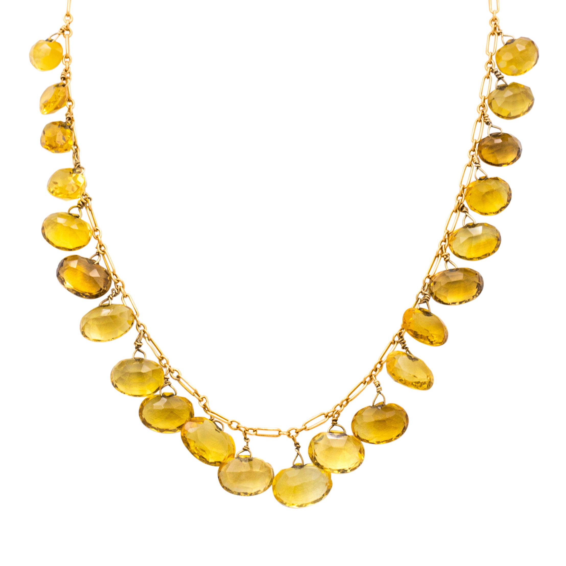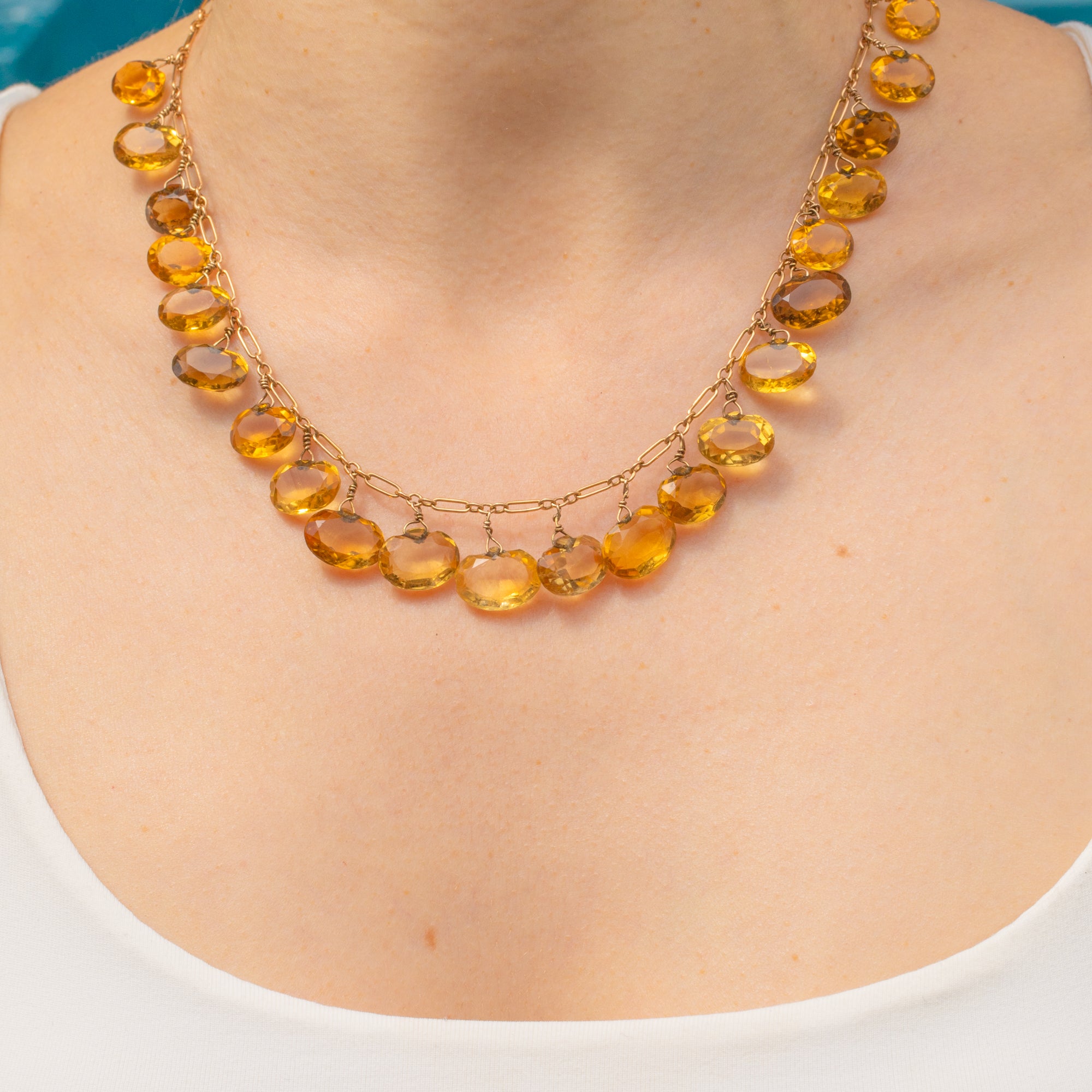 Antique 15ct Gold Citrine Fringe Necklace, 60.64ct
