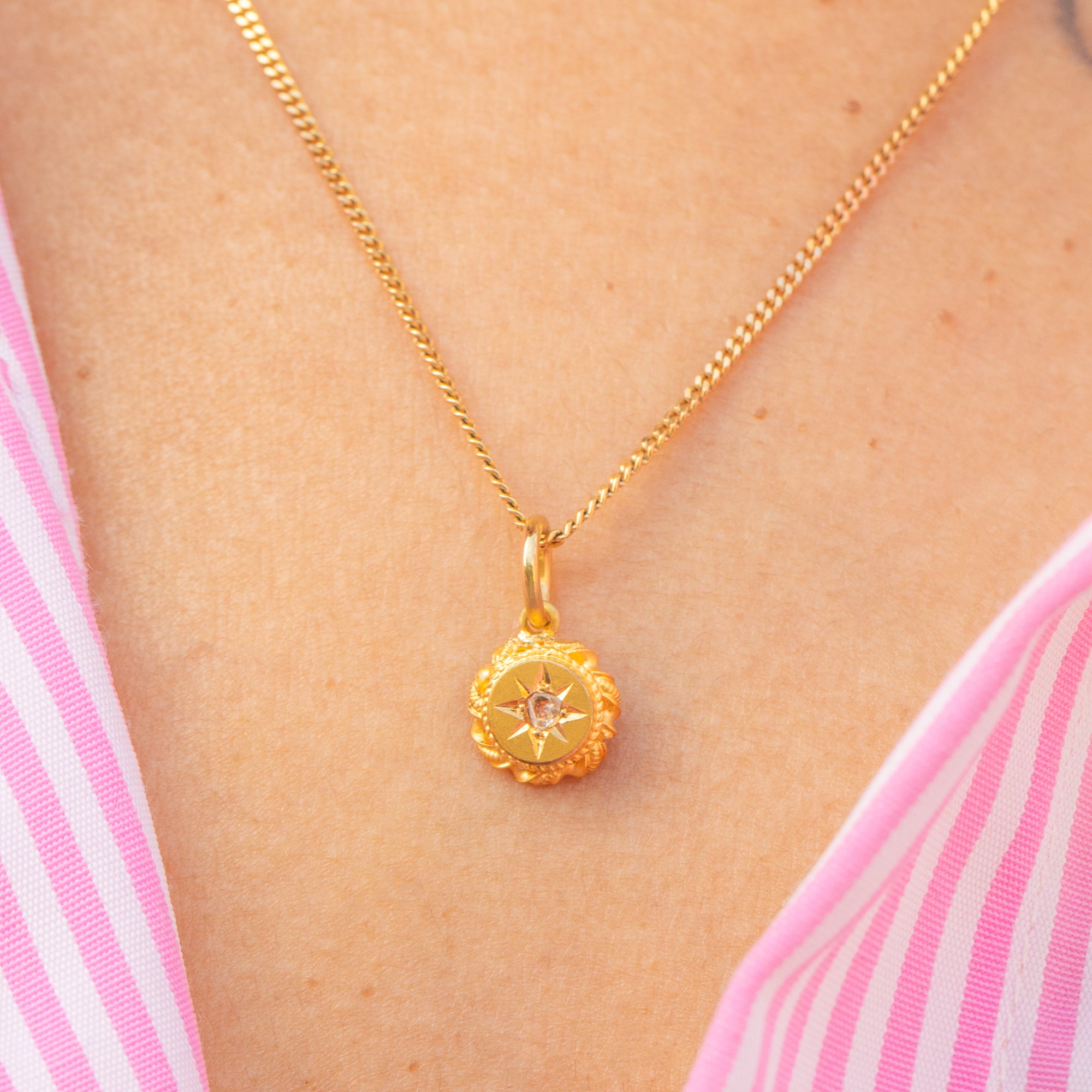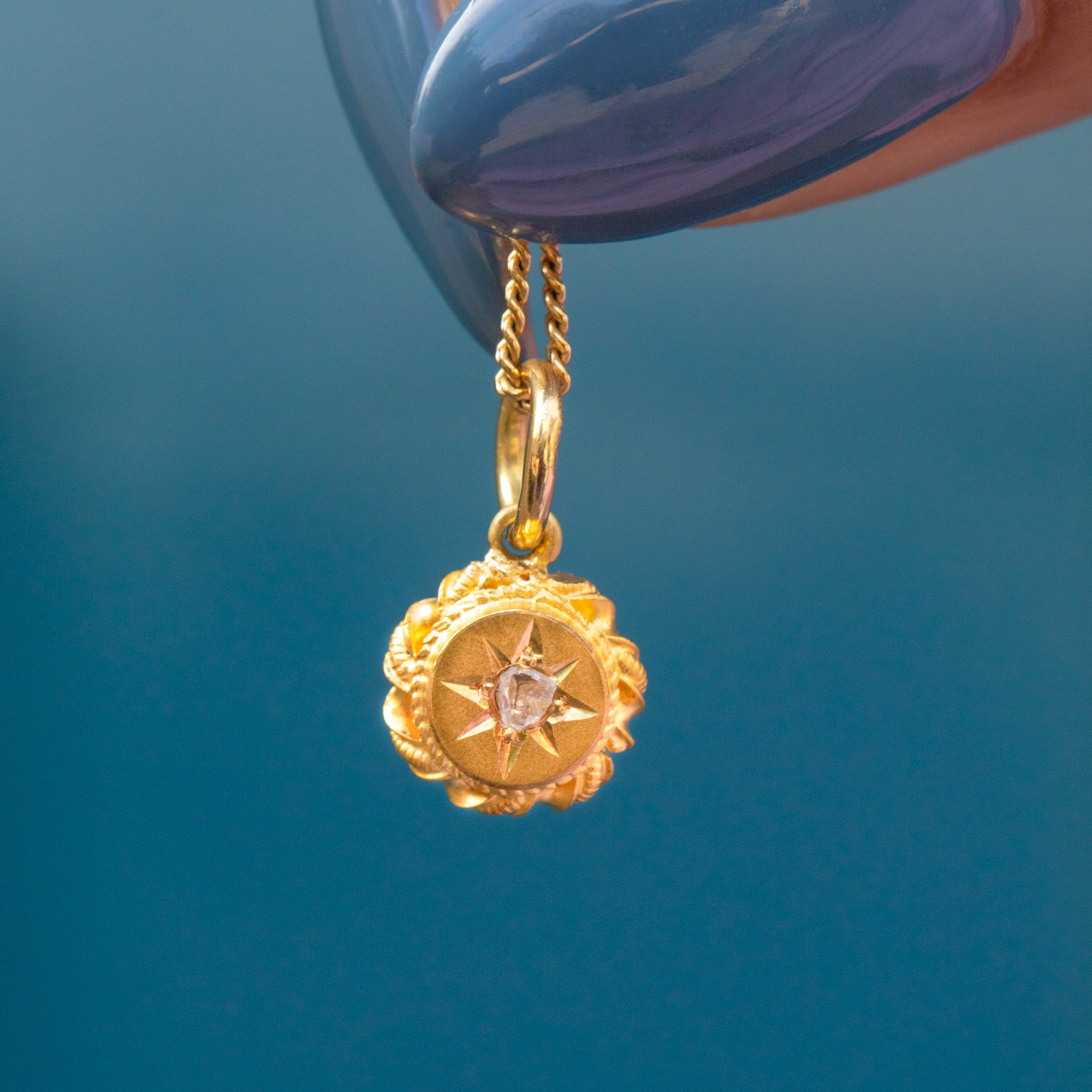 We adore this antique 15ct Gold Diamond charm! With a sparkly Diamond at its centre that's too good to resist, this Victorian pendant will feel right at home in your jewellery box.