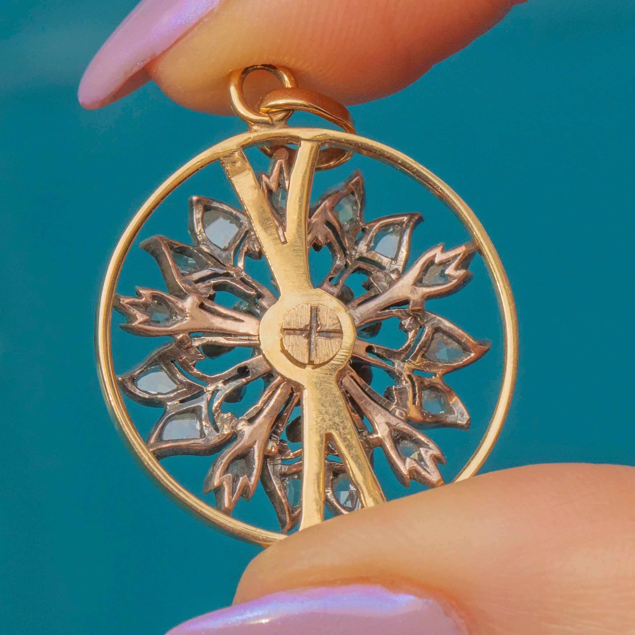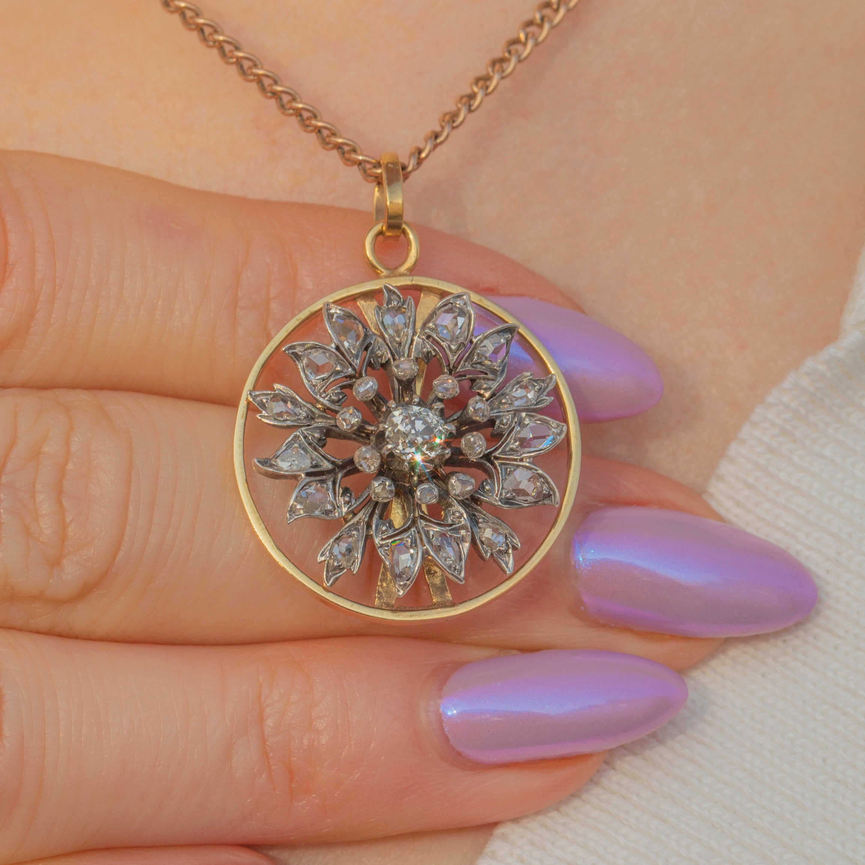 Antique 15ct Gold Diamond Flower Pendant, 0.85ct