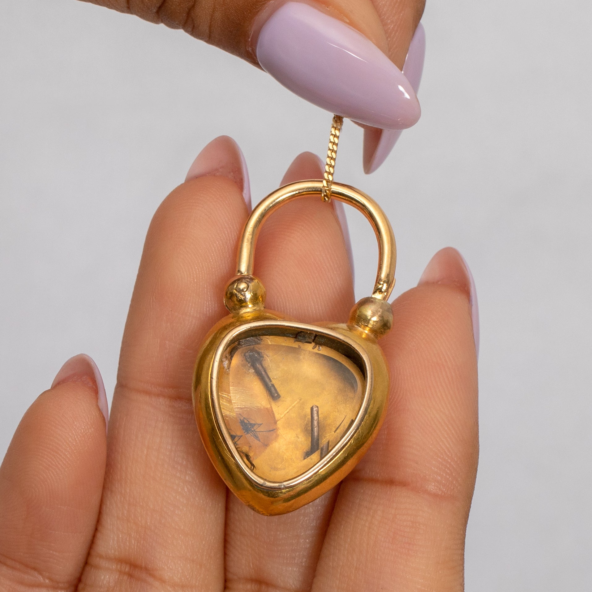 The back of this romantic padlock has a locket compartment, in which you can place a photo, gemstones, or a dainty trinket. The top of this rare heart padlock is still perfectly functioning, allowing you to secure it onto a dog-clip or Gold chain for a stylish finish. It's rare to find a treasure quite like this, complete with a gemstone encrusted front, and with its timeless charm and beauty this antique padlock pendant will surely become a prized possession in your collection!