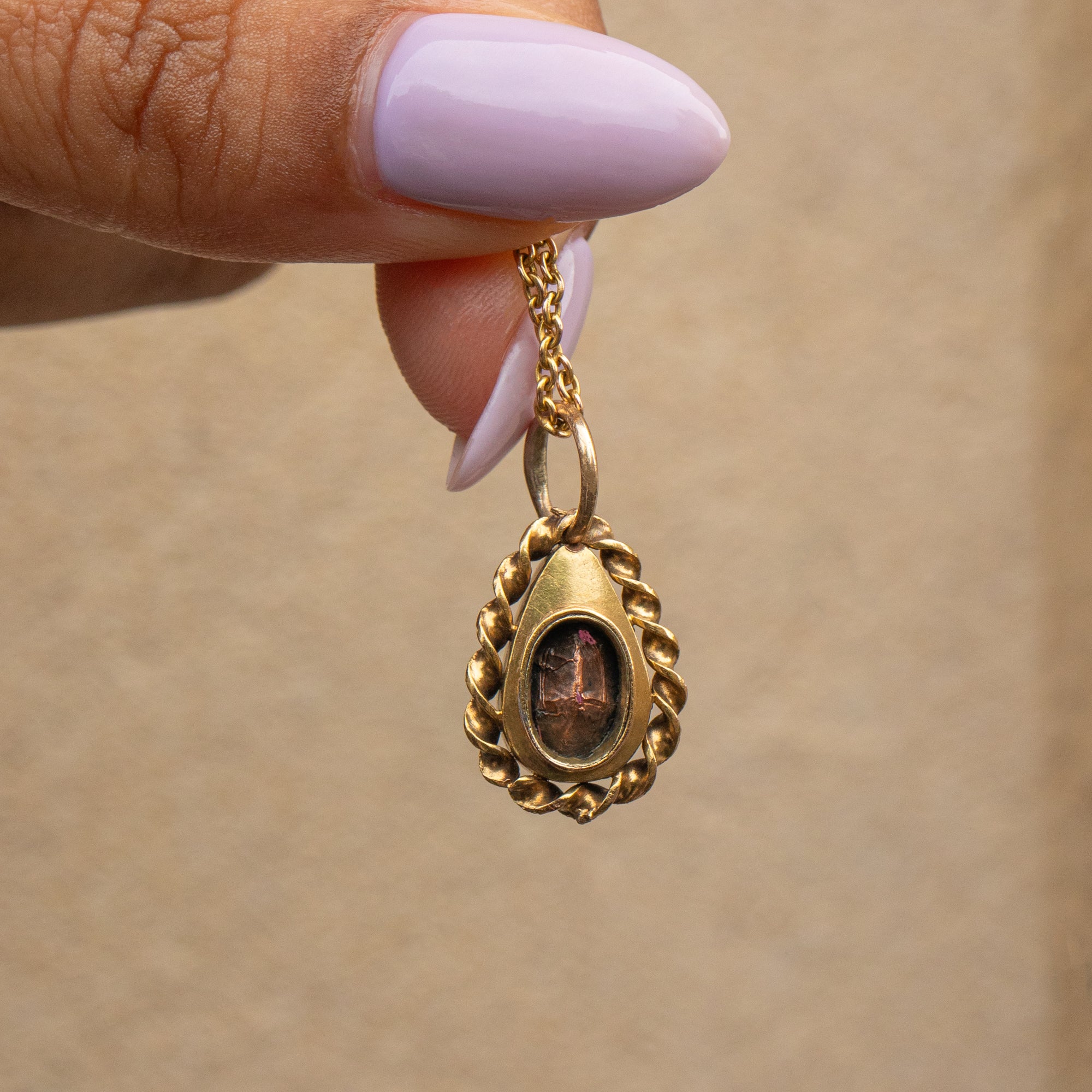 The warm tones of the 18ct Gold provide the perfect backdrop for the vibrant Granet, finished with a detailed rope border for a regal touch. Whether worn as a standalone piece or paired with other treasures from your collection, this Georgian pendant will command attention wherever you go!