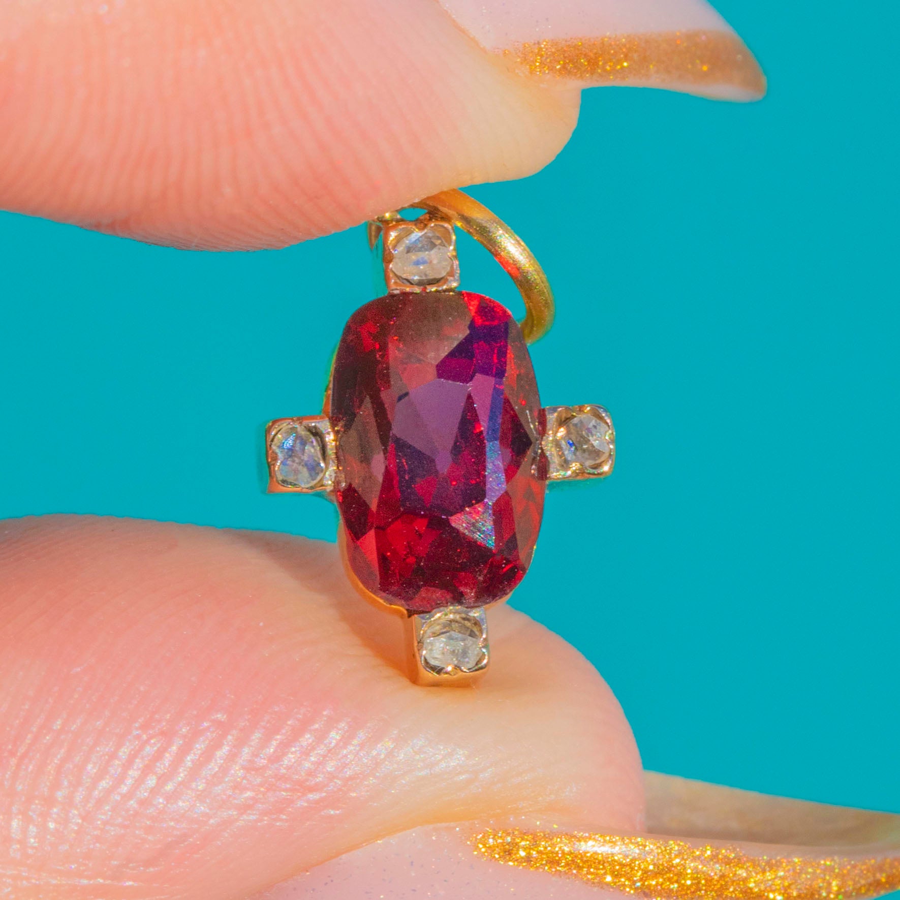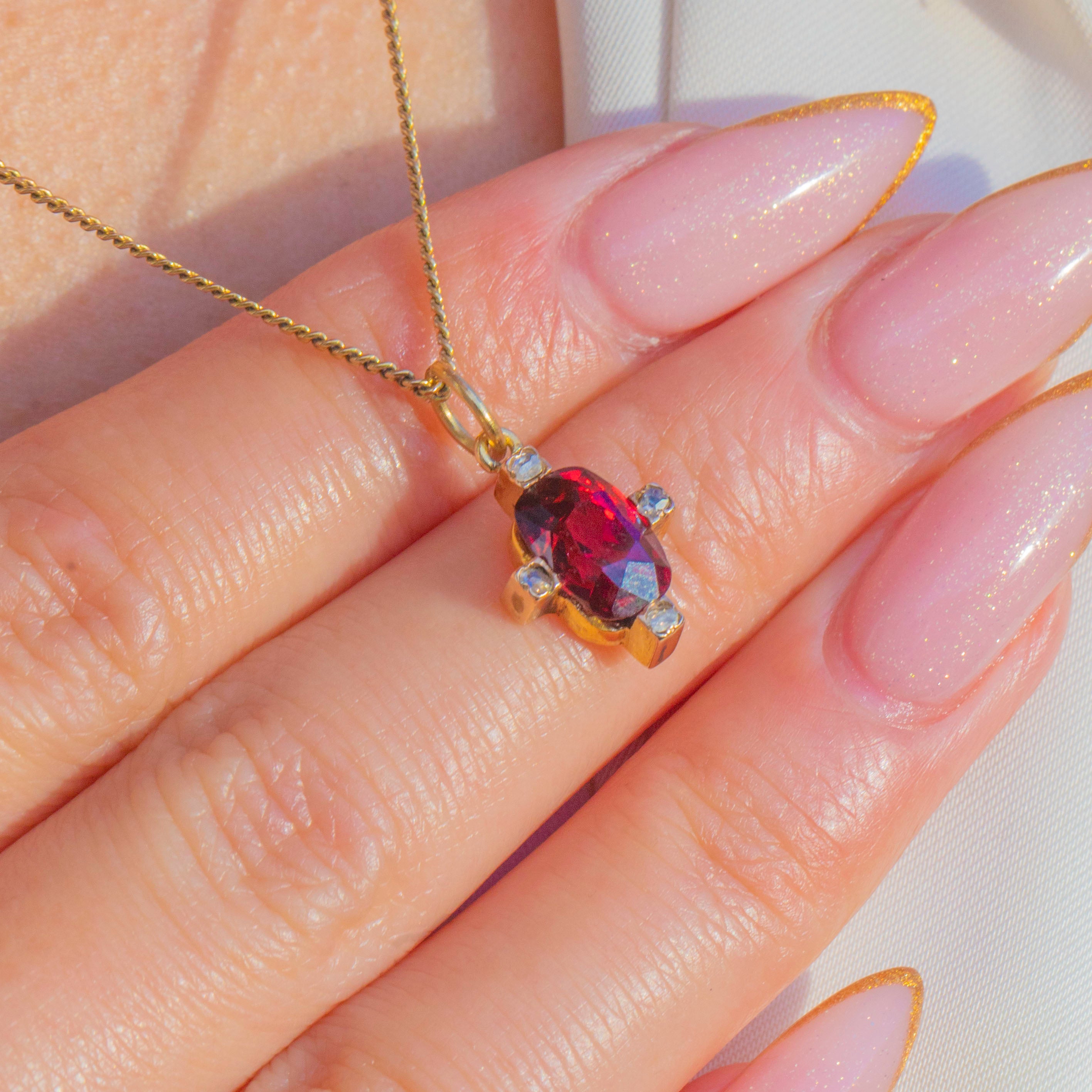 The claret-red Garnet and bright Diamonds give it that unmistakable Victorian elegance in miniature form.