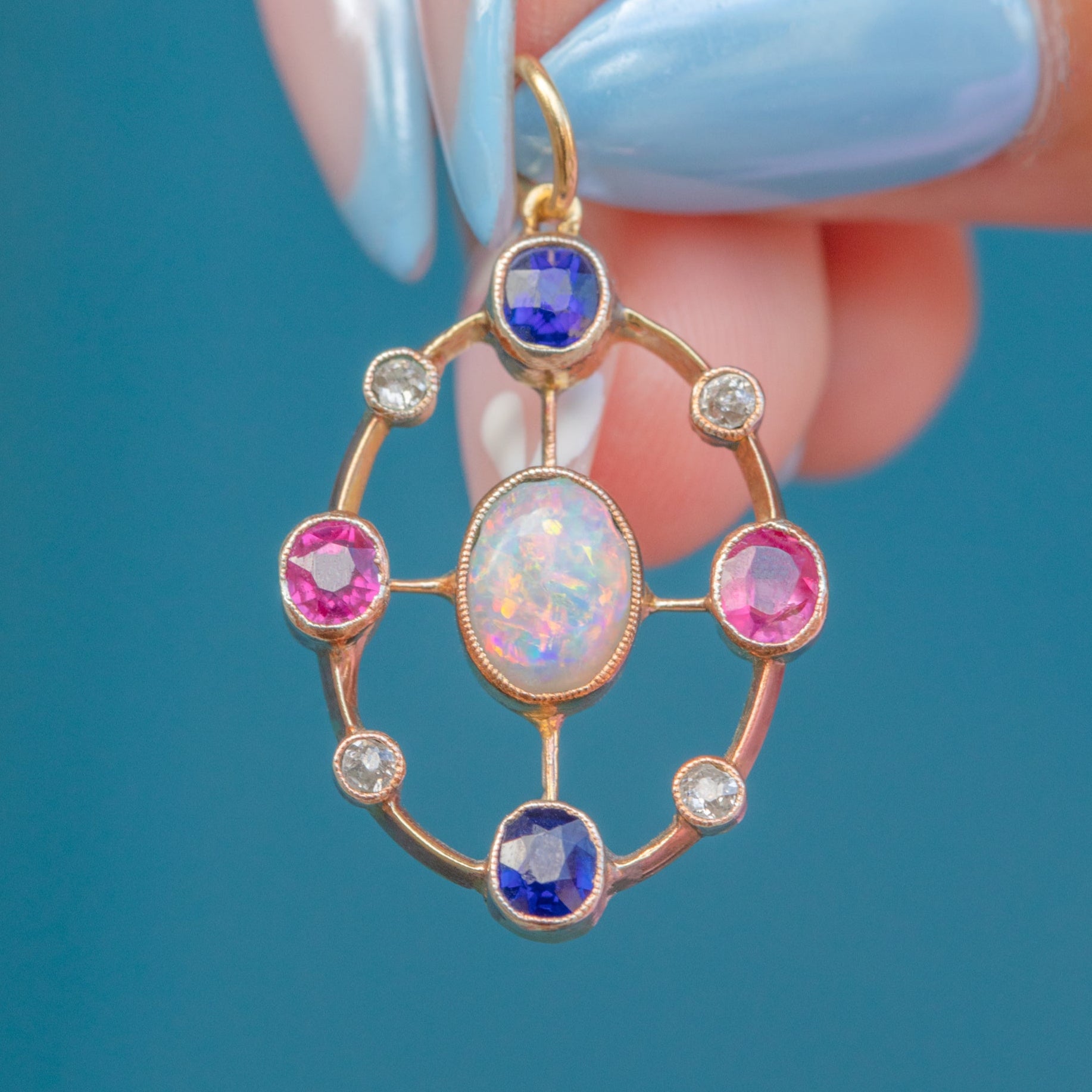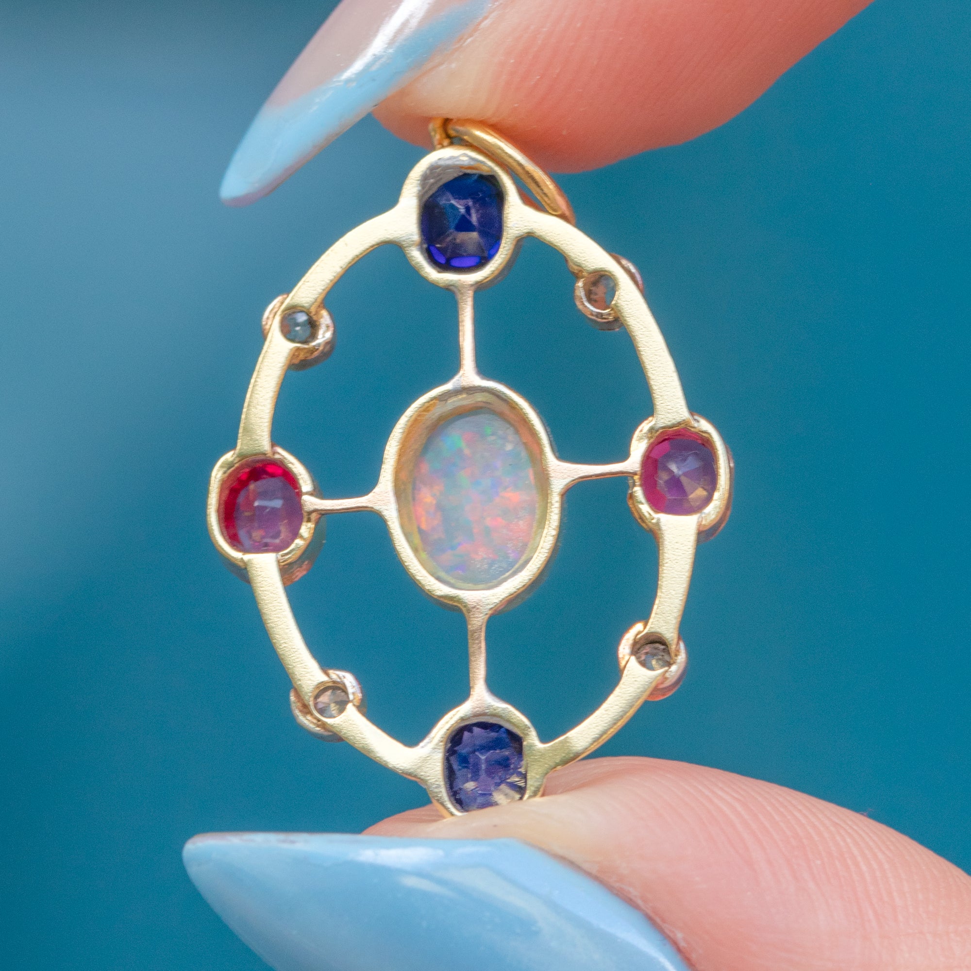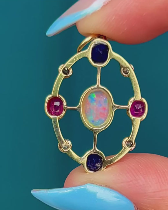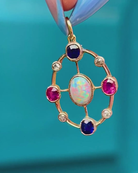 Antique 15ct Gold Opal Ruby Sapphire Pendant