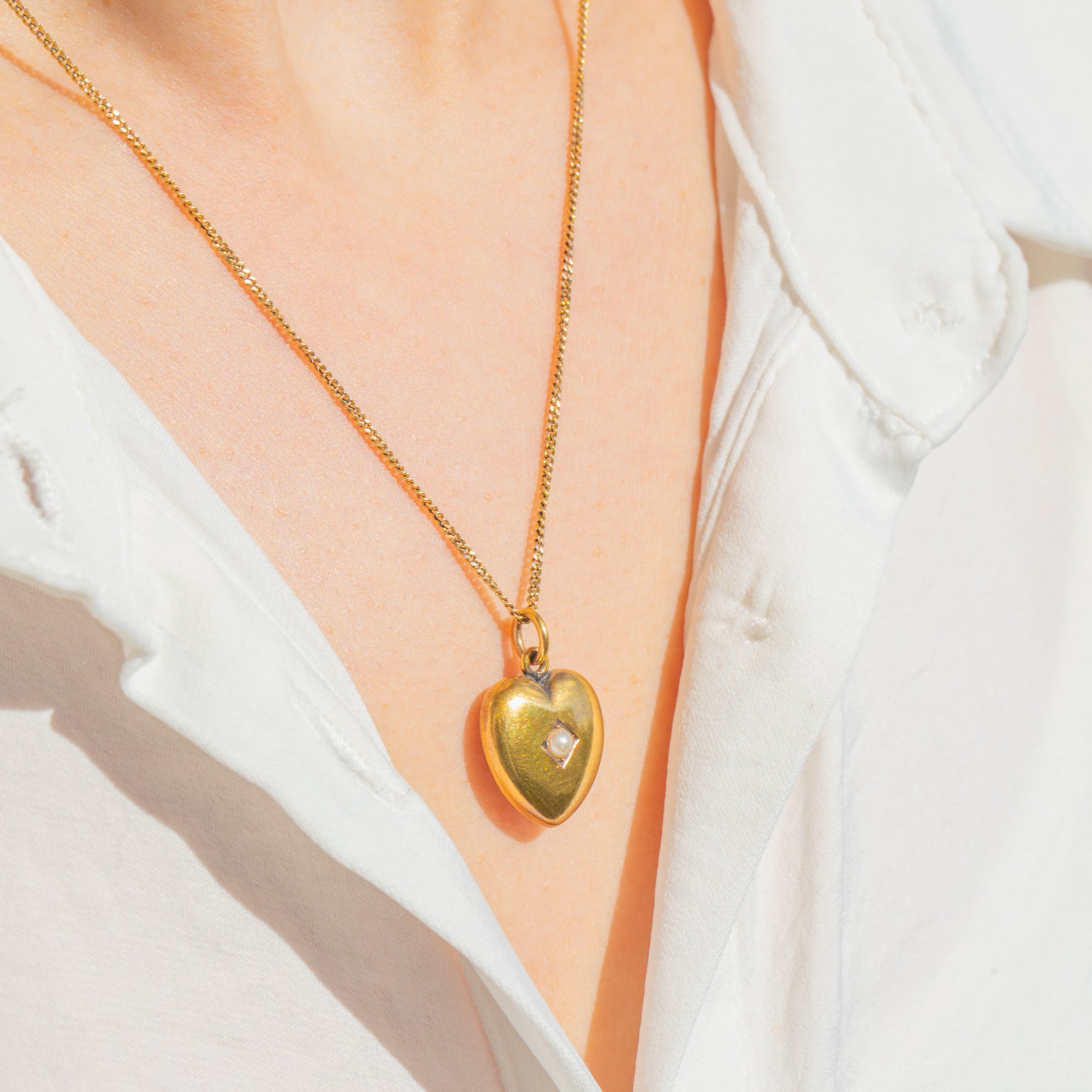 Sweetly sentimental and endlessly wearable, this Victorian puffy heart pendant is crafted in glowing 15ct Gold and set with a dainty Seed Pearl at its centre. The softly domed silhouette catches the light beautifully, while a delicate lozenge setting frames the Pearl for a refined, romantic finish.