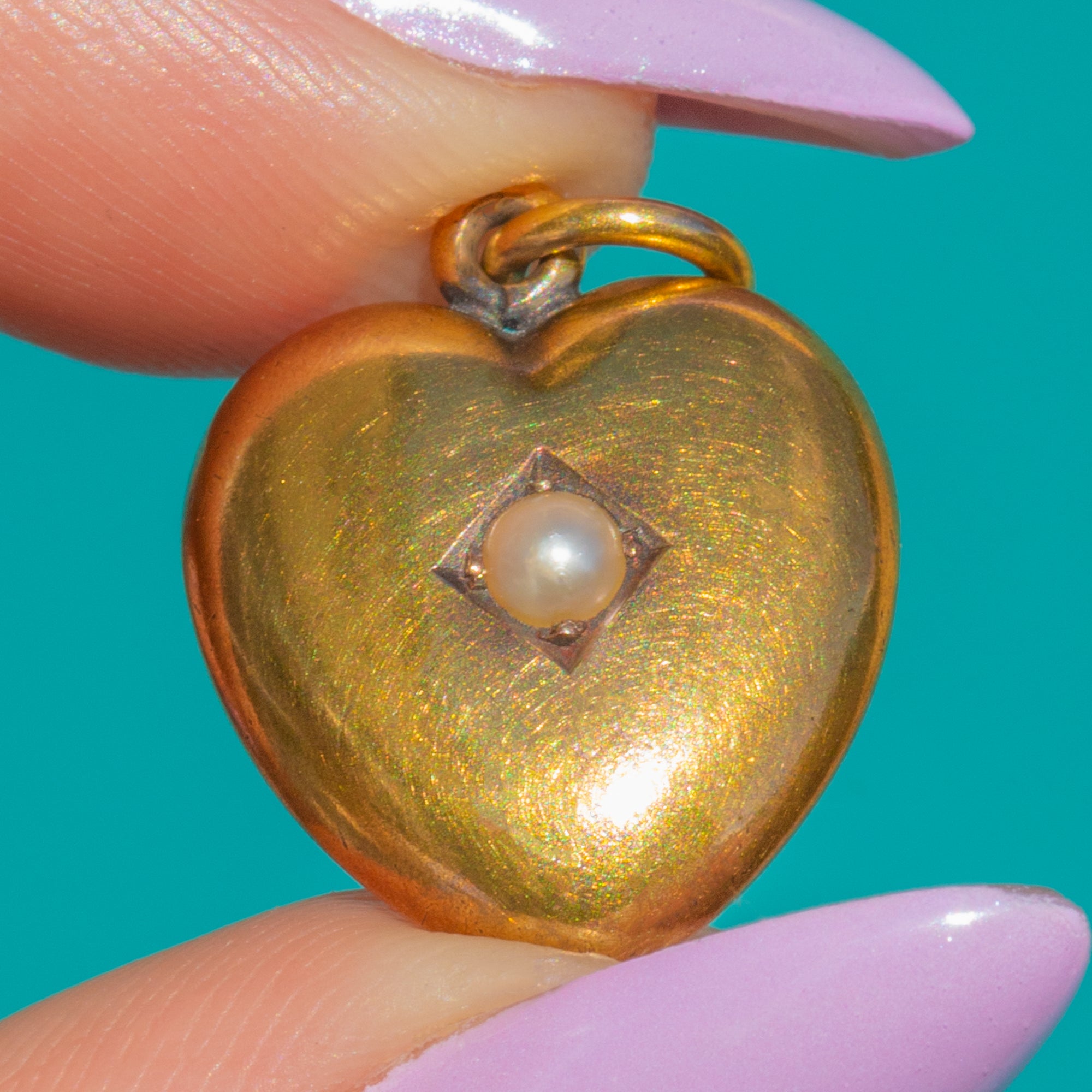Antique 15ct Gold Puffy Heart Pearl Pendant
