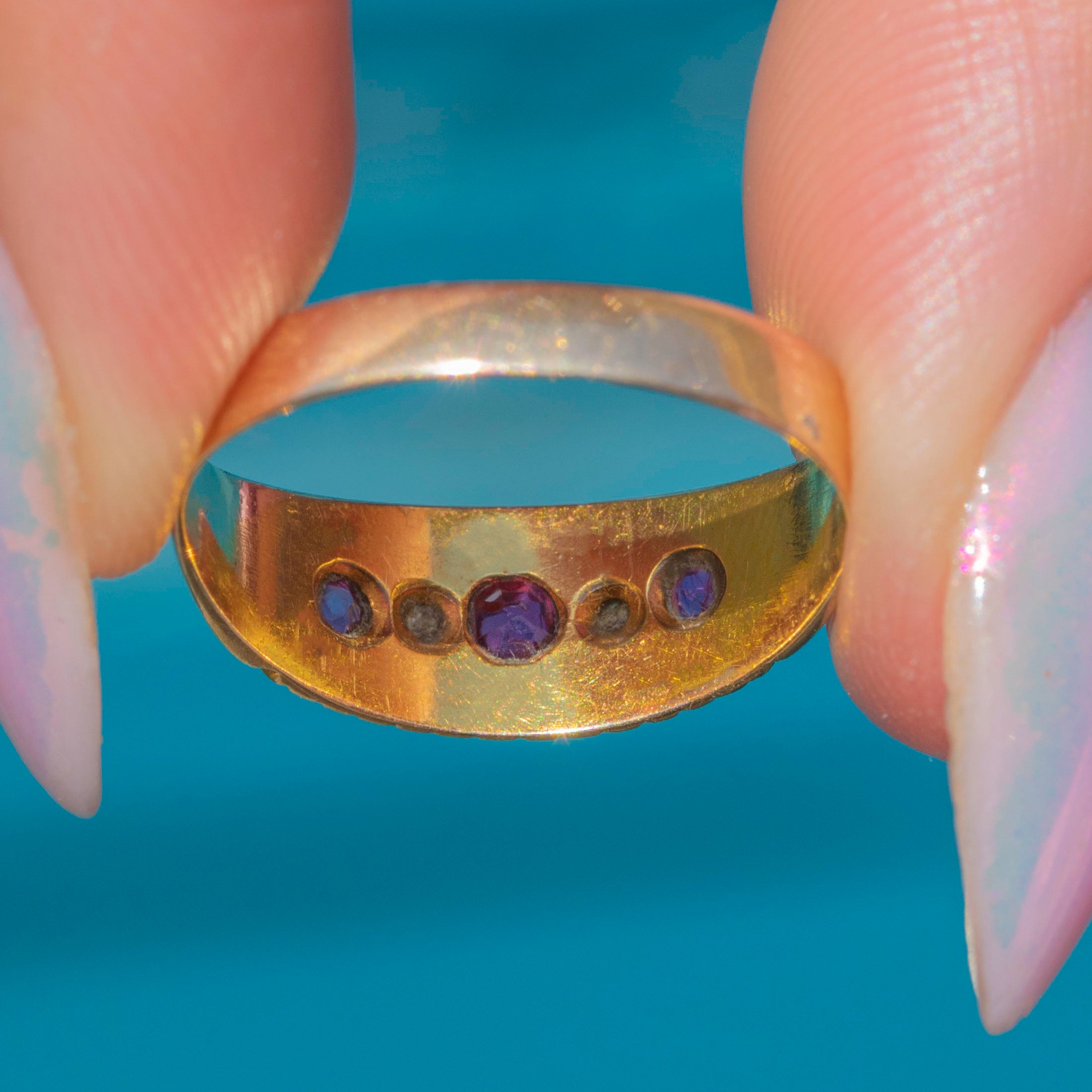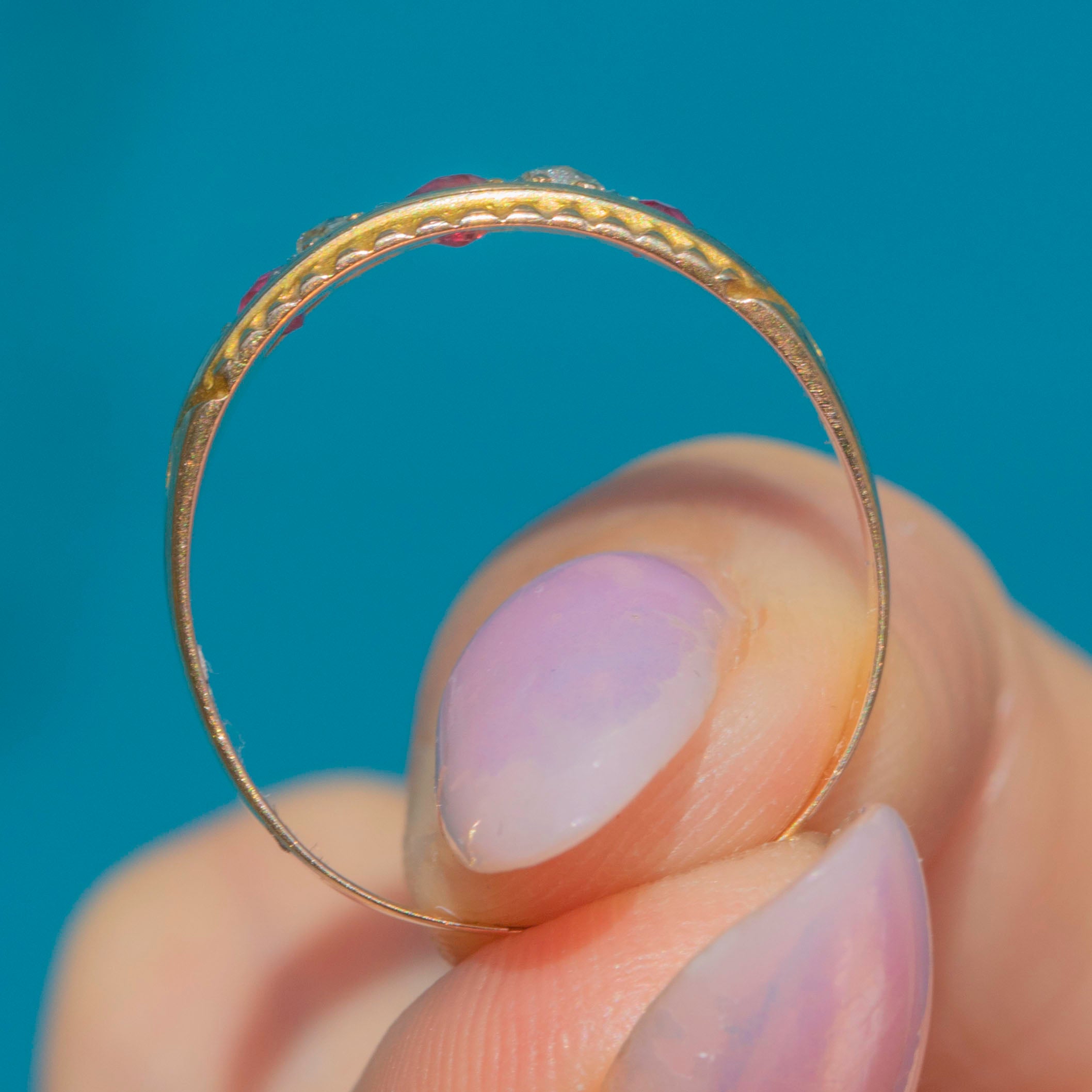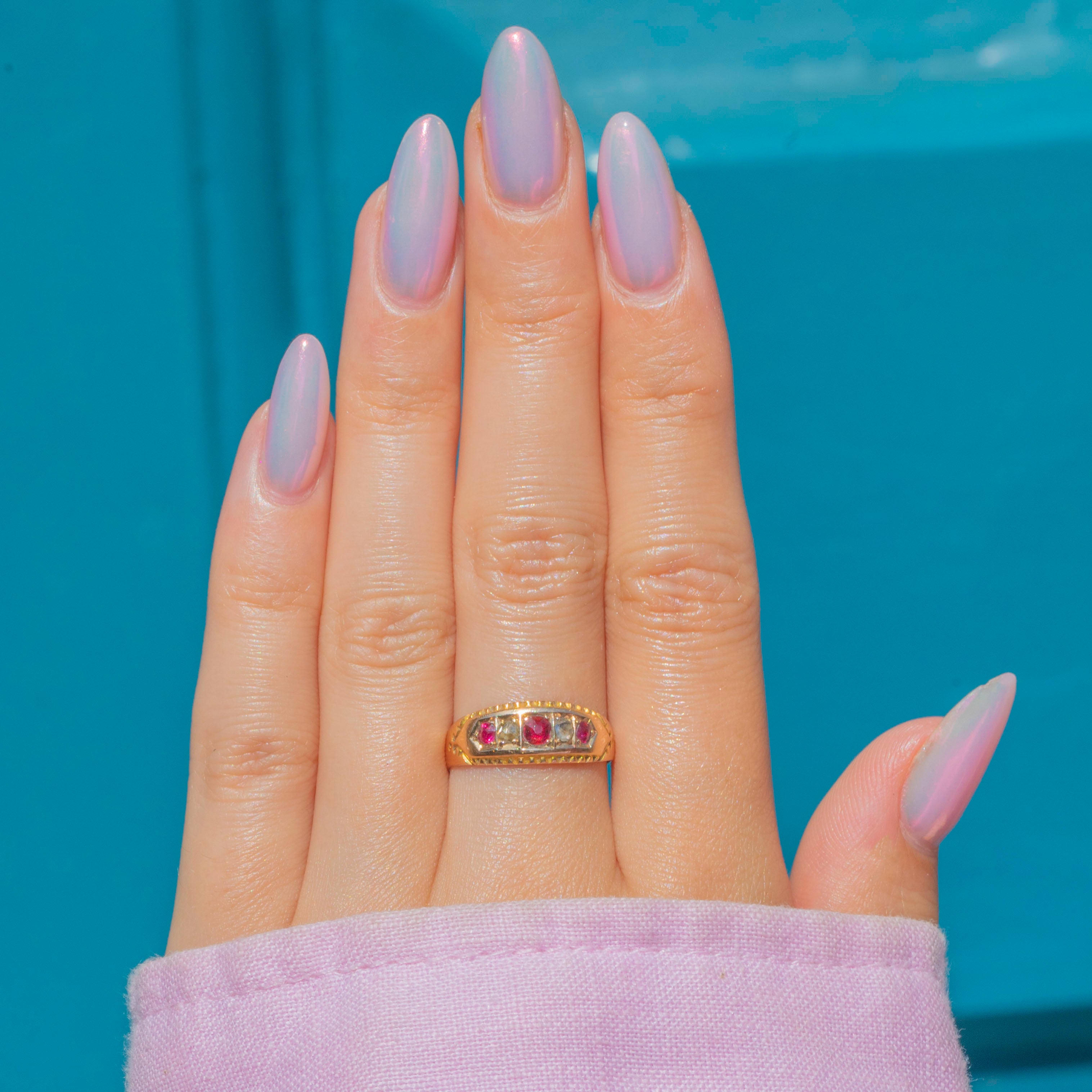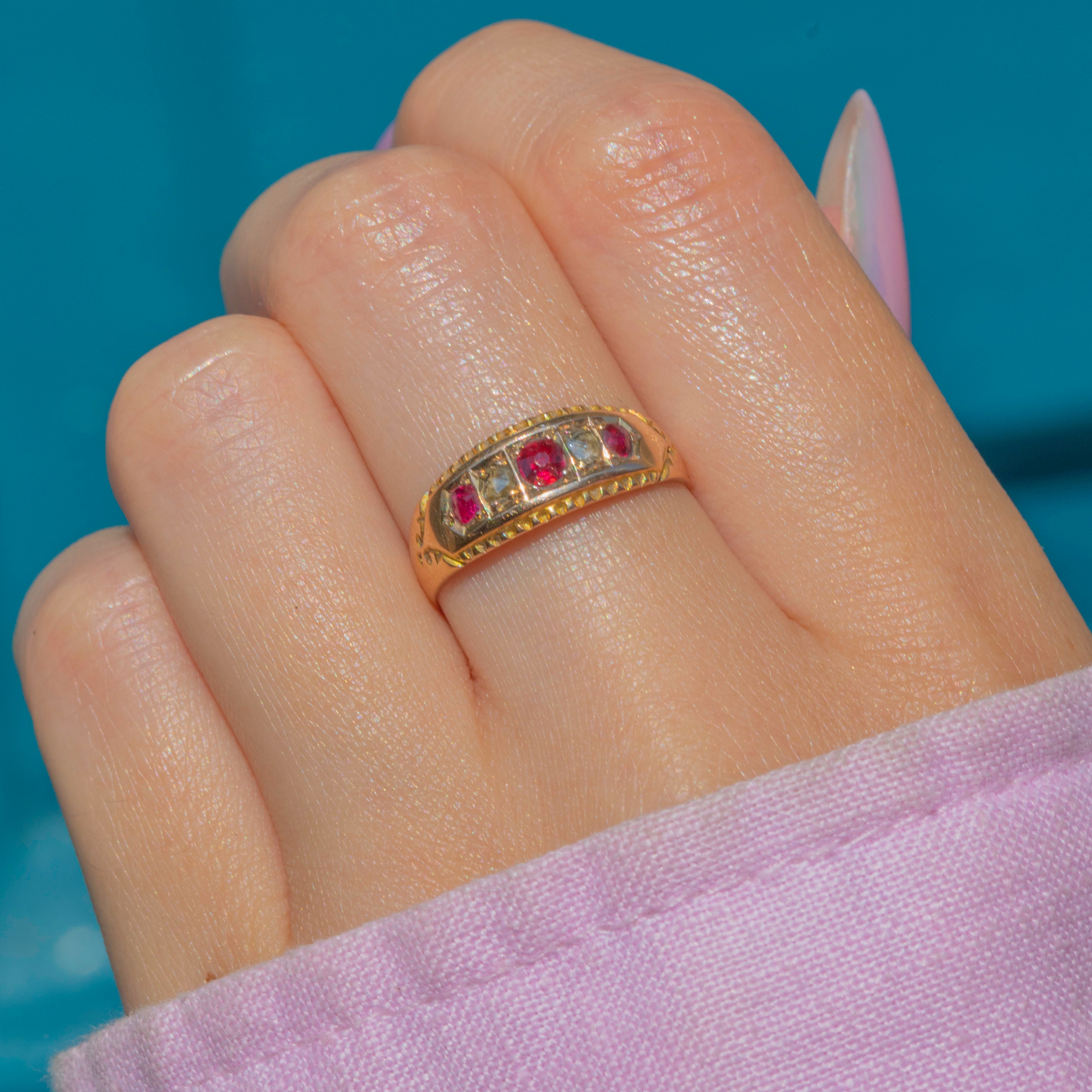 Antique 15ct Gold Ruby Diamond Five Stone Gypsy Ring