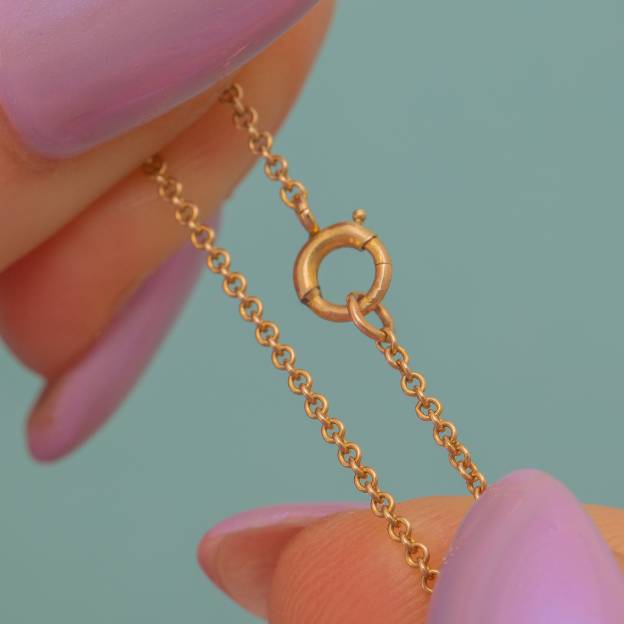 This 15ct Gold chain has a delicious golden hour tint that will look amazing around your neck, measuring 18" long, this skinny pendant chain can be worn alone or suspending a pendant. With endless wear potential, this Victorian Gold chain will make a versatile addition to your collection!