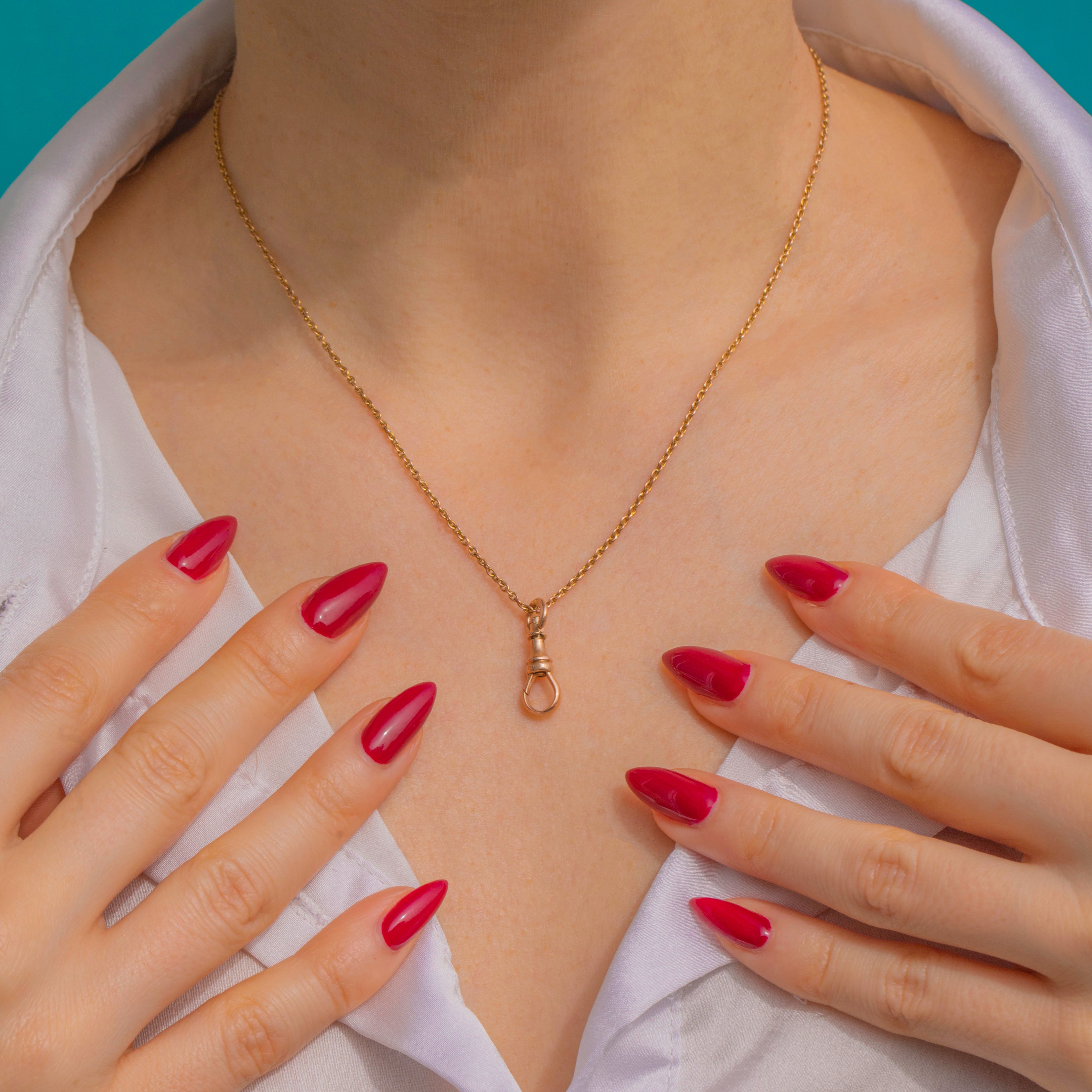 A petite Victorian swivel dog clip crafted in glowing 15ct Gold. Its baluster collar and turned detailing lend a refined, utilitarian elegance, while the working spring gate and rotating swivel ring offer both beauty and function.