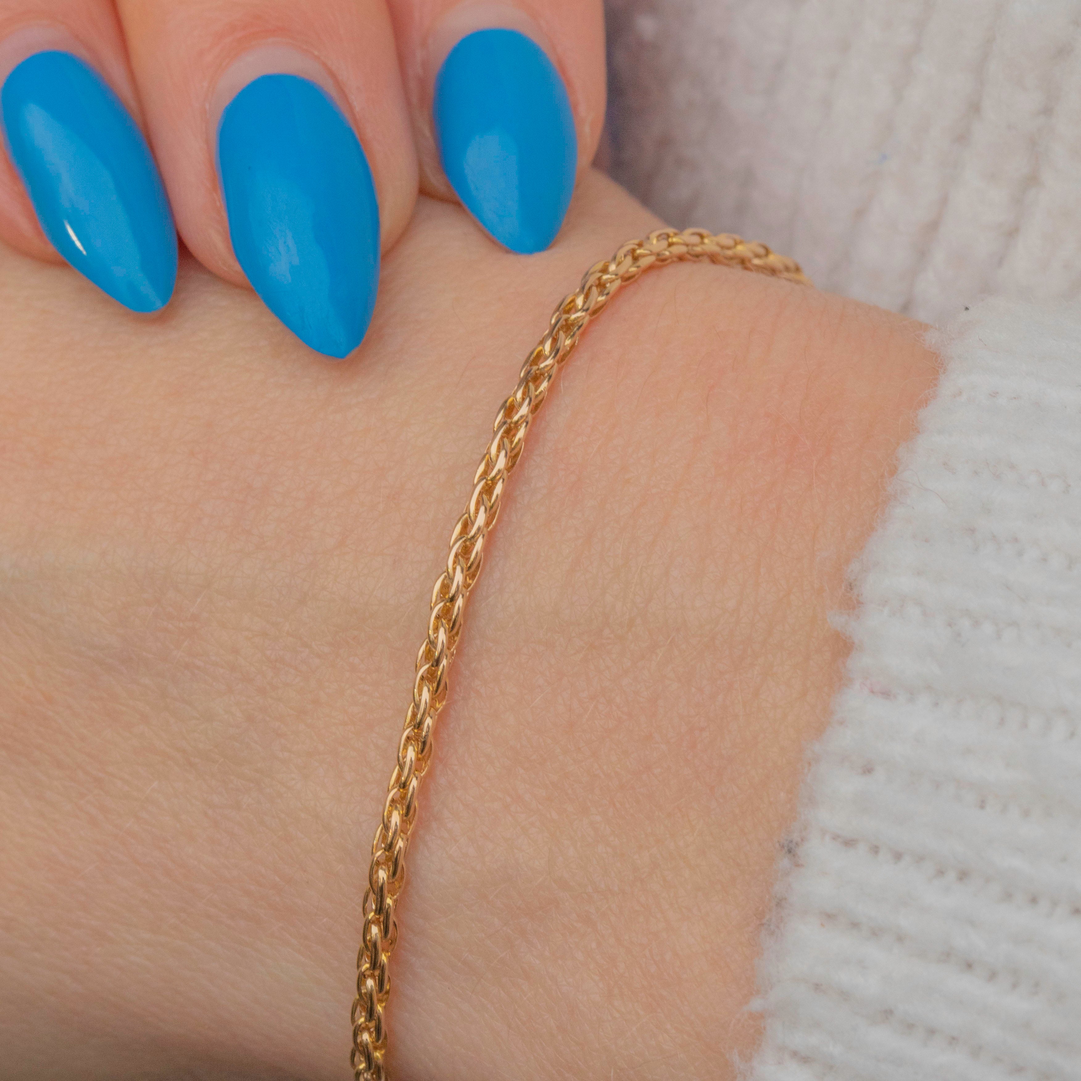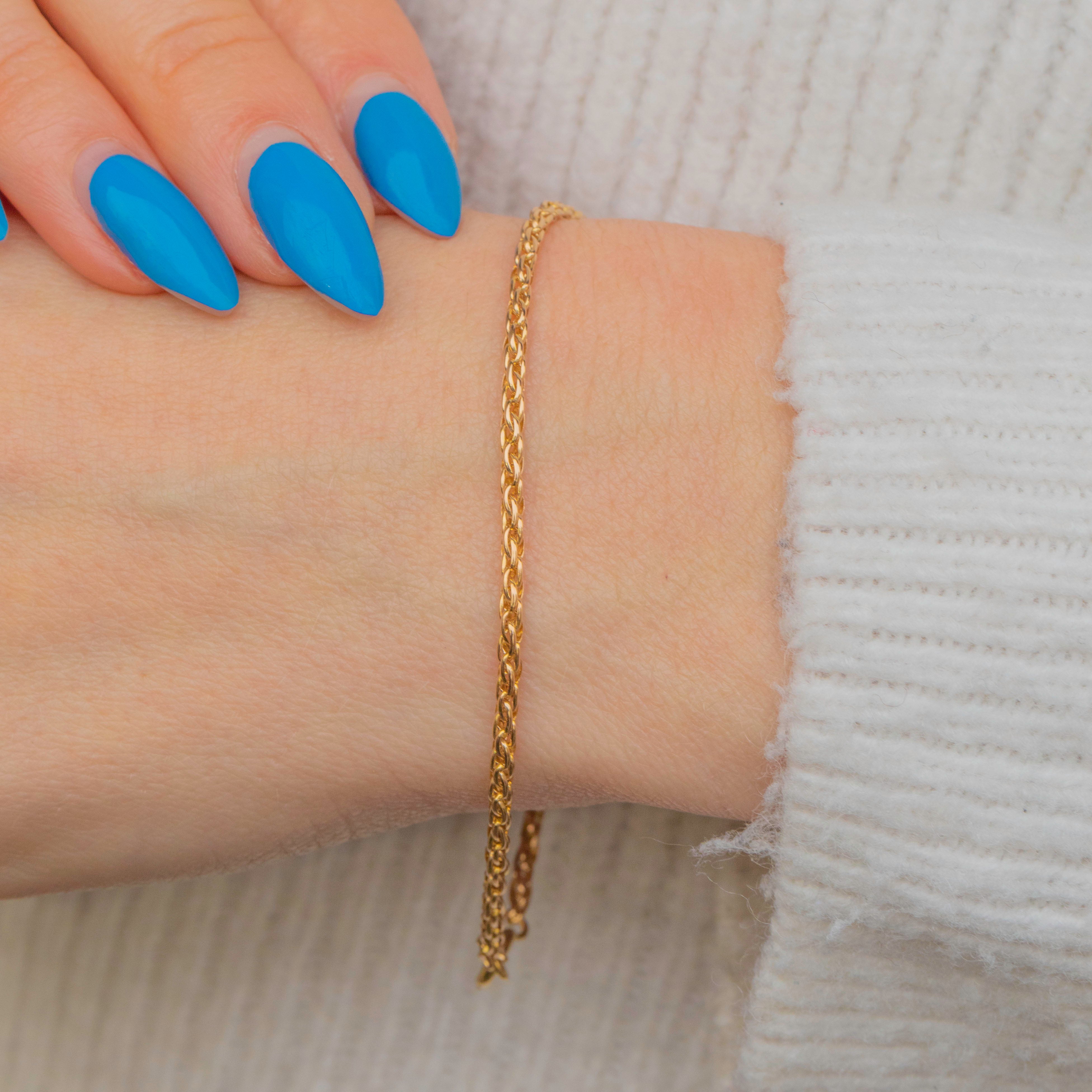 With plenty of styling opportunities, this Victorian Gold bracelet can be layered, have a charm affixed to its bolt-ring, or worn alone to add a subtle luxurious accent to your outfit.