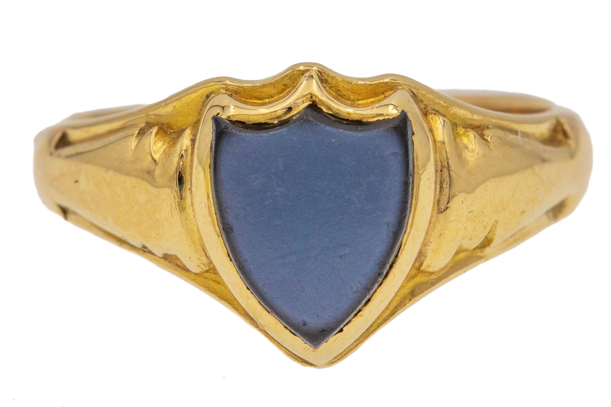 Antique 18ct Gold Agate Shield Signet Ring, 4.6g
