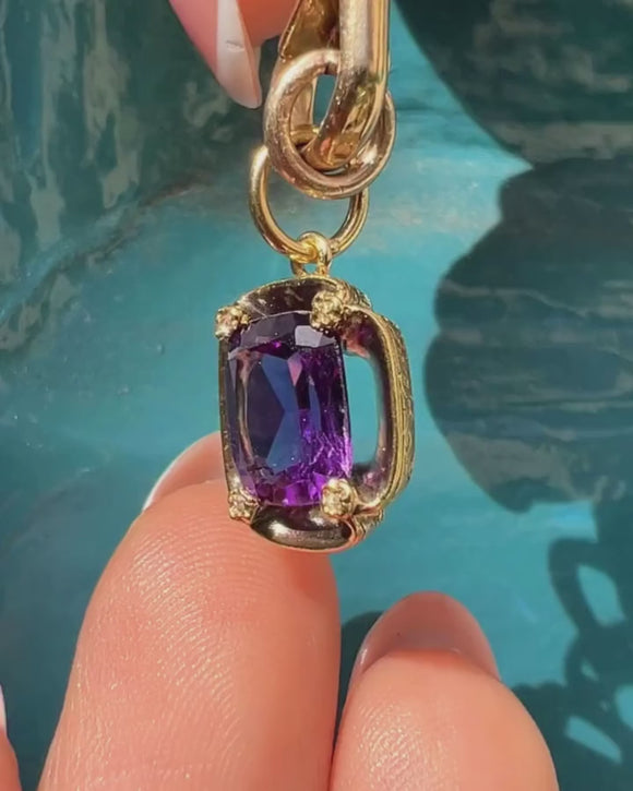 Antique 18ct Gold Amethyst Diamond Charm, 1.70ct