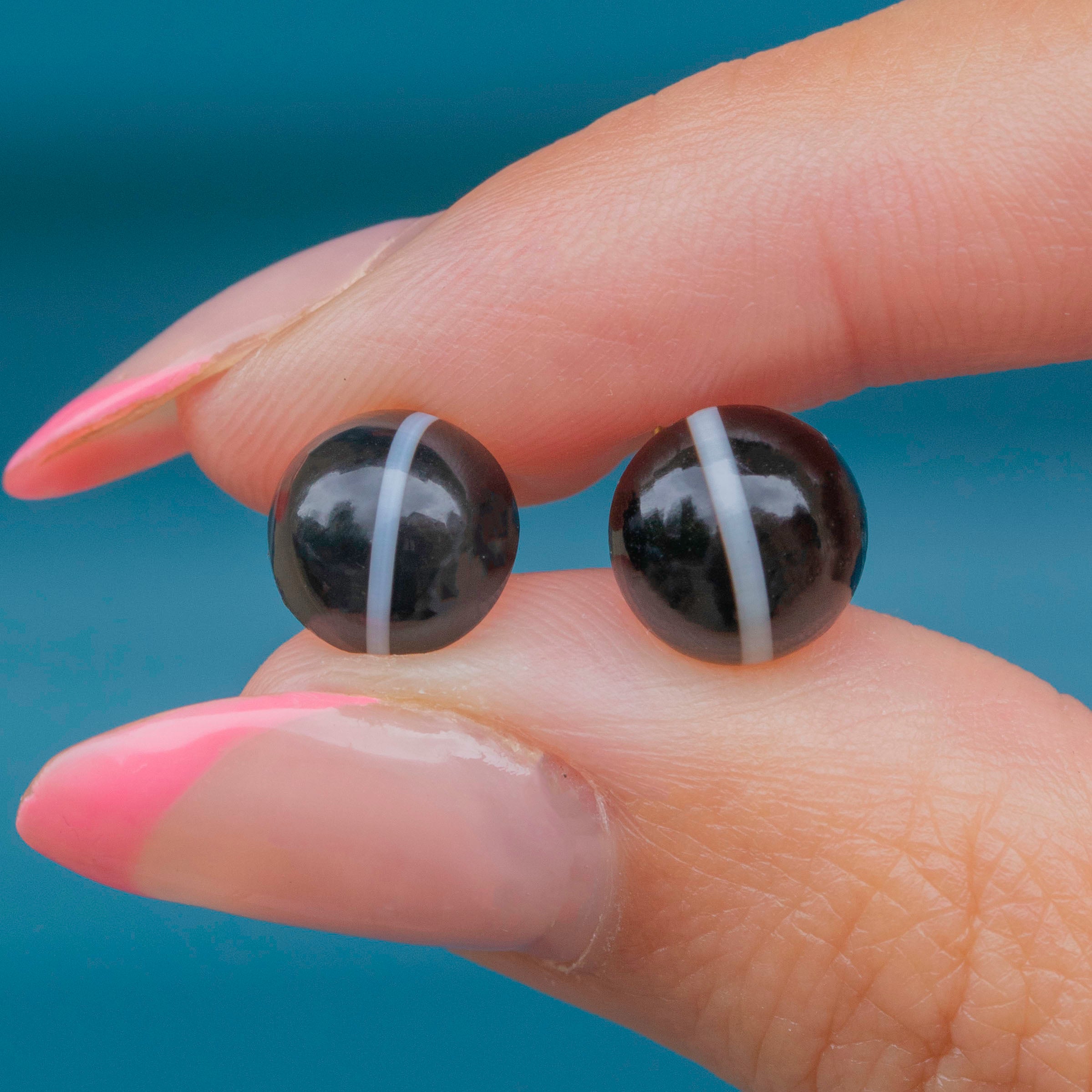 Suspending a jet black Agate cabochon, each adorned with a striking creamy white band across its surface, these dainty earrings suspend from your lobes like little planets full of celestial charm!