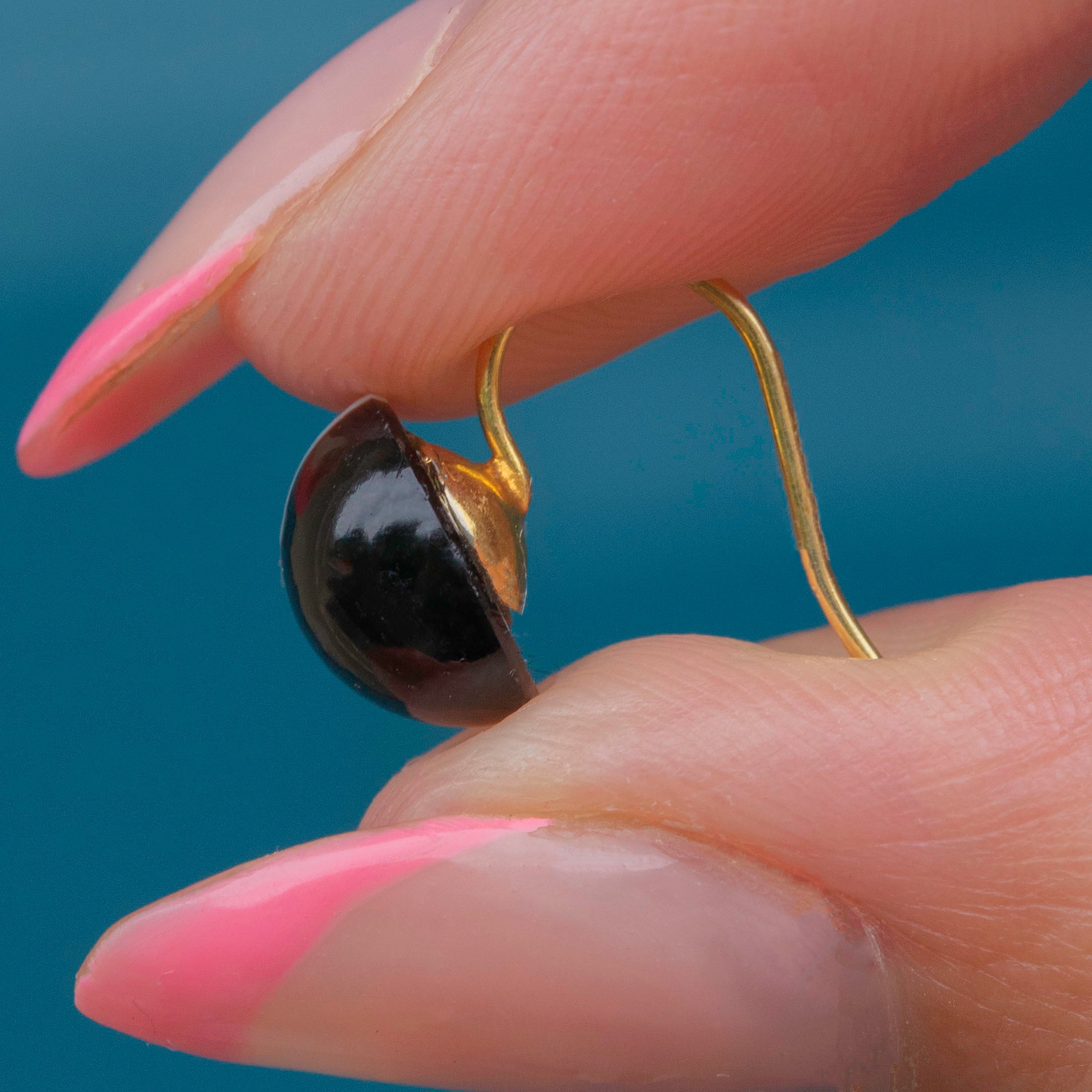 The Agates are complemented beautifully by the buttery sheen of the 18ct Gold hooks, which sit comfortably in your ears. A wonderfully versatile pair, these Victorian button earrings are a must-have!