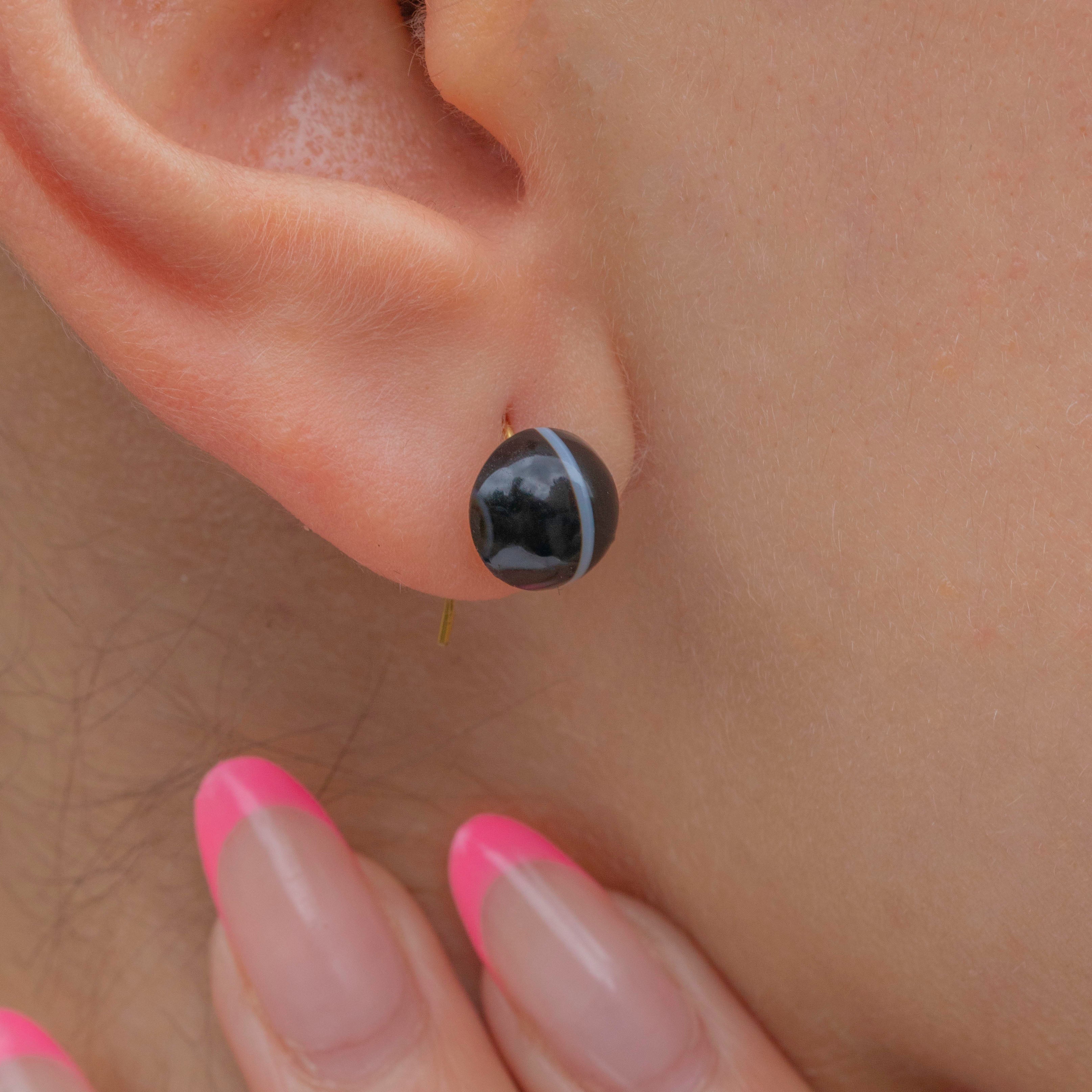 Add a touch of Victorian allure to your attire with these antique 18ct Gold Banded Agate button earrings!