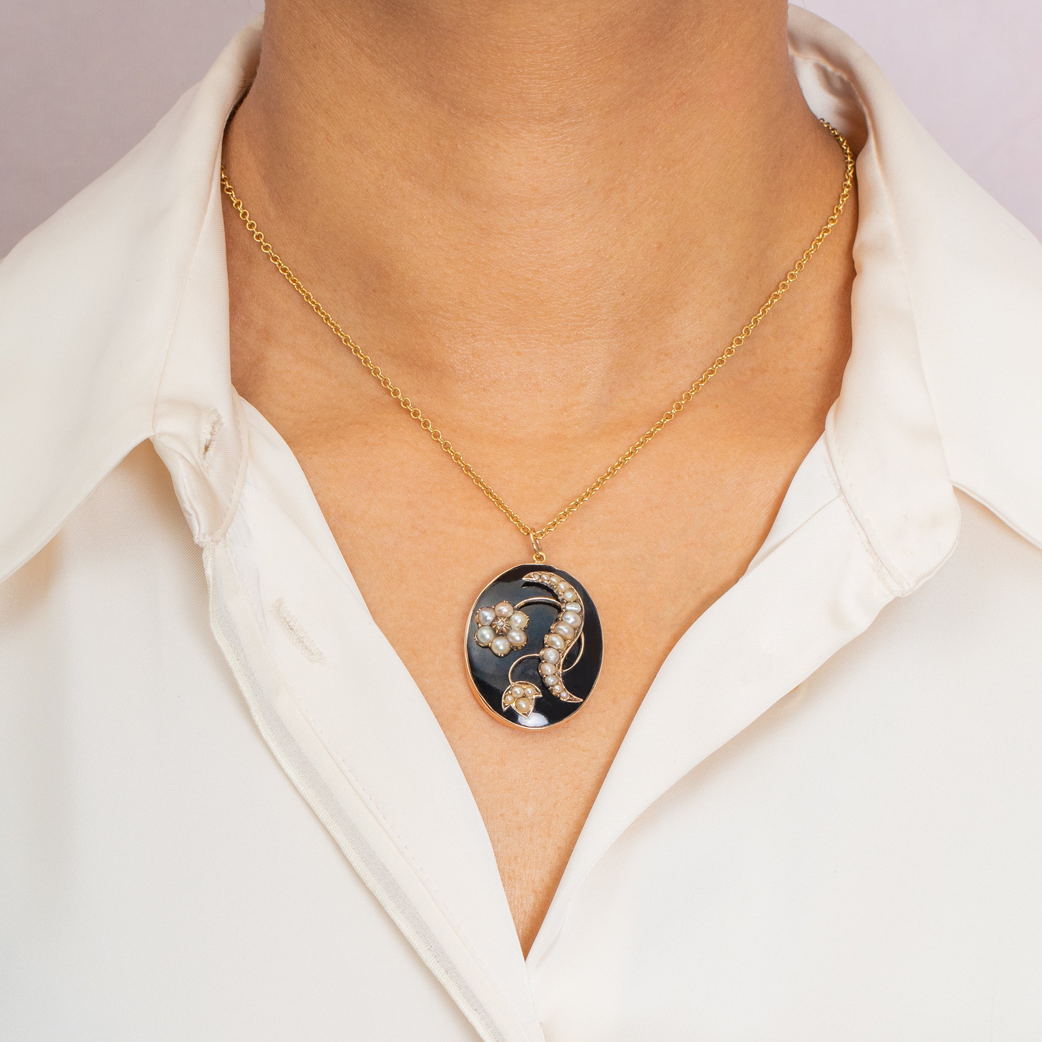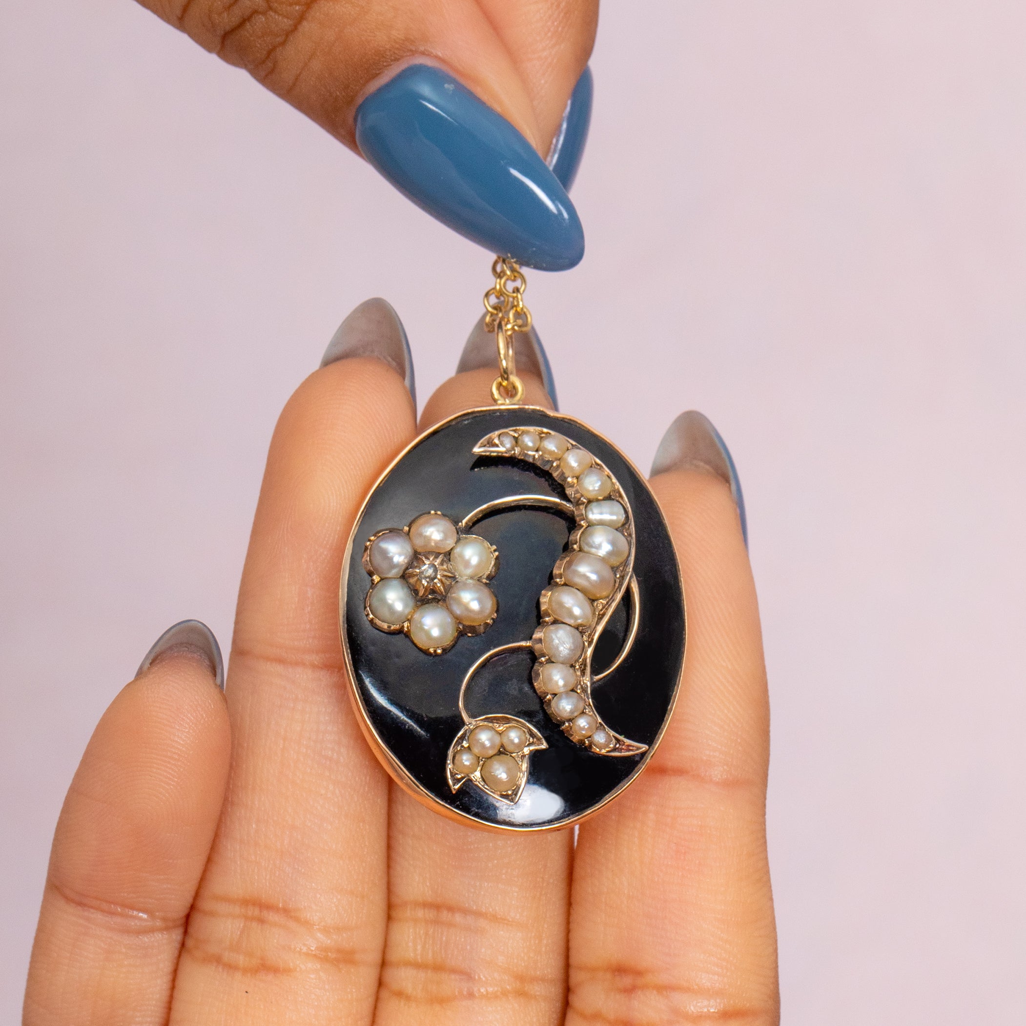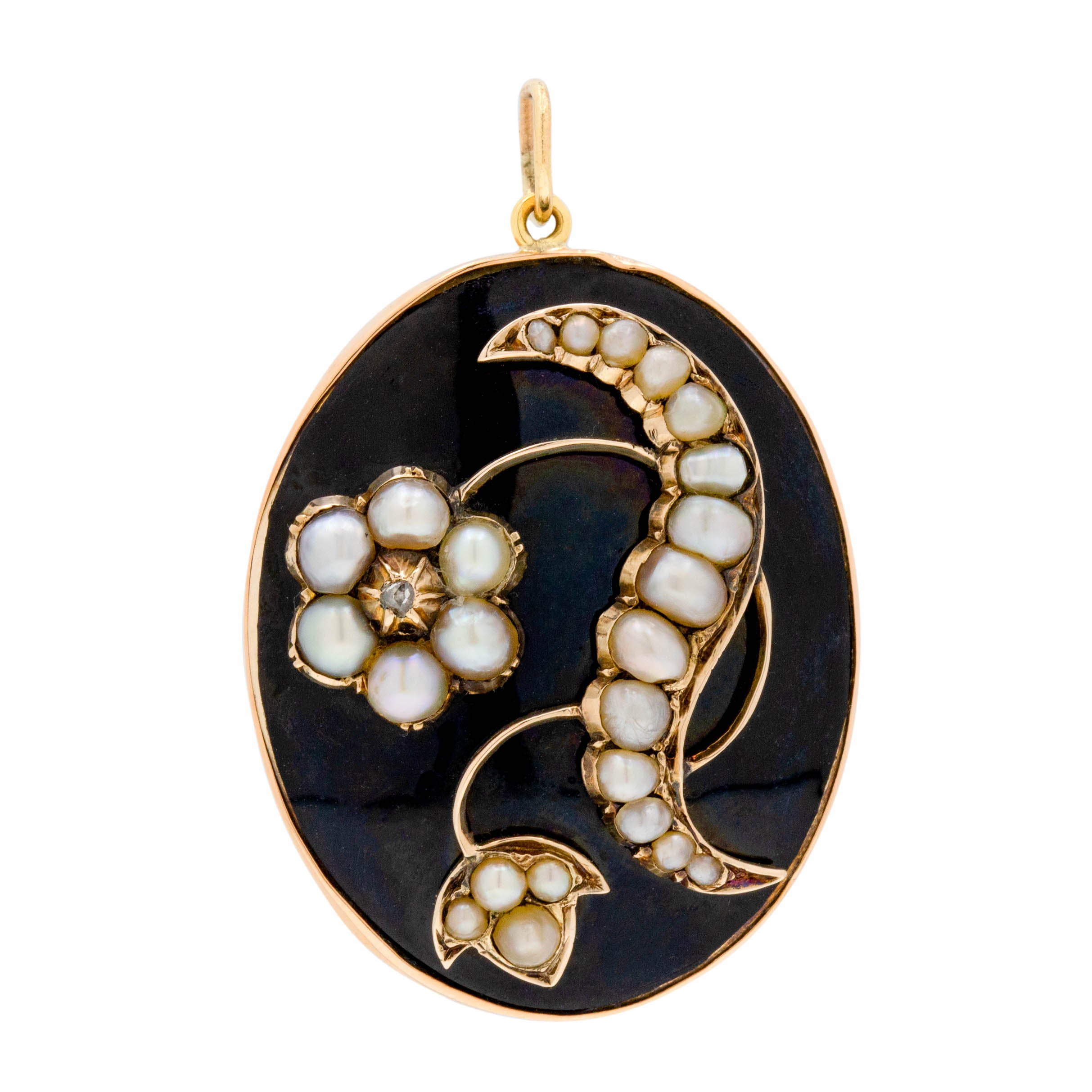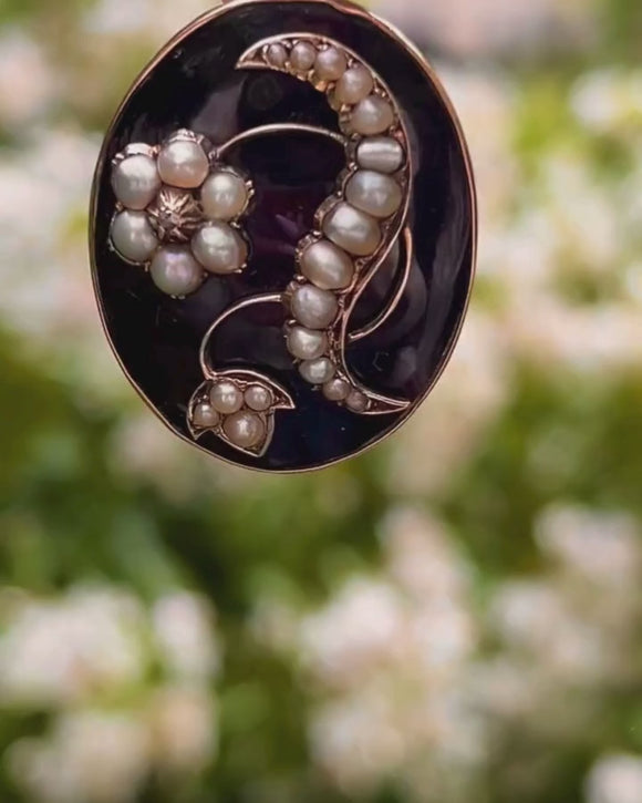 Antique 18ct Gold Black Enamel Pearl Locket