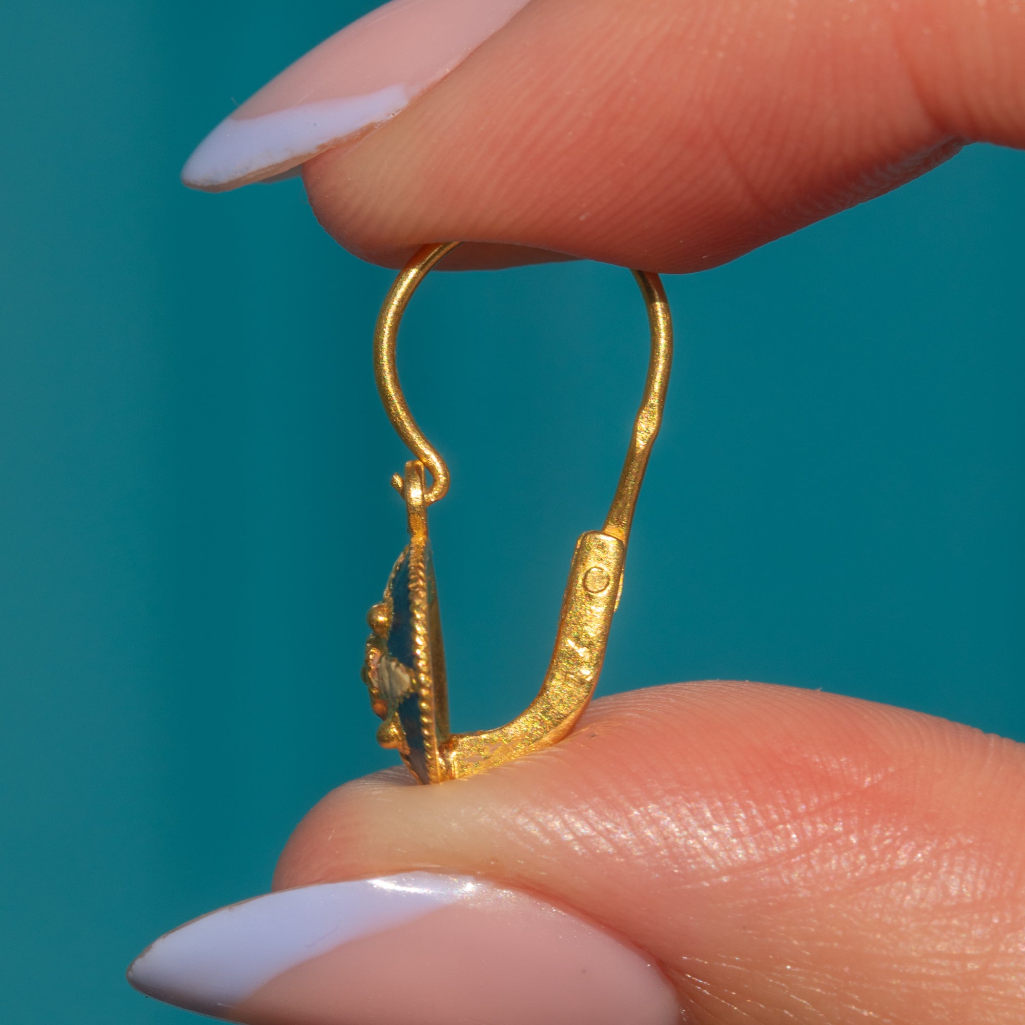 These antique 18ct Gold blue Enamel star lever-back earrings radiate celestial charm!
