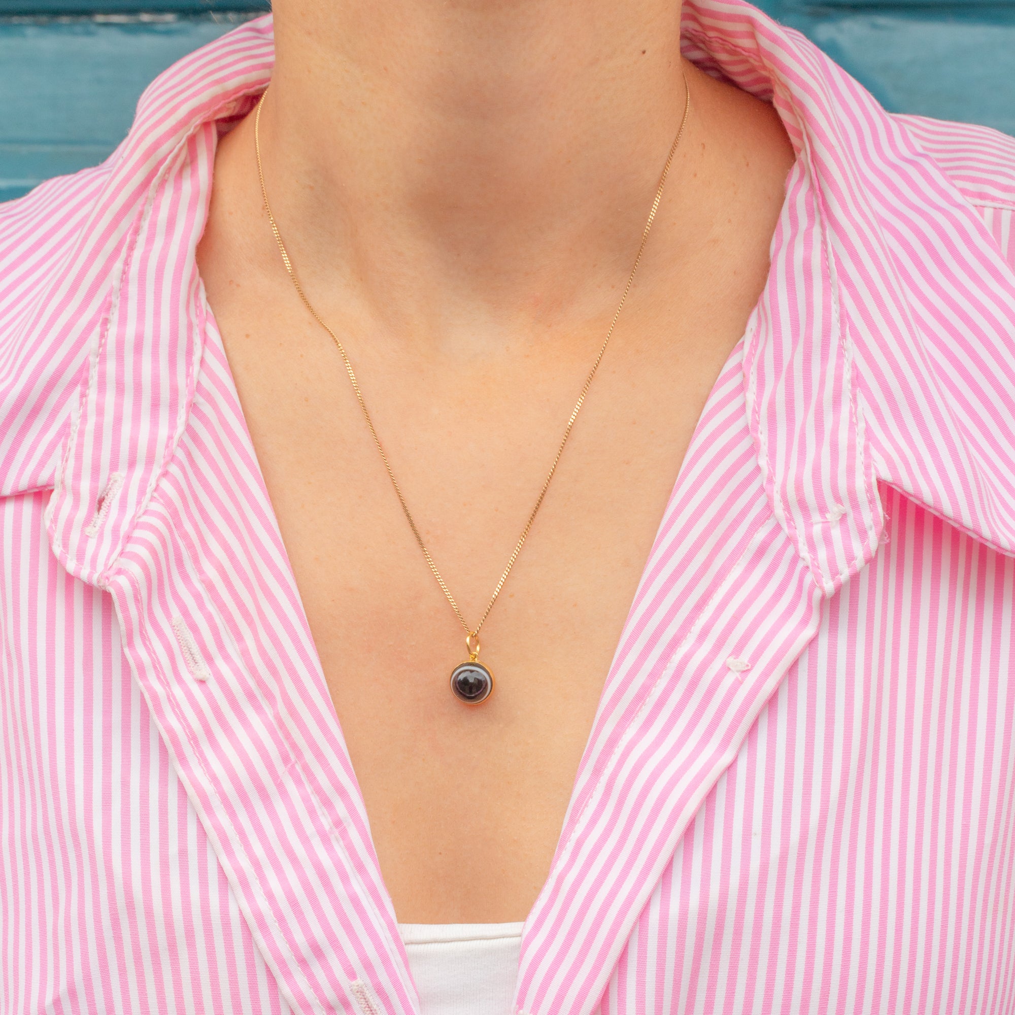 It is set securely within a buttery 18ct Gold bezel and rests comfortably on your décolletage or alternatively can suspend from a bracelet - she is so versatile!