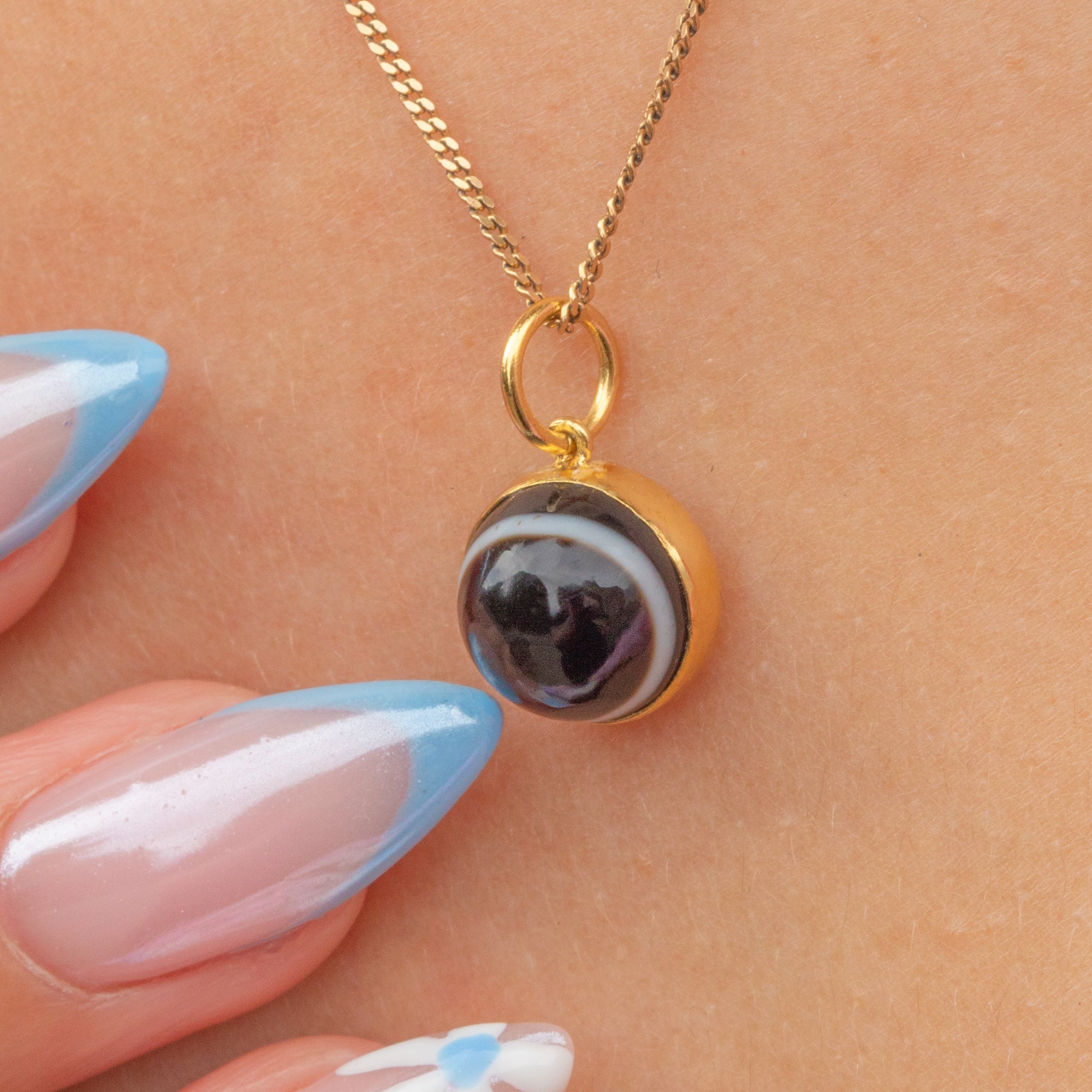 Akin to a bullseye, this earthy toned Victorian Agate charm features a white band spanning the circumference of the stone - a unique quality for which the gemstone is so revered.