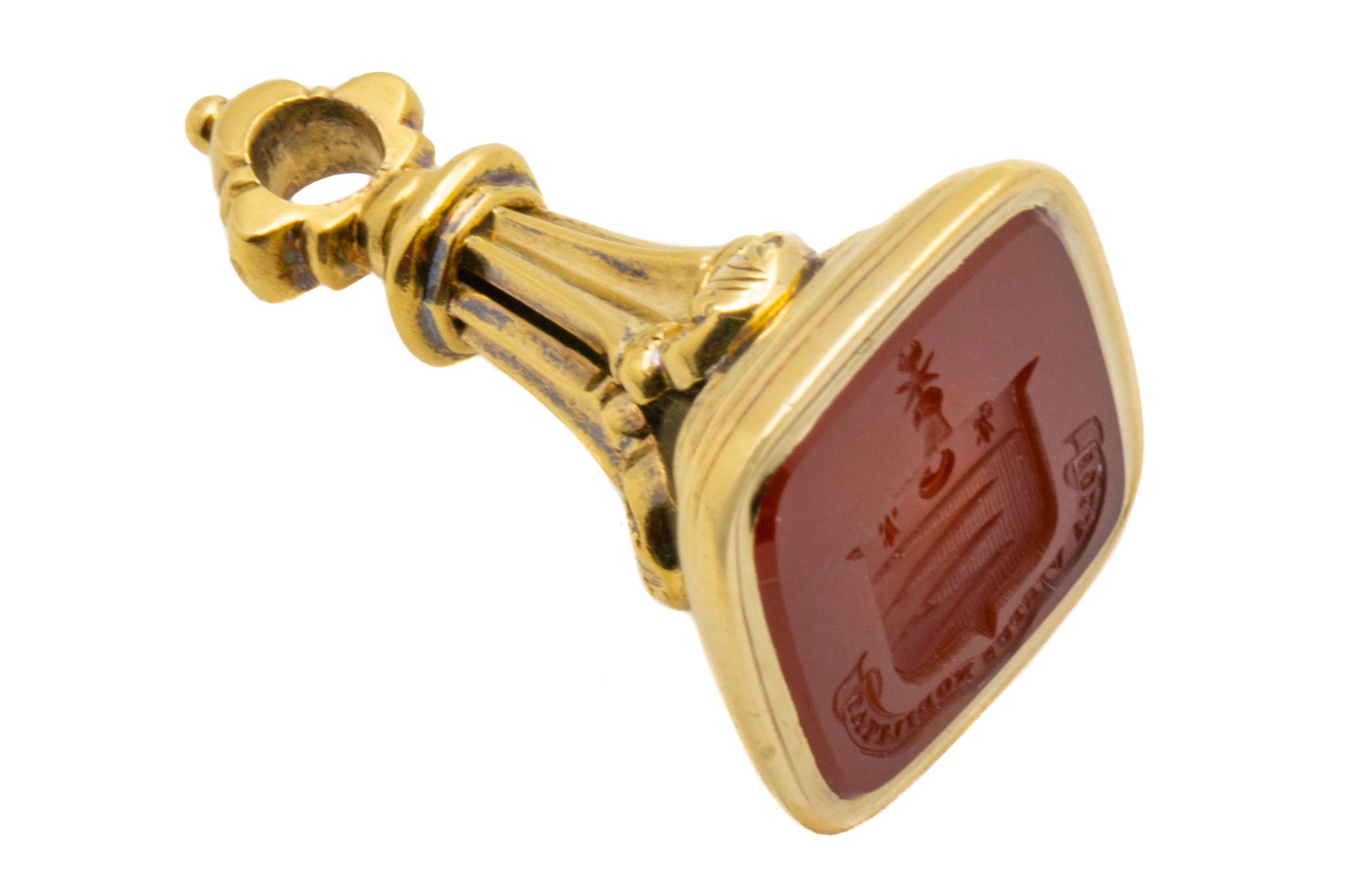 Antique 18ct Gold Carnelian Intaglio Seal Pendant, 'Virtue Alone Ennobles'