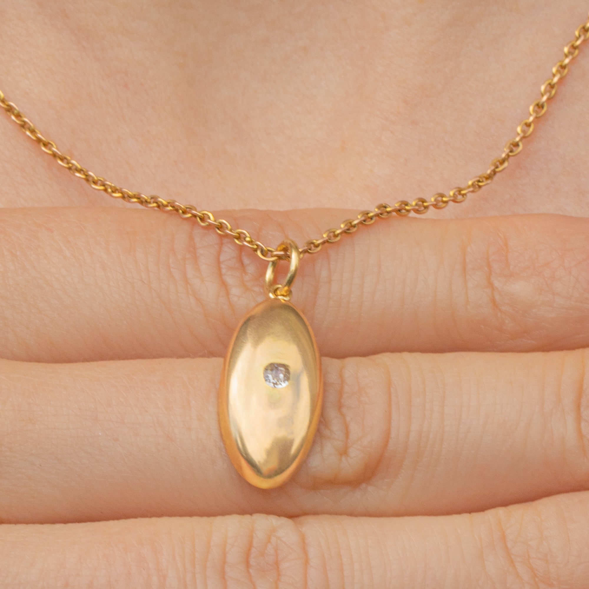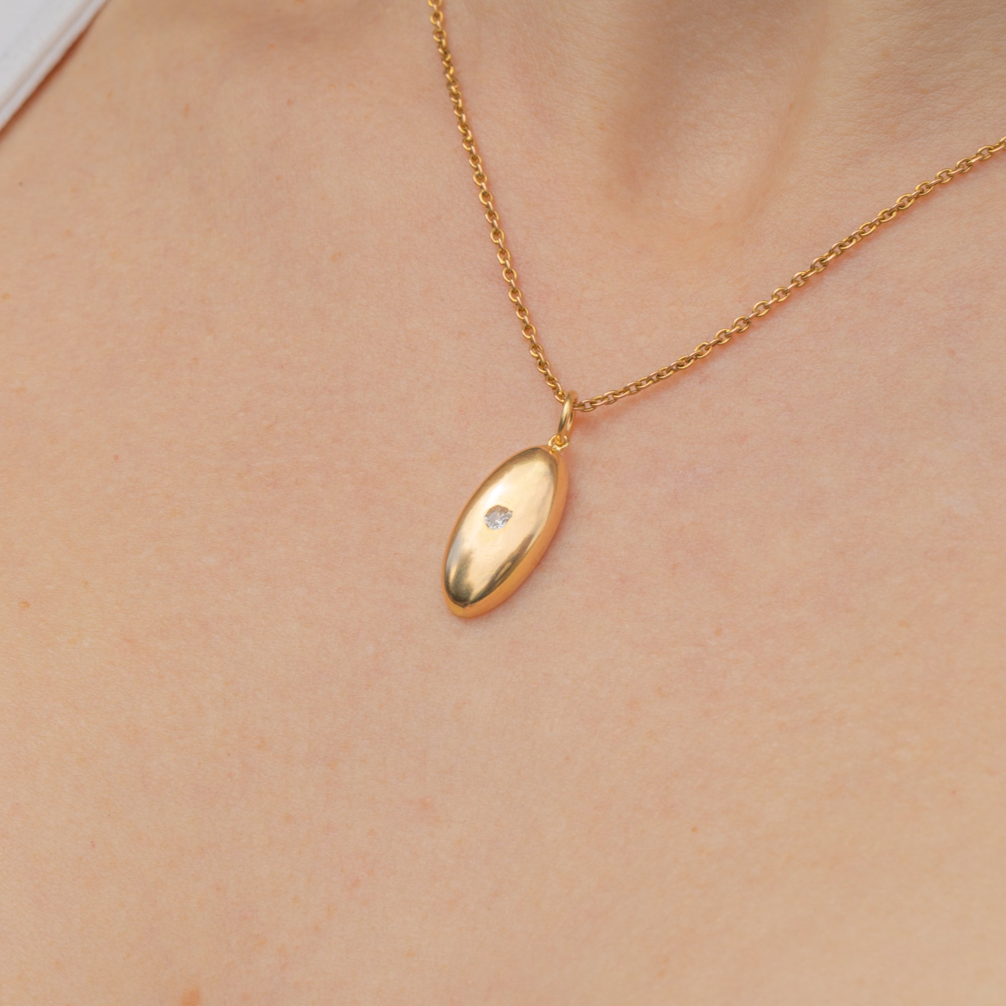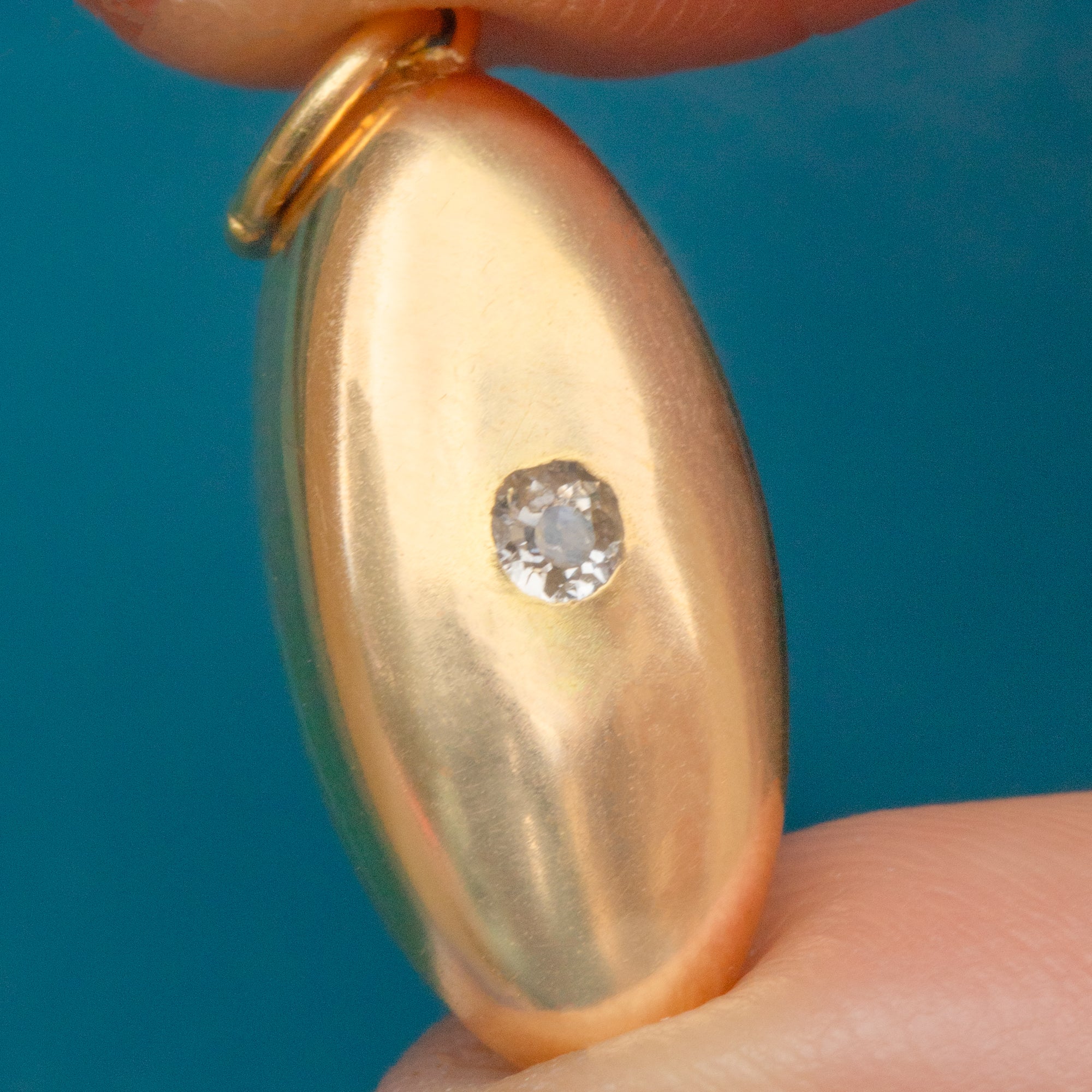 EXCELLENT. This antique 18ct Gold Diamond lozenge charm is in excellent condition! The back of the piece is stamped 18 and the Gold exudes a gorgeous buttery hue. The Diamond is securely set and free from chips or abrasions. The surface is smooth and the piece sits comfortably against the chest.