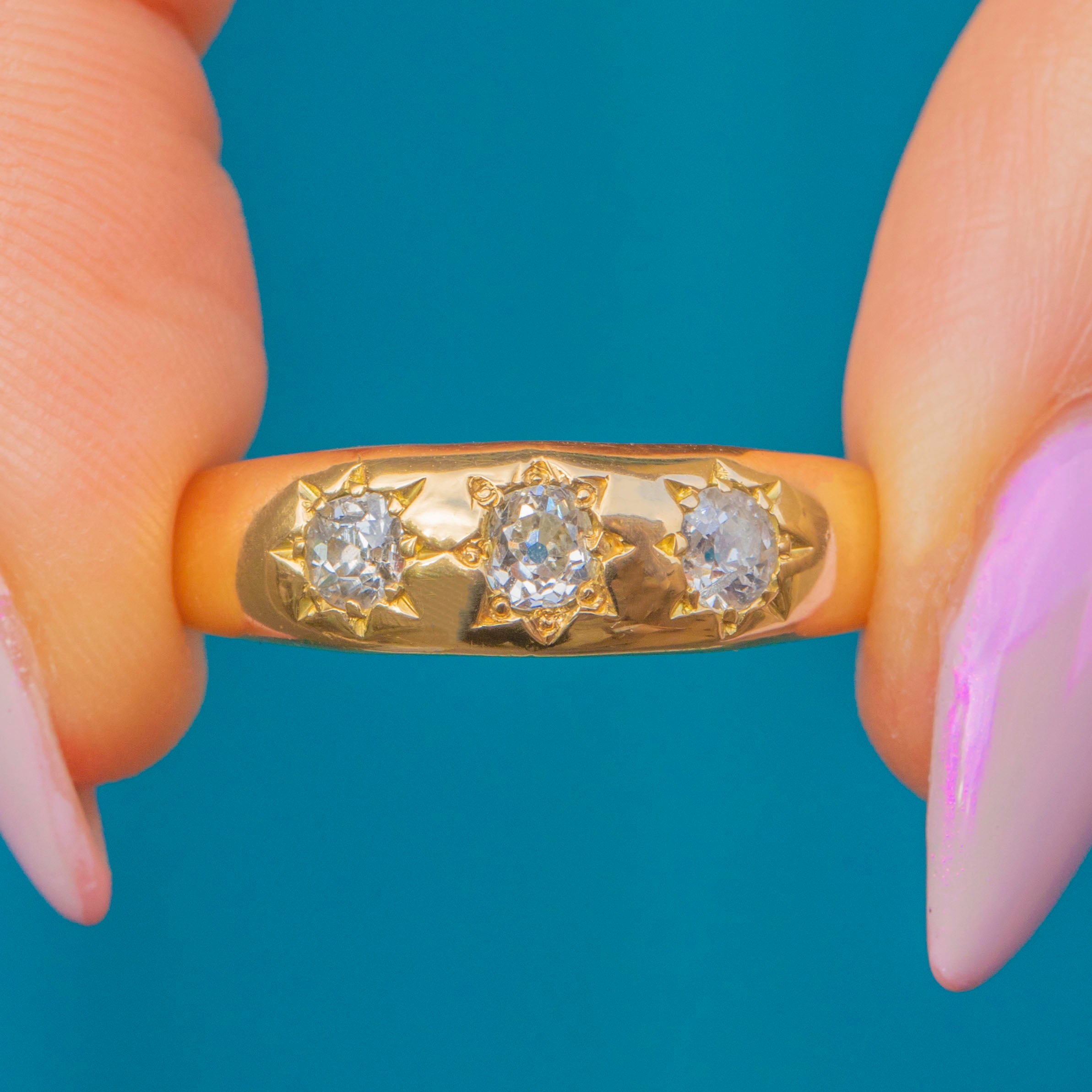 Antique 18ct Gold Diamond Three Stone Gypsy Ring