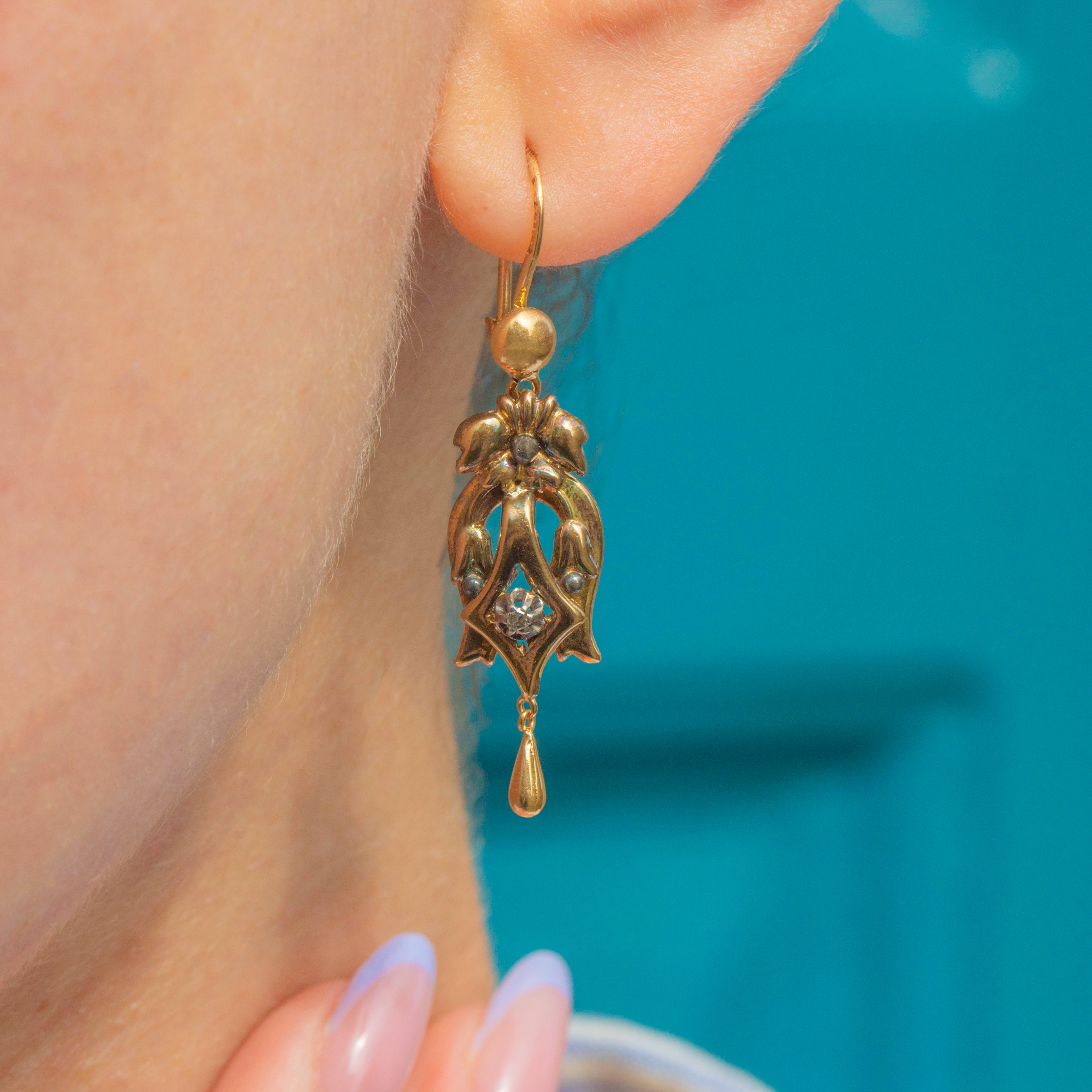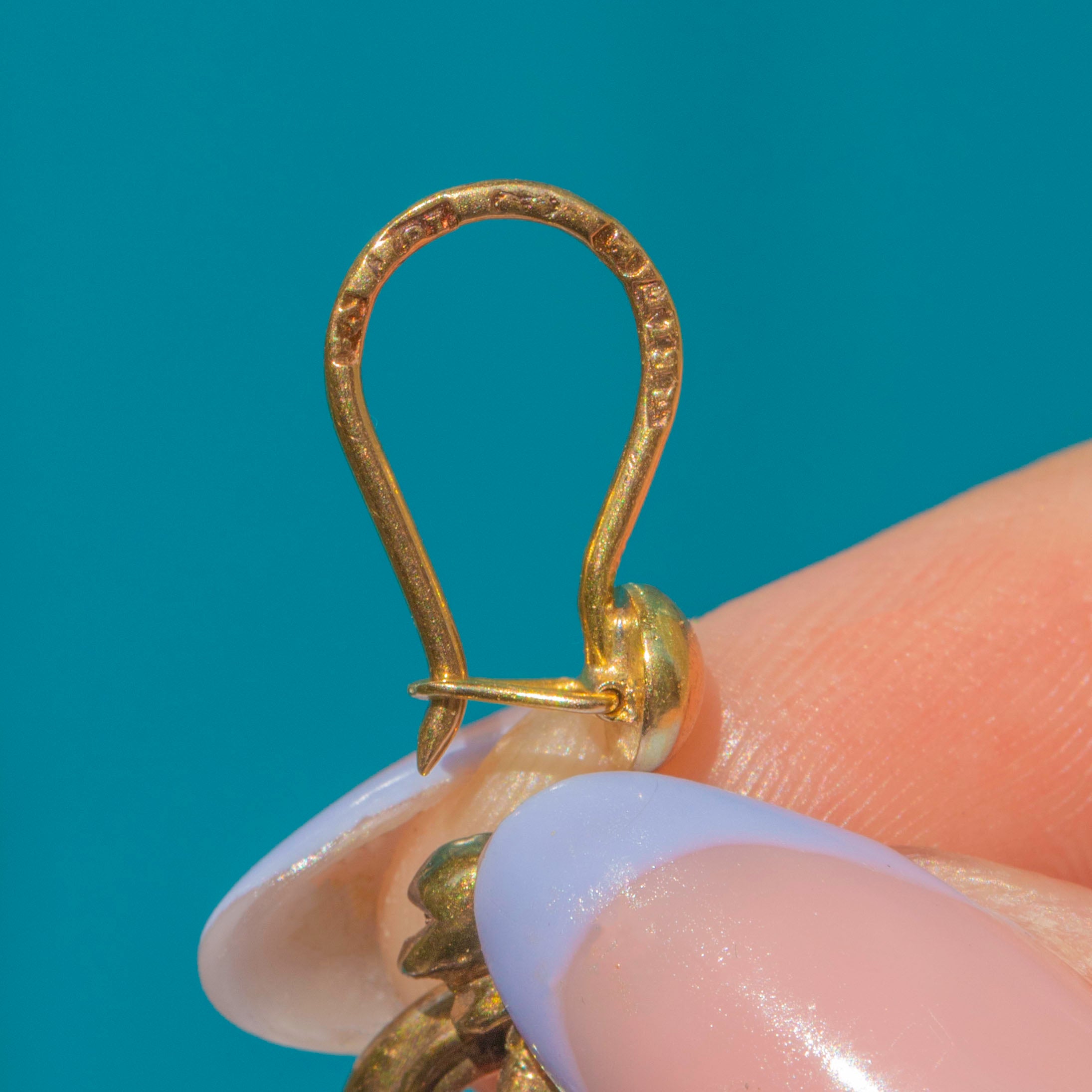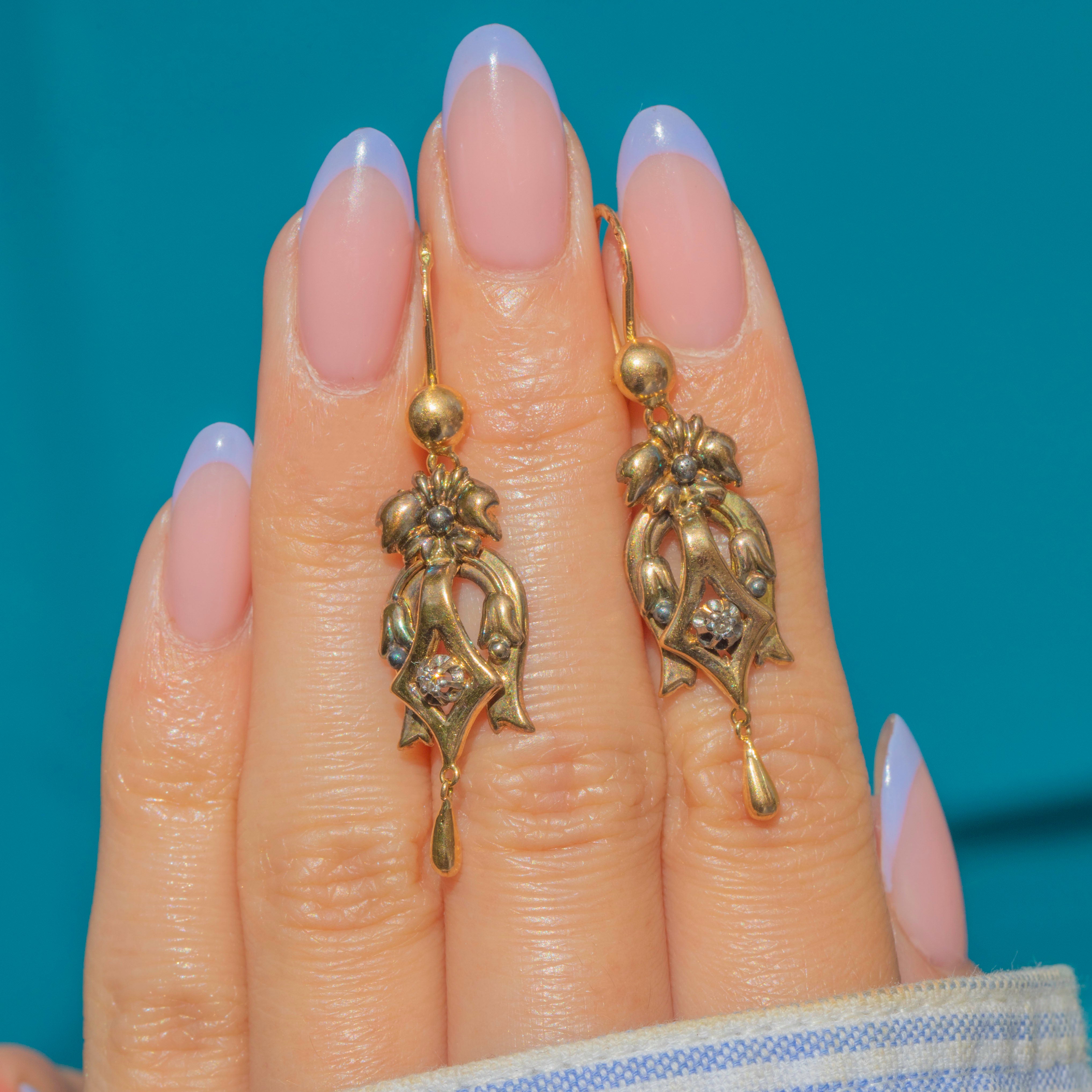 These Victorian 18ct Gold floral Diamond drop earrings are a radiant pair!
